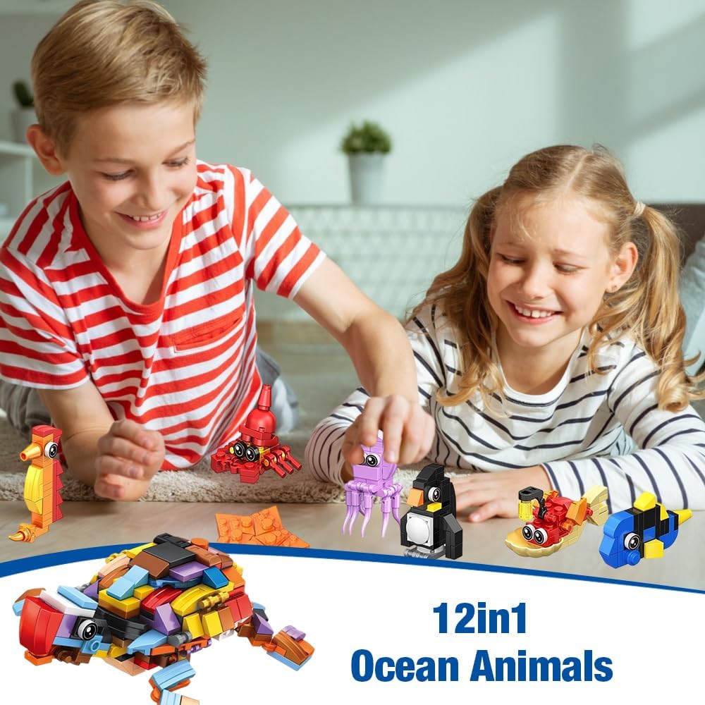 【Animali Marini Blocchi Set】Questo mini blocchi costruzione animali mattoni giocattoli set contiene 12 creature marine uniche, tra cui foche, paguri, pesci pagliaccio, cavallucci marini, pesci martello, tonni blu, pesci lanterna, meduse, pesci palla, stelle marine, polpi e pinguini. Possono stimolare la creatività e le capacità pratiche dei bambini e sono giocattoli educativi ideali per bambini dai 3 anni in su. 【Materiali di Alta Qualità】Animali marini blocchi Realizzato in plastica ecologica di alta qualità, con bordi lisci e senza sbavature, atossico e inodore, resistente e riutilizzabile, non facile da rompere o deformare, sicuro per i bambini, adatto alle mani dei più piccoli e facile da usare. 【Giocattoli Educativi】Mini blocchi costruzione animali mattoni giocattoli è un puzzle per bambini che richiede capacità di pensiero e destrezza. I regali per feste per bambini dai 3 anni in su possono coltivare la percezione dei colori e delle forme. Costruire affascinanti creature marine significa anche imparare di più sulla vita marina e migliorare le proprie capacità di problem solving, la motricità fine e il pensiero creativo. Imparare non è mai stato così entusiasmante! 【Bomboniere】Tutti i 12 pezzi mini blocchi costruzione animali mattoni giocattoli sono confezionati singolarmente e ogni blocco di costruzione a forma di animale è confezionato singolarmente. Ogni confezione di blocchi di costruzione include un manuale di istruzioni indipendente per un facile assemblaggio da parte dei bambini. 【Regalo Ideale】Questo costruzione a forma di animali è accuratamente progettato e realistico, catturando l'essenza della vera vita marina. Ogni blocco di costruzione a forma di animale è confezionato singolarmente. Che si tratti di una sorpresa di compleanno, di un regalo di Pasqua, di Natale o di un souvenir scolastico, è la scelta ideale.