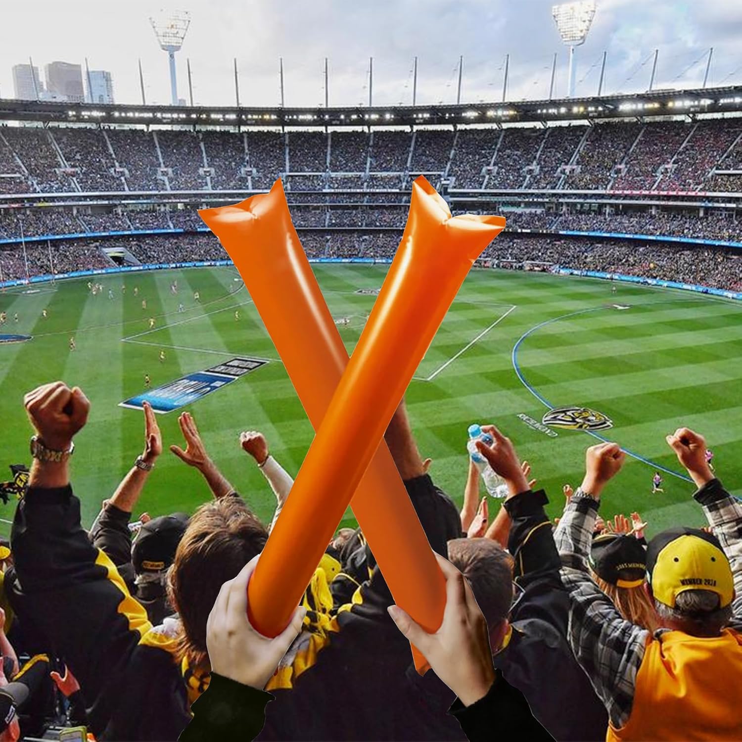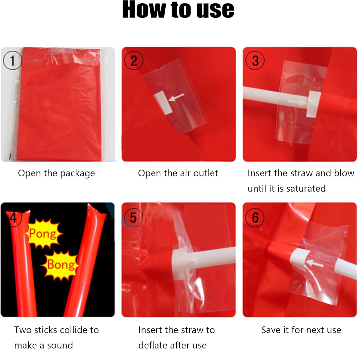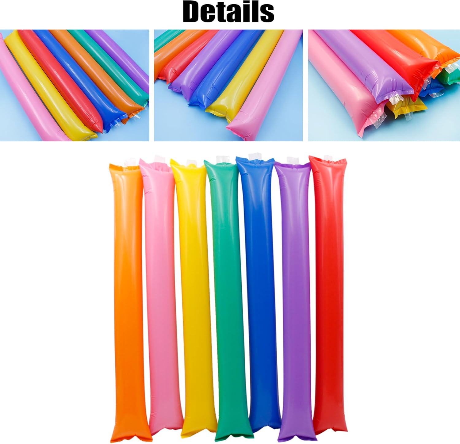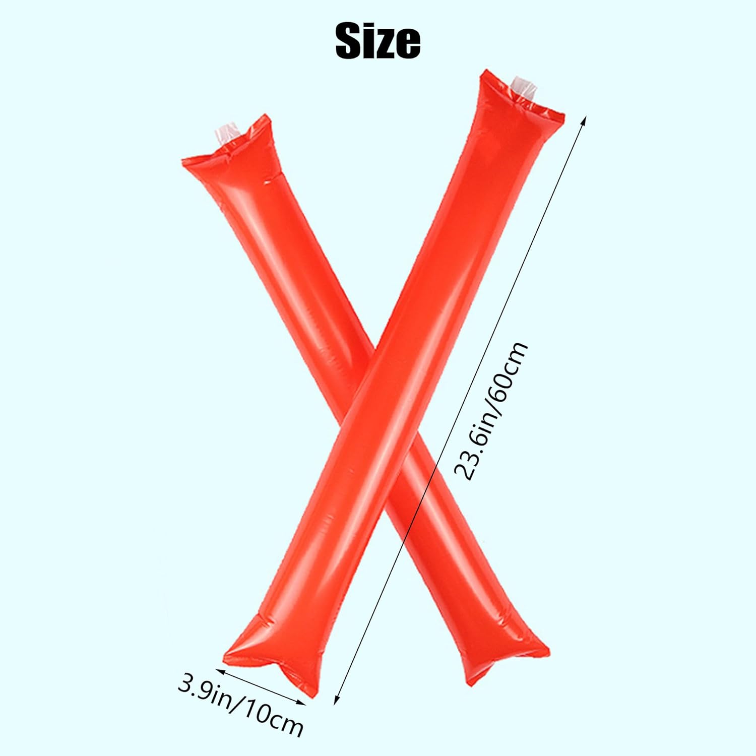 Materiali di alta qualità: il bastone da tifo è realizzato in plastica, facile da usare e sicuro, durevole, non sbiadisce e riutilizzabile. Questo generatore di rumore è molto leggero e puoi portarlo con te. Riceverai 12 bastoncini da serbatoio. Suono forte: i bastoncini da serbatoio gonfiabili possono essere riutilizzati. Quando i due bastoncini si scontrano tra loro, producono un suono metallico di "bang bang", che viene utilizzato per creare un'atmosfera calda e sollevare il morale. Facile da usare: gonfia con la cannuccia inclusa e ogni foro di soffiaggio si chiuderà automaticamente dopo il gonfiaggio. Piegalo per un facile trasporto prima di soffiare. Dai: i bastoncini da tifo sono molto adatti per fare rumore e tifare per la tua squadra preferita durante gli eventi sportivi. Possono attivare l'atmosfera della scena e sono i migliori oggetti di scena per tifare Scenari applicabili: questi bastoncini gonfiabili sono molto adatti per eventi sportivi, feste di compleanno, concerti, carnevali, feste, ecc. Possono essere utilizzati per ogni occasione che richiede rifornimento e incoraggiamento