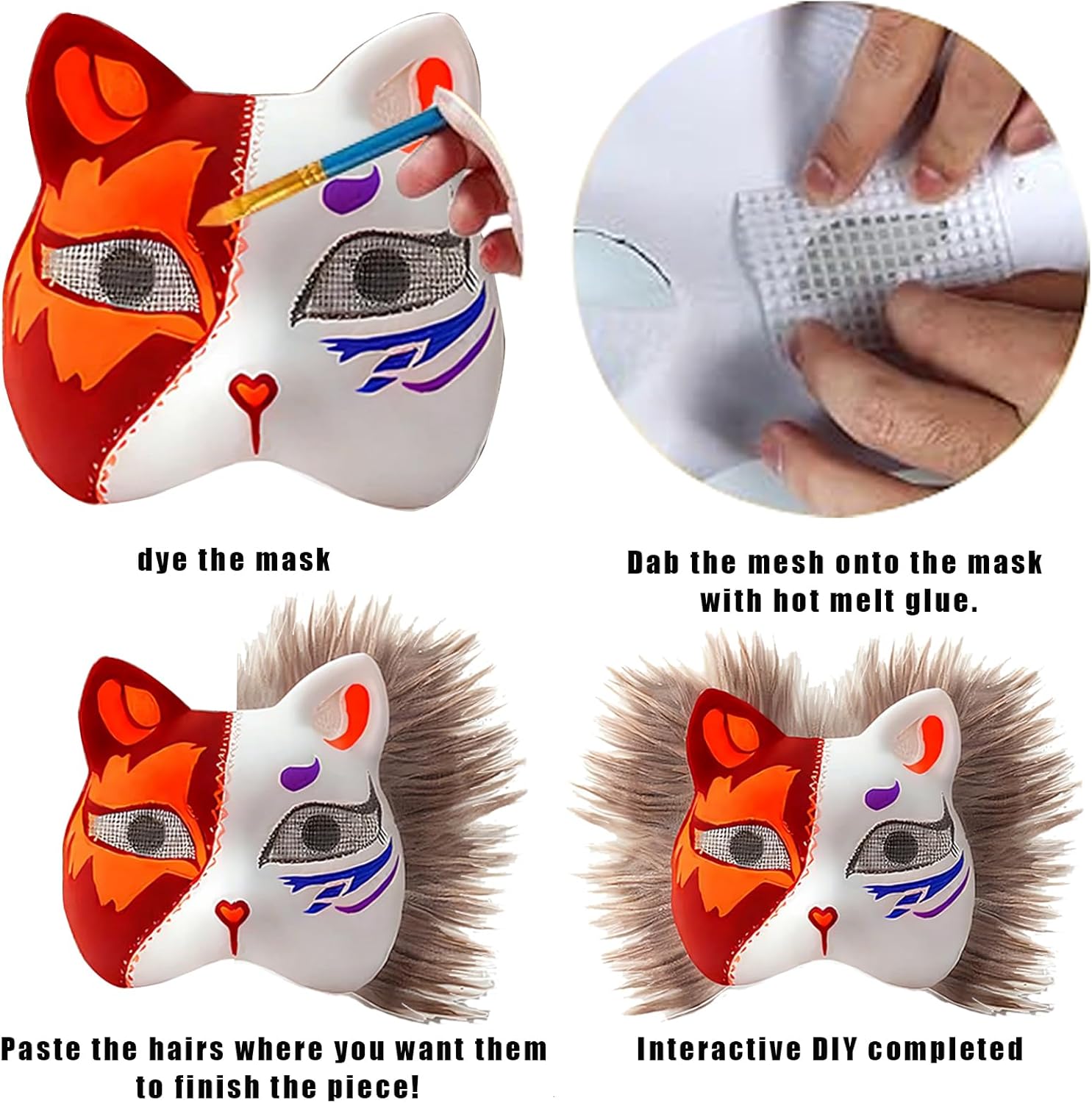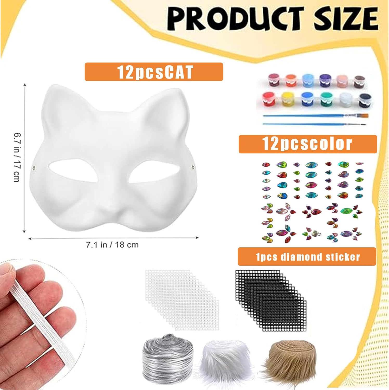 Descrizione prodotto set di maschere per gatti Riceverete 12 maschere di gatto bianche semplici. Un numero sufficiente di maschere ci permette di fare errori. 3 set di strisce di tessuto di pelliccia sintetica, 20 fogli di griglia di plastica, 12 colori e 2 pennelli.1 adesivo Diamon Avviso di sicurezza NO