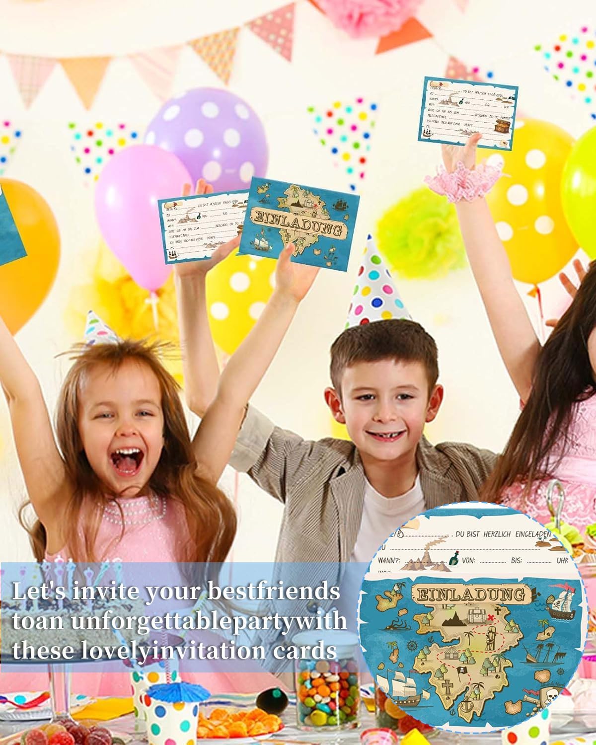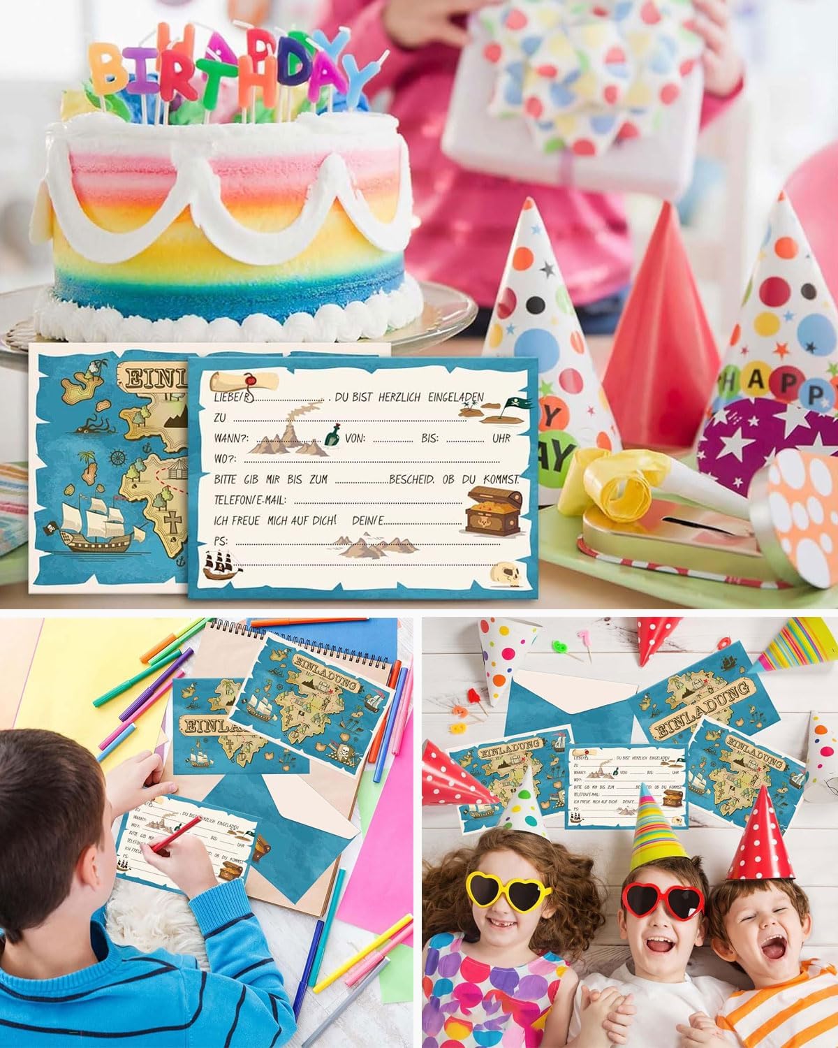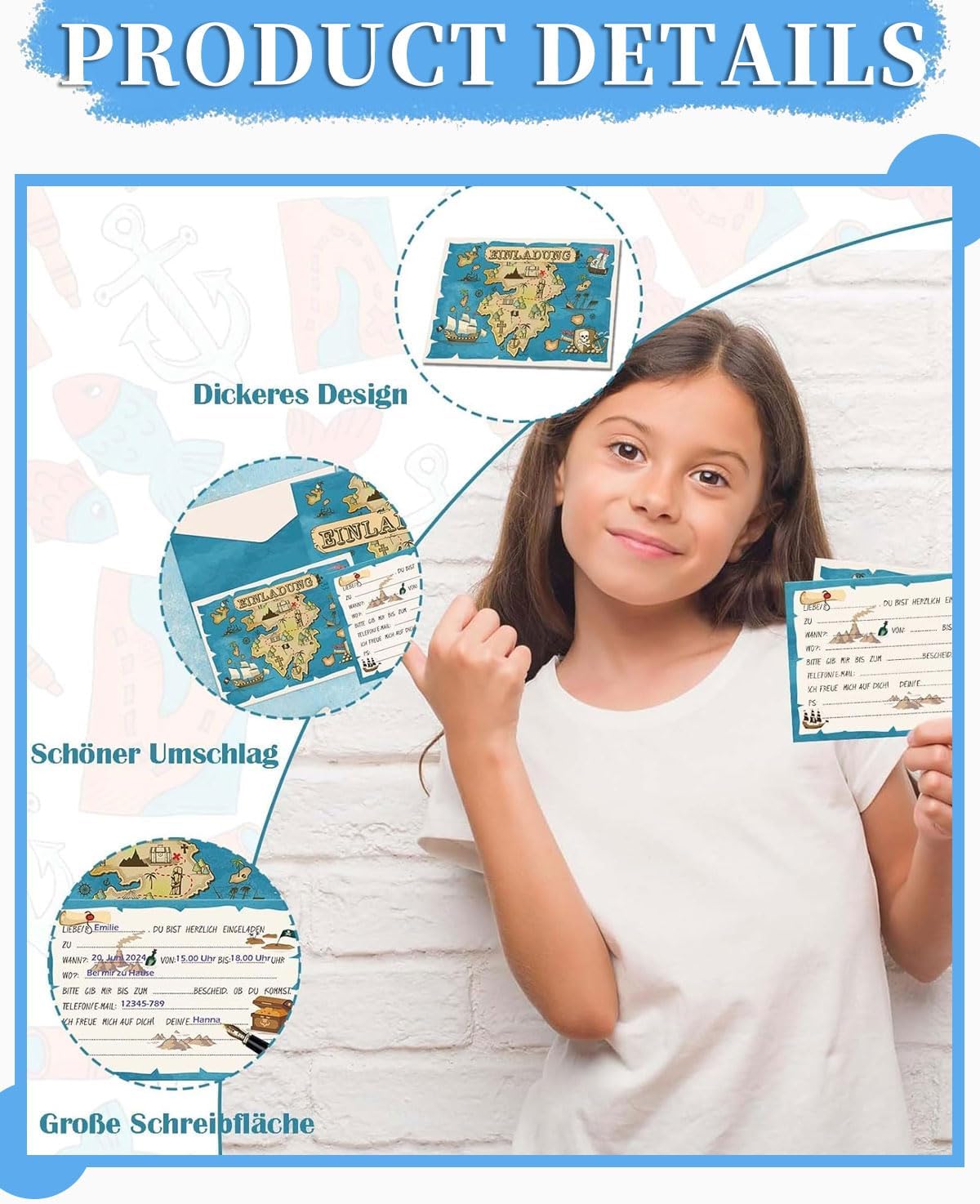 Ricca quantità: contiene 12 biglietti d'invito per compleanni o feste a tema per bambini Materiale di alta qualità: realizzato con carta ecologica di alta qualità, stampa speciale, motivi atossici e insipidi, chiari e belli Comoda e pratica: la busta porta biglietti è stata studiata, basta inserire le informazioni, risparmiando tempo e fatica Tema pirata: modelli accuratamente progettati come navi pirata per attirare i bambini, adatti per inviti alla caccia al tesoro Ampiamente applicabile: oltre alle feste a tema pirata, è adatto anche a molte occasioni