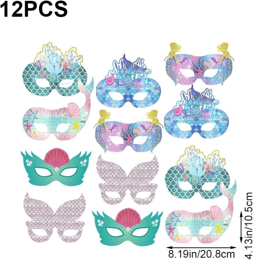 Design carino e luminoso: maschera di compleanno della sirena adotta il design a tema sirena, carino e bello, attraente e vivido; E i colori sono brillanti, squisiti e vibranti, aggiungendo più fascino tuoi bambini. Adatto a molte feste: maschera per gli occhi sirena è adatta a molte feste, tra cui feste in maschera, feste a tema sirena, spettacoli, feste di compleanno e altro ancora, rendendoti più elegante. Dimensioni adatte per essere indossata: maschera sirena misura circa 8,19*4,13 pollici/20,8*10,5 cm, adatta alla maggior parte dei bambini, non cade facilmente, permettendo bambini di giocare facilmente. Materiale resistente: maschera per gli occhi a sirena è realizzata principalmente in cartone, robusta e affidabile, non facile strappare o indossare; i colori e i motivi sono chiari, non sbiadiscono facilmente, adatti per un uso prolungato. Abbastanza usare: riceverai 12 pezzi di maschere di compleanno sirena, abbondanti in quantità e ricche di stile, sufficienti per i tuoi bambini scegliere e sostituire; puoi anche condividerle con i tuoi piccoli familiari.