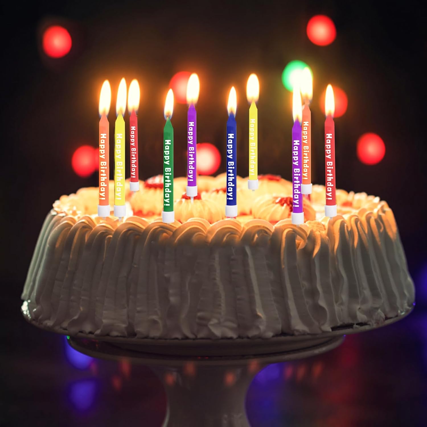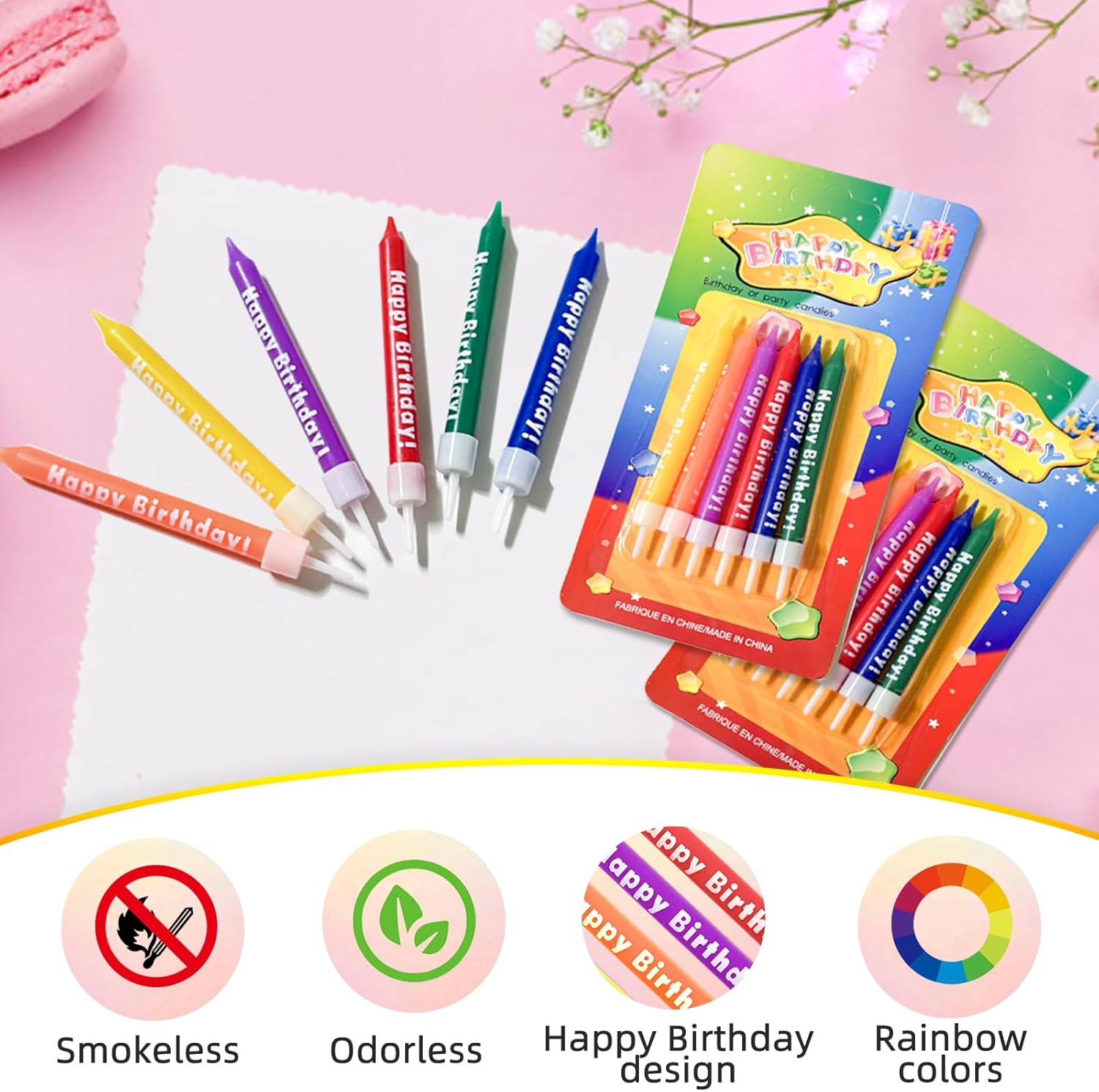 ♨️Candele arcobaleno: Riceverai 2 confezioni di candeline di compleanno colorate, ciascuna contenente 6 candeline dai colori vivaci: giallo, arancione, viola, rosso, blu e verde. Ogni candelina misura circa 9,3 cm (3,66 pollici) di lunghezza, adatta alla maggior parte delle dimensioni delle torte. Si prega di confermare le dimensioni prima dell'acquisto. 🍀 Senza fumo e inodore: Queste candeline per torte sono realizzate in paraffina di alta qualità, atossica, che non produce fumo e non ha odore durante la combustione, sicura e comoda da usare. Consigli: Quando non in uso, conservare in un luogo fresco e asciutto, lontano dal fuoco. 🎂 Scritta "Buon compleanno": Di' addio alle solite candeline per torte! Ogni candelina colorata per torte di compleanno è stampata con la scritta "Buon compleanno", che aggiunge un'atmosfera festosa immediata e un messaggio di sincera benedizione. I colori dell'arcobaleno le rendono adatte sia a maschietti che a femminucce. 🎂 Dotato di un robusto supporto: ogni candela per torta di buon compleanno è dotata di un supporto rimovibile che può essere facilmente inserito nella torta e fissato saldamente in posizione, impedendo alla cera di gocciolare sulla torta. Rendi la tua presentazione dei dessert più sofisticata e festosa. 💒 Adatto a tutte le occasioni: queste candele arcobaleno sono perfette per ogni tipo di celebrazione, inclusi baby shower, anniversari, riunioni di famiglia, feste di pensionamento, matrimoni e persino festività come Natale e Halloween.