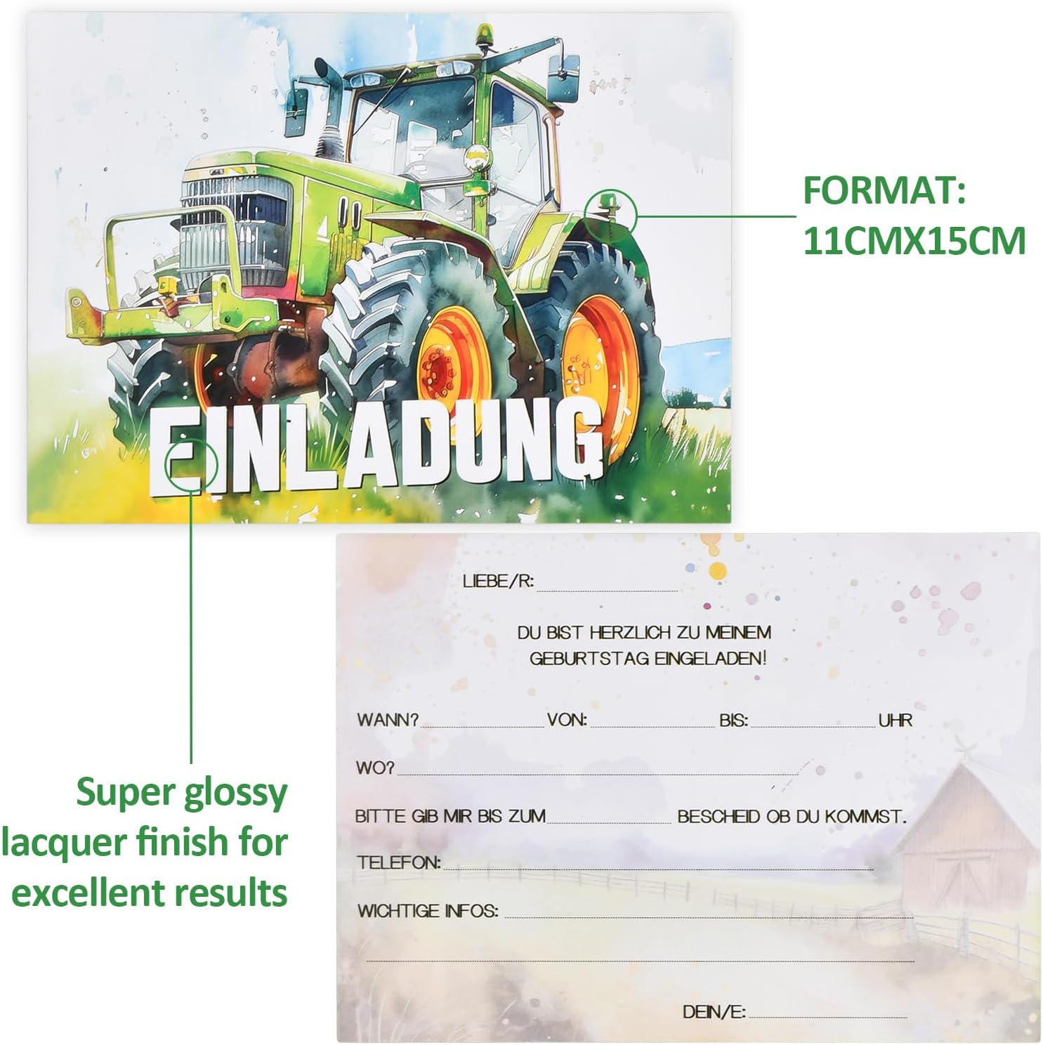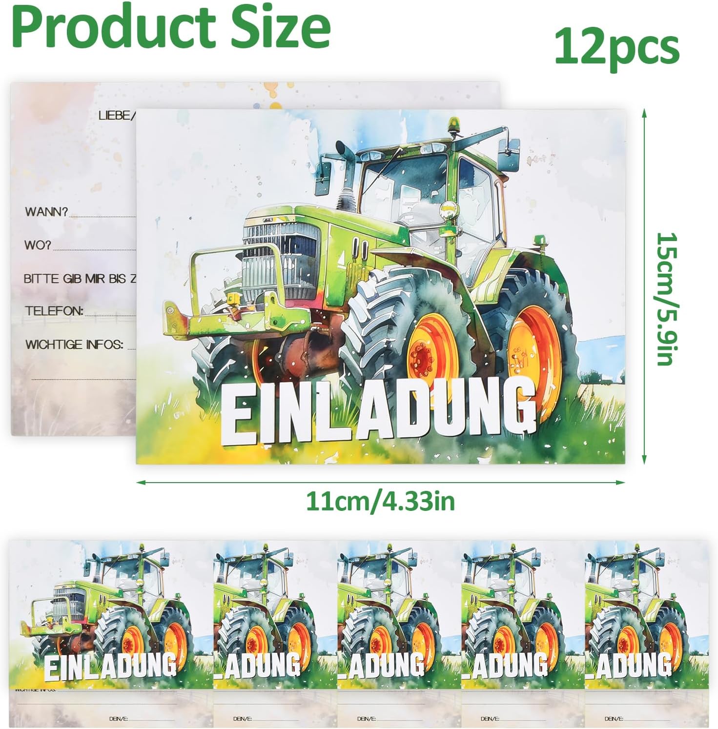 Materiali: Questi inviti non sono i soliti biglietti di compleanno economici. Sono realizzati in materiale cartaceo di alta qualità che garantisce durevolezza e un aspetto lussuoso, rendendoli il pacchetto di biglietti di compleanno perfetto per tutte le tue esigenze. Design trattore: I biglietti di invito sono artisticamente decorati con un simpatico cartone animato di un trattore agricolo verde, che si allinea perfettamente al tema della festa di compleanno, rendendoli attraenti sia per i ragazzi che per le ragazze. Quantità: Questi biglietti di invito di compleanno da 12 pezzi sono perfetti per le feste a tema di compleanno per bambini. Con il design del trattore agricolo verde, sono perfetti sia per le feste di compleanno di ragazzi che per quelle di ragazze. Questi inviti di compleanno per bambini in carta sono disponibili in una confezione, assicurandoti di averne abbastanza per tutti i tuoi piccoli ospiti. Facili da scrivere: Gli inviti per feste di compleanno per bambini sono progettati con una superficie pulita e liscia, rendendo facile scrivere i tuoi messaggi personalizzati. Questi biglietti di invito di compleanno, decorati con un grazioso cartone animato di un trattore agricolo verde, si abbinano perfettamente all'atmosfera divertente di una festa di compleanno per bambini. Appello universale: Progettati con un fascino universale in mente, questi biglietti d'invito sono perfetti sia per i ragazzi che per le ragazze, contribuendo a creare un tono gioioso per la festa di compleanno. I biglietti d'invito Tractor sono ideali per coordinare le tue feste di compleanno a tema, aiutandoti a creare un'esperienza di festa coerente e coinvolgente.