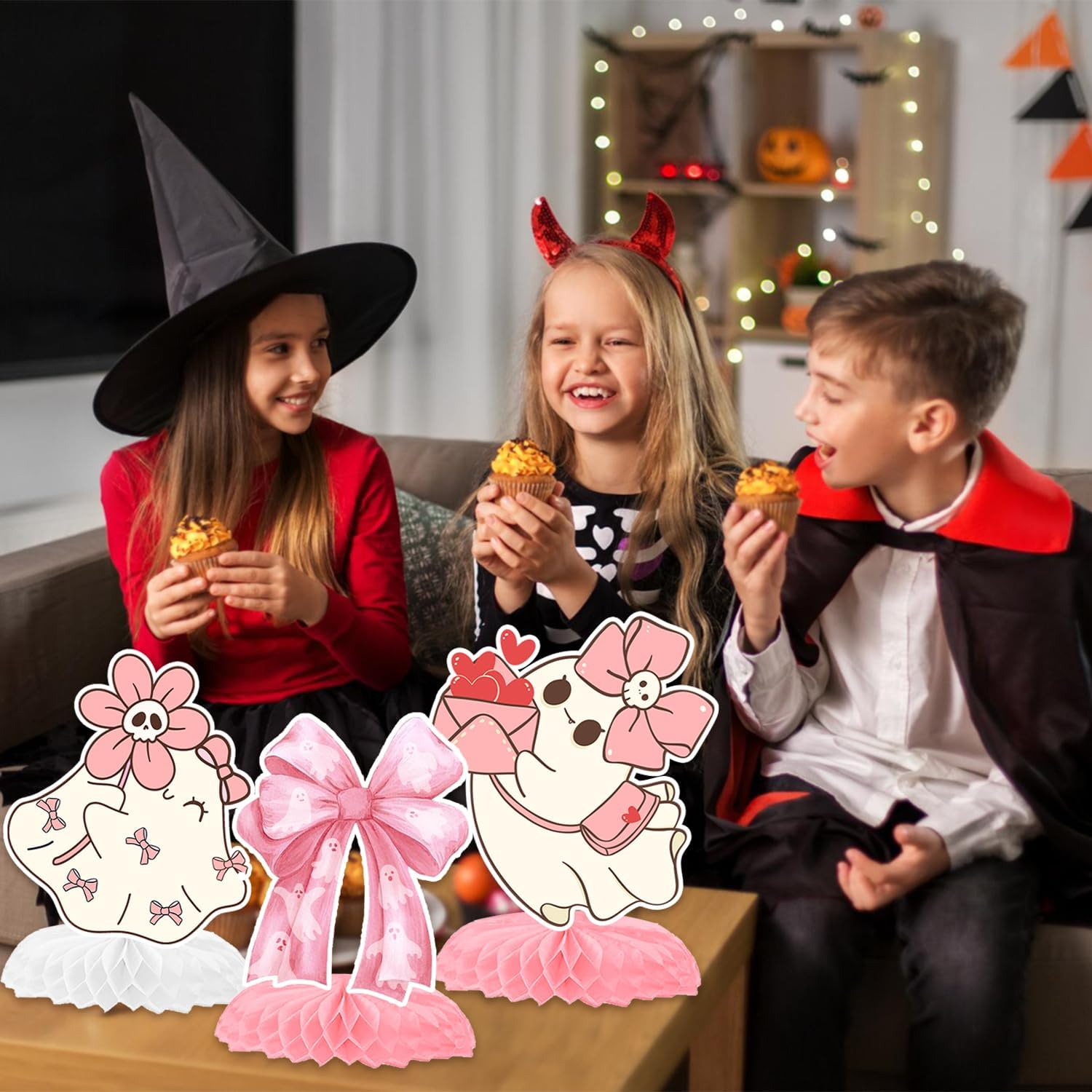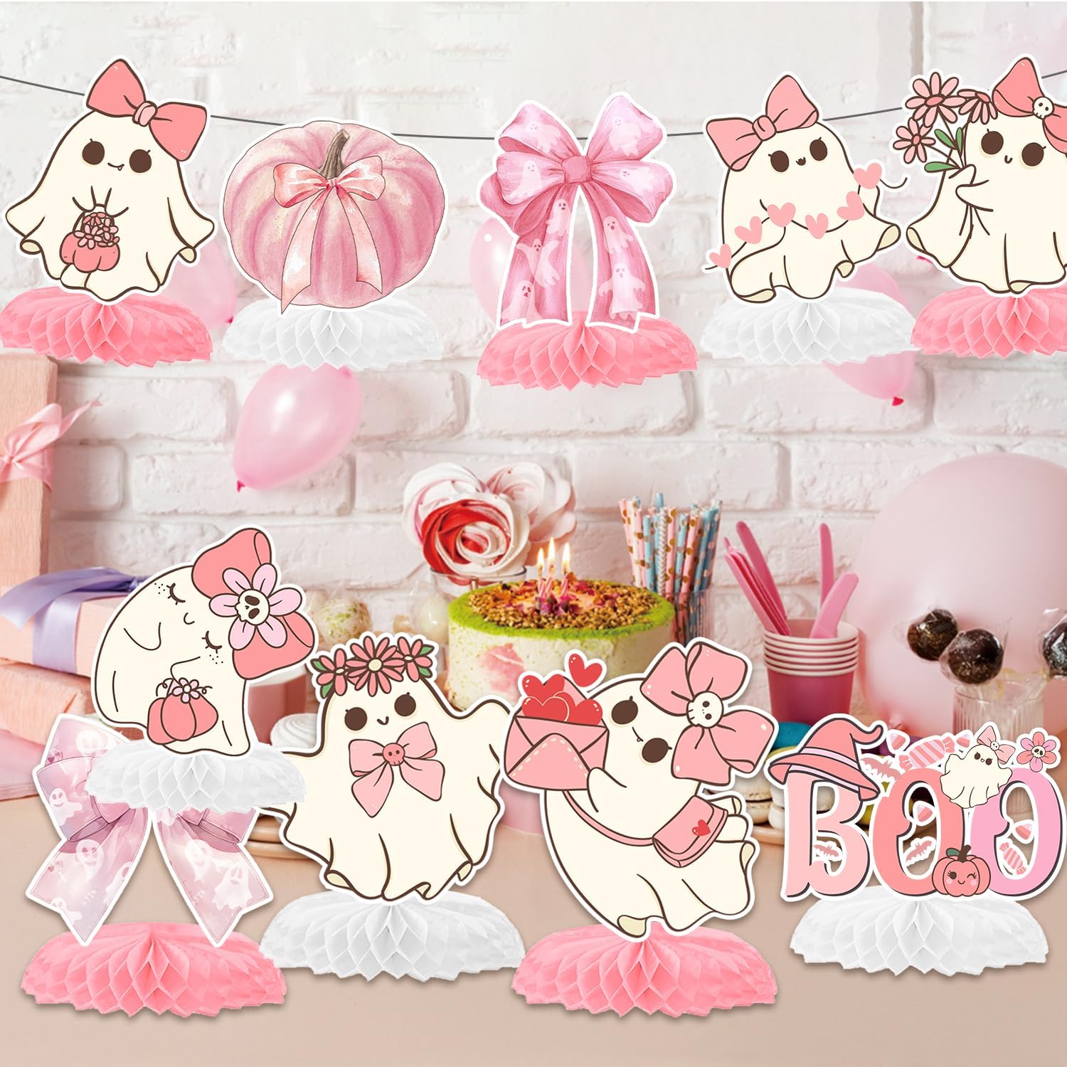 La confezione include: Le nostre decorazioni rosa per feste di Halloween includono 12 centrotavola a nido d'ape con fiocco fantasma in 12 stili diversi. Preparati per un sacco di complimenti, i tuoi ospiti adoreranno il design unico sulle decorazioni da tavolo fantasma di prua. Decorazioni rosa per feste di Halloween: questi centrotavola con fiocco fantasma sono stati ispirati a motivi iconici di Halloween come fiocchi, fantasmi, zucche e pipistrelli. Le nostre decorazioni presentano un delizioso mix di motivi rosa pastello e Halloween, aggiungendo un tocco unico ed elegante alle decorazioni per feste di compleanno di Halloween. Materiale e design affidabili: queste decorazioni rosa di Halloween sono realizzate in carta di qualità, spesse e robuste, non si deformano facilmente. Stampato con motivi divertenti e luminosi, non sbiadisce facilmente. La base a nido d'ape con fiocco fantasma è facile da aprire e può stare saldamente sul desktop per un lungo periodo di tempo. Facile da montare: basta assemblare il cartone e la carta a nido d'ape insieme per ottenere un divertente centrotavola con fiocco fantasma. Preparati a ospitare una festa a tema Halloween con le nostre decorazioni perfette per centrotavola da tavola di compleanno con fantasma. Ampio utilizzo: questi centrotavola a nido d'ape con fiocco sono ideali per feste fantasma con arco, giochi di feste di Halloween, bomboniere di Halloween rosa, decorazioni di compleanno con fantasma, riunioni di famiglia, premi in classe e molto altro ancora, anche molto attraenti per l'uso quotidiano, graziosi accessori per gli amanti dei fantasmi dell'arco.