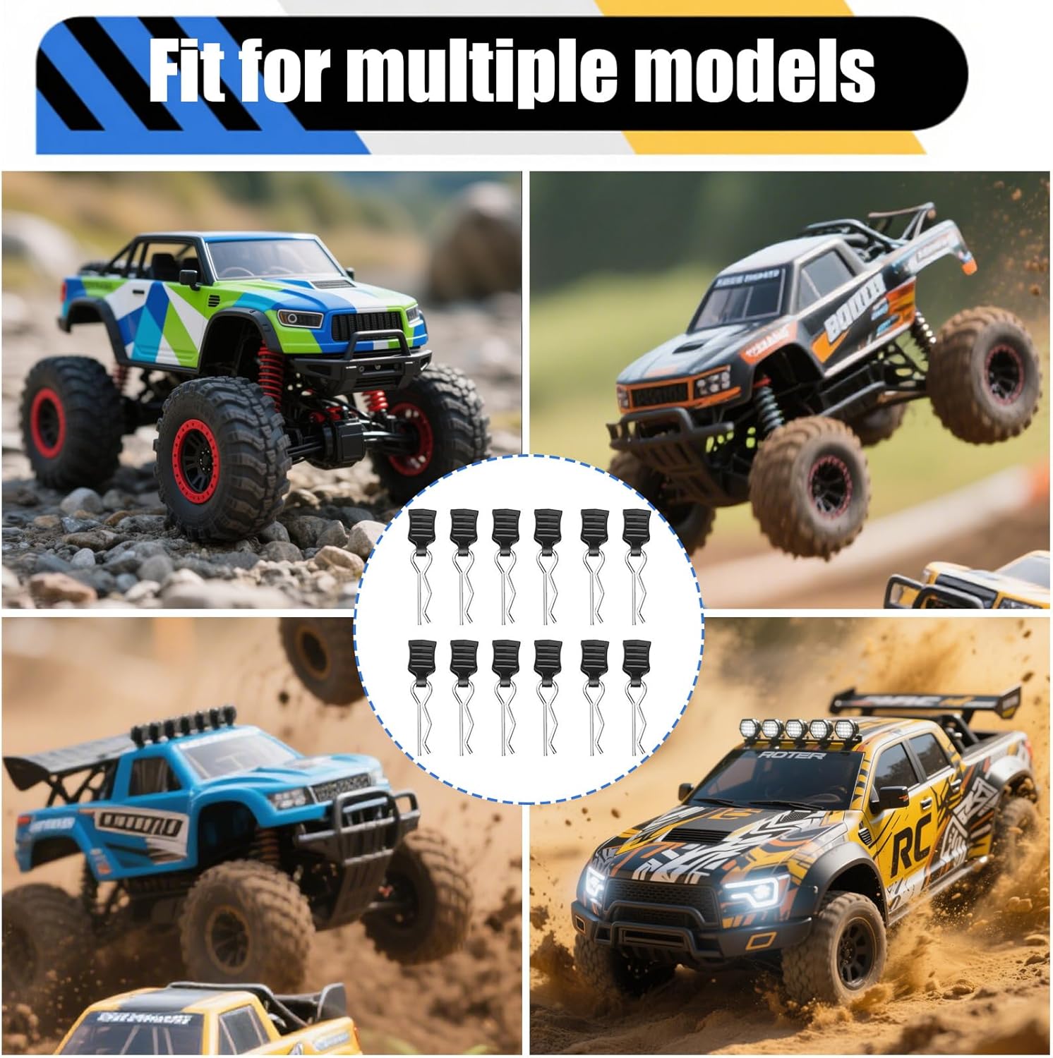 Alta qualità: le clip per carrozzeria RC sono realizzate in acciaio inossidabile resistente e sono resistenti alla corrosione. Offrono un'elevata tenacità e rigidità, che facilitano l'uso a lungo termine e garantiscono una lunga durata. Facile da usare: con pratiche linguette a strappo, le clip per carrozzeria RC sono facili da installare e rimuovere. Ideale per la sostituzione di clip danneggiate o perse, anche durante il gioco intensivo fuoristrada. Ampia applicazione: queste clip per carrozzeria si adattano a auto da 1/10, 1/14, 1/8RC e sono perfette per ricambi Deerc e parti di ricambio Haiboxing e molte altre marche. Pratico formato della confezione: riceverete un totale di 12 clip per carrozzeria in una pratica confezione, che offre abbastanza clip per un uso regolare e una sostituzione. Le clip sono ideali per auto RC che vengono utilizzate regolarmente. Vestibilità ottimale: le clip per carrozzeria con linguette a strappo offrono una vestibilità sicura per molti diversi modelli di veicoli RC e consentono un fissaggio stabile della carrozzeria senza che scivoli facilmente durante l'uso.