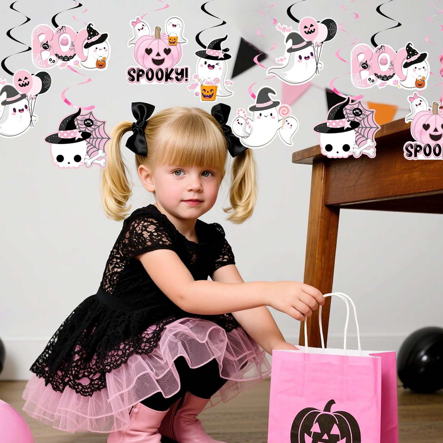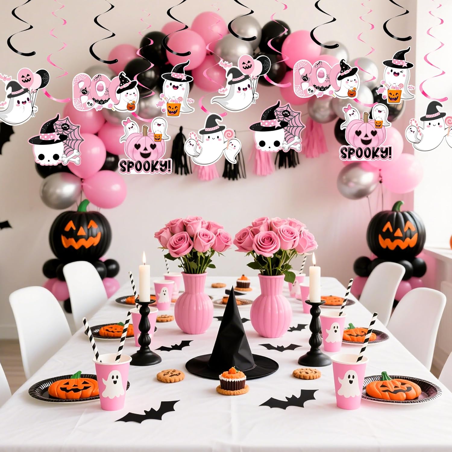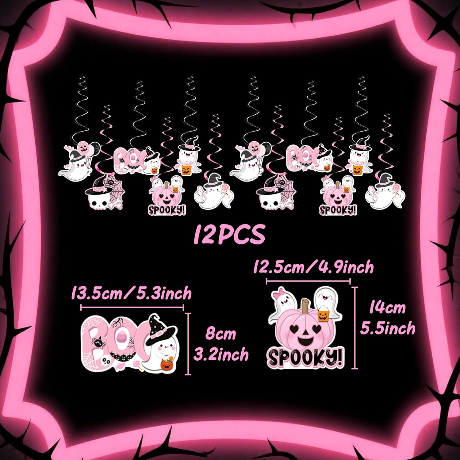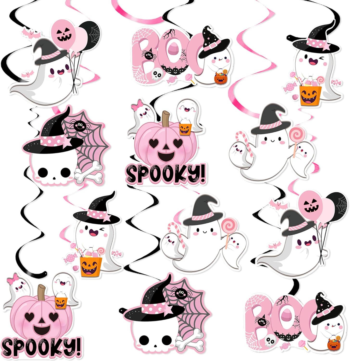 Ricevi: 12 x decorazioni sospese per Halloween rosa Ogni decorazione sospesa per Halloween ha una corda preinstallata che consente un fissaggio rapido su tavoli dei dessert o scenografie fotografiche I Boo Ghost Foil Swirls possono essere utilizzati come decorazione per Halloween, feste a tema Gothic e altre occasioni festive Personalizza la tua festa: le nostre decorazioni sospese per Halloween rendono la tua festa interessante e entusiasmeranno la tua famiglia e gli ospiti I fantasmi banner rosa possono essere utilizzati come decorazione per feste di Halloween e feste a tema Gothic