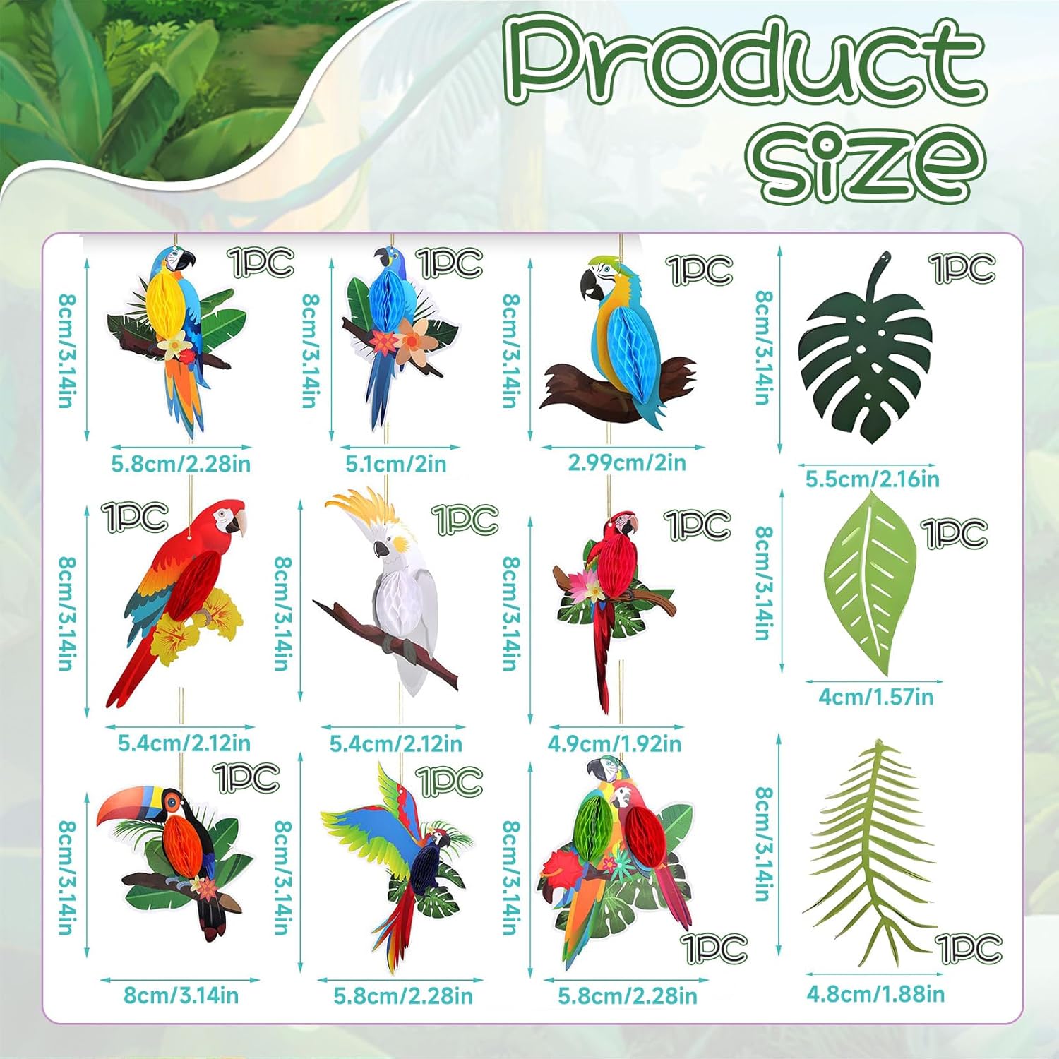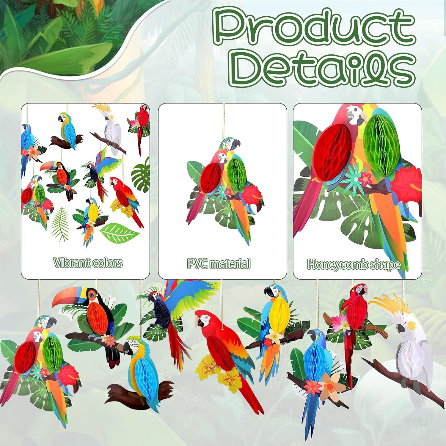 12 Pezzi Decorazioni Tropicali per Uccelli Hawaiani, Decorazioni da Appendere per Pappagalli, Uccelli Tropicali Ritagli a Nido D'ape, per Hawaiian Summer Luau Giungla Party
