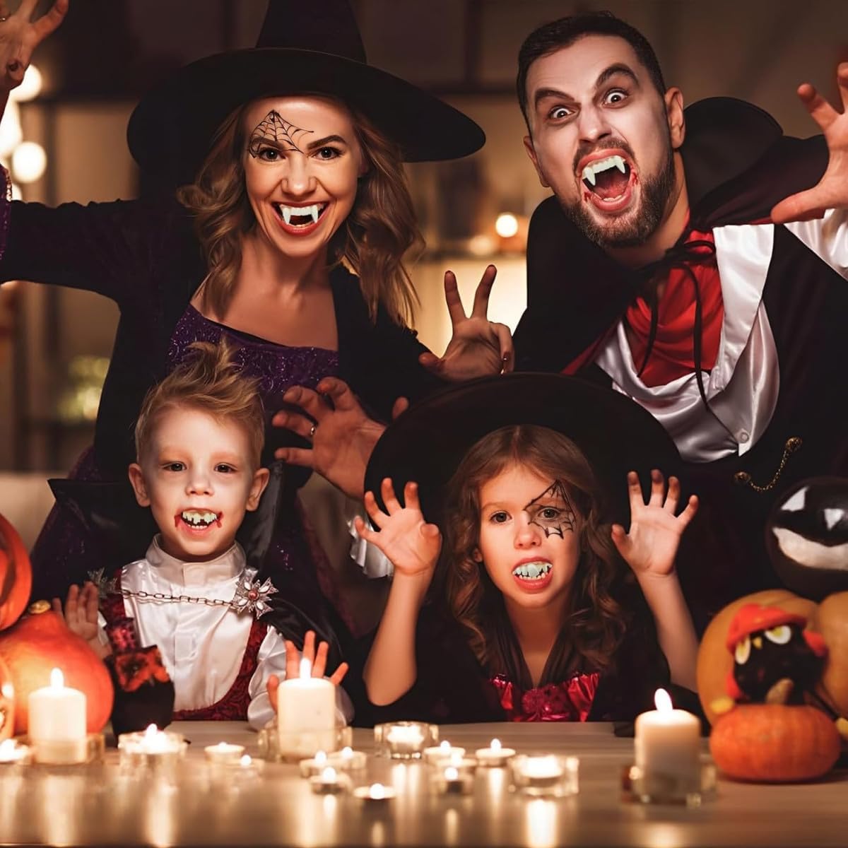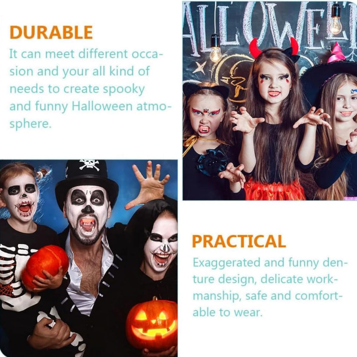 12 stili unici: Include una varietà di denti finti spaventosi, divertenti e realistici per creare un look terrificante o esilarante ad Halloween. Materiale PVC di alta qualità: La forma dei denti da vampiro è inodore. Facili da pulire e riutilizzabili per un divertimento spaventoso senza fine! Il colore dei brutti denti finti è simile a denti e gengive reali, realistico e vivido, e questi denti strani e divertenti faranno sicuramente ridere i tuoi amici e li faranno divertire. Realistici & comodi: Progettati per imitare denti e gengive reali, con una vestibilità leggera (4,5–7,5 cm), perfetti per creare un'atmosfera spaventosa alla tua festa, un must per ogni festa di Halloween. Perfetti per ogni occasione: Denti finti da vampiro ideali per feste di Halloween, maschere, eventi horror, cosplay, scherzi e Distinguiti & stupisci i tuoi amici: Questi denti stravaganti garantiscono risate e ti rendono il centro dell'attenzione!