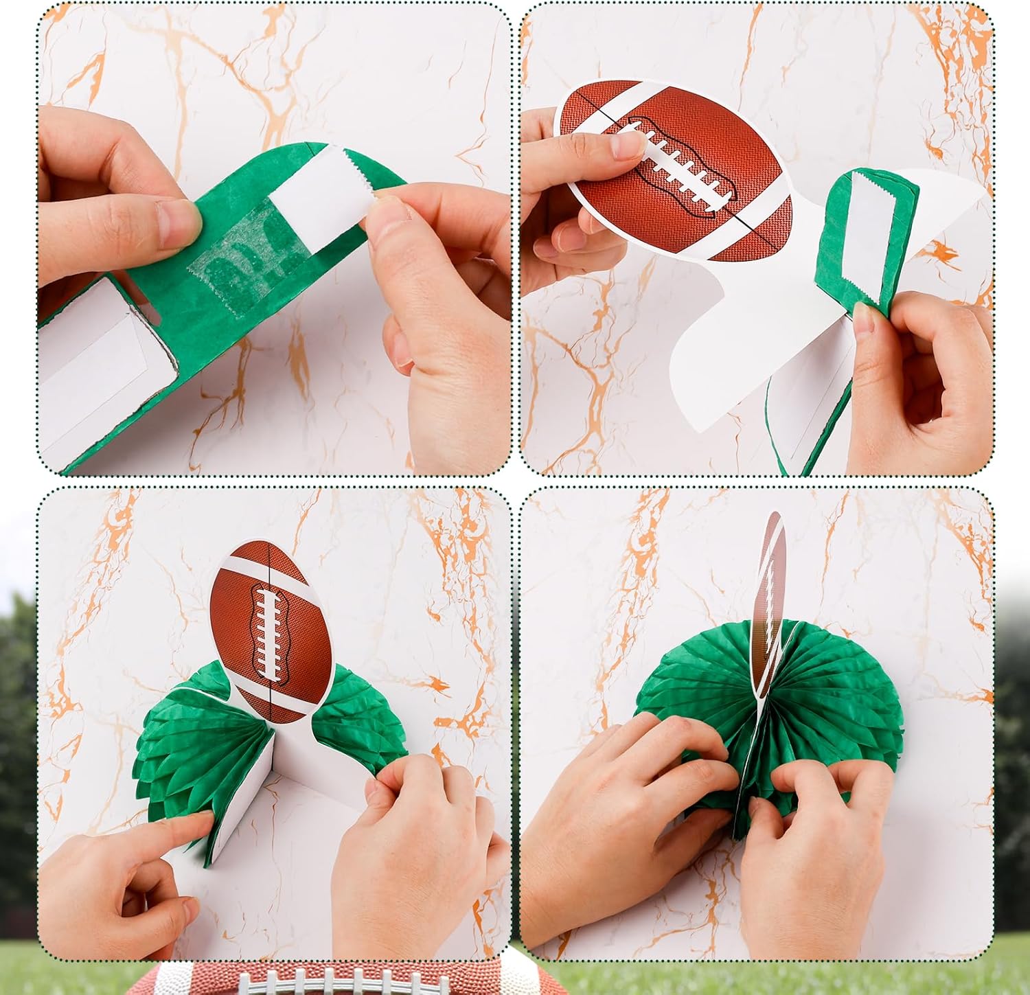 Contenuto del pacchetto: riceverai 12 pezzi di centrotavola a nido d'ape da calcio in 3 dimensioni, 4 pezzi in ogni dimensione, quantità e dimensioni sufficienti per soddisfare le tue esigenze di decorazione. Materiale del prodotto: i topper della nostra tavola di calcio sono realizzati in carta premium, che non è facile da rompere e sbiadire, può essere piegato e facile da conservare. Design del prodotto: i nostri centrotavola da calcio sono progettati a forma di calcio, con una forma speciale, un modello chiaro e pieno di colori sportivi, che possono rendere vivace la tua festa. Dimensioni perfette: queste decorazioni a nido d'ape sono disponibili in tre dimensioni (16,5x15,7 cm, 18,5x15,7 cm, 21,5x15,7 cm), sufficienti a soddisfare le tue esigenze decorative. Decorazioni per feste: le nostre decorazioni da tavolo da calcio sono adatte sia per uso interno che esterno, perfette per tutti i tipi di feste a tema calcistiche, feste di compleanno di calcio, feste per feste e altro ancora.