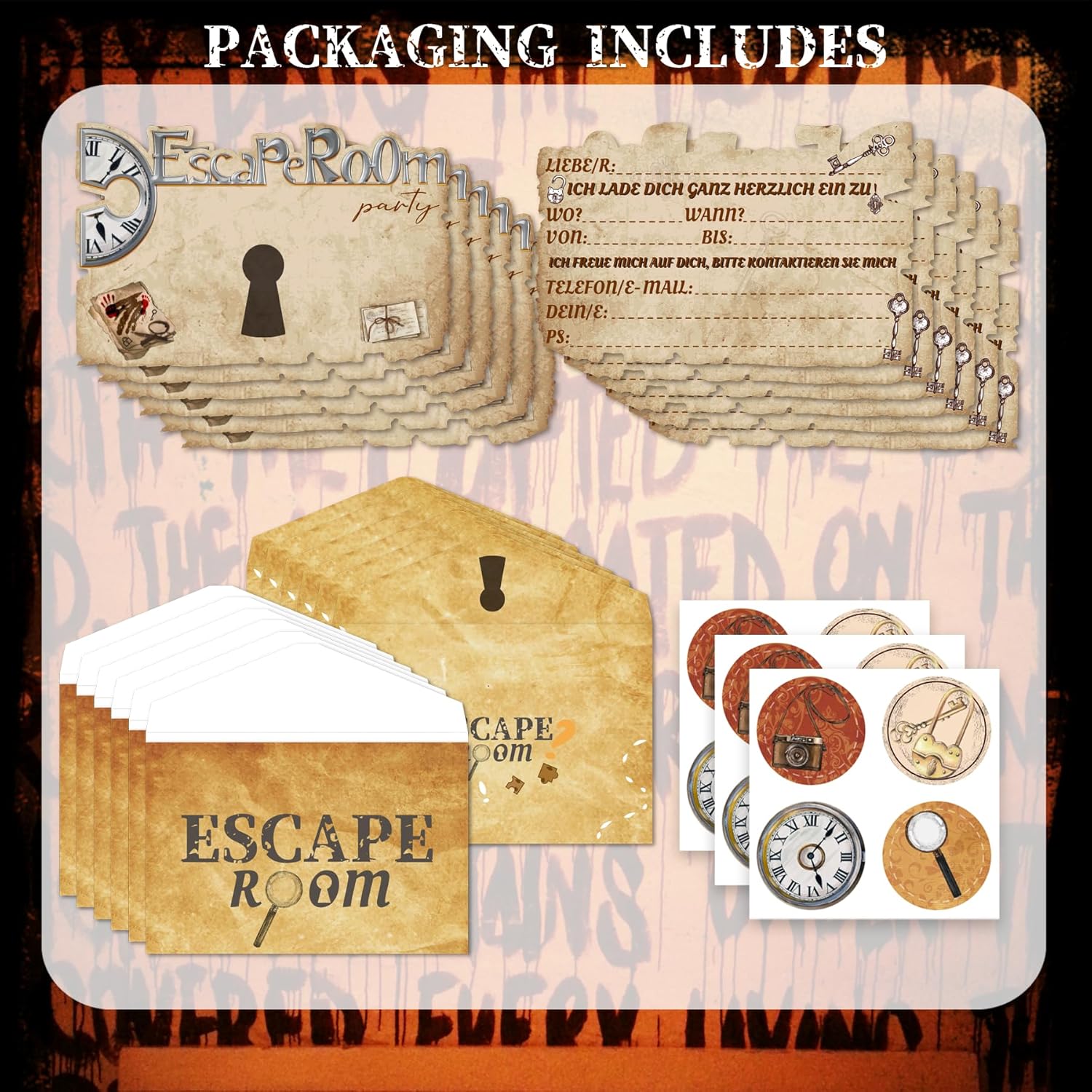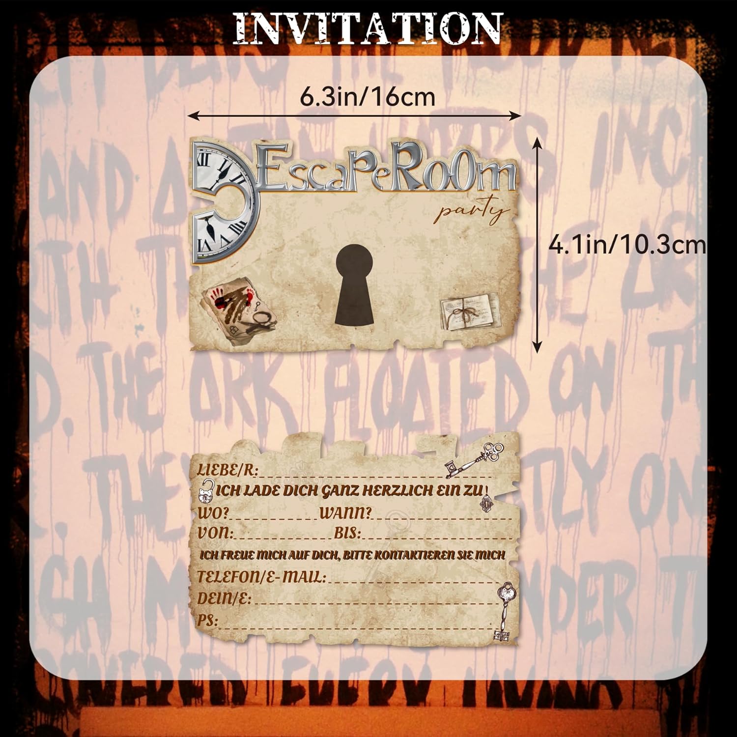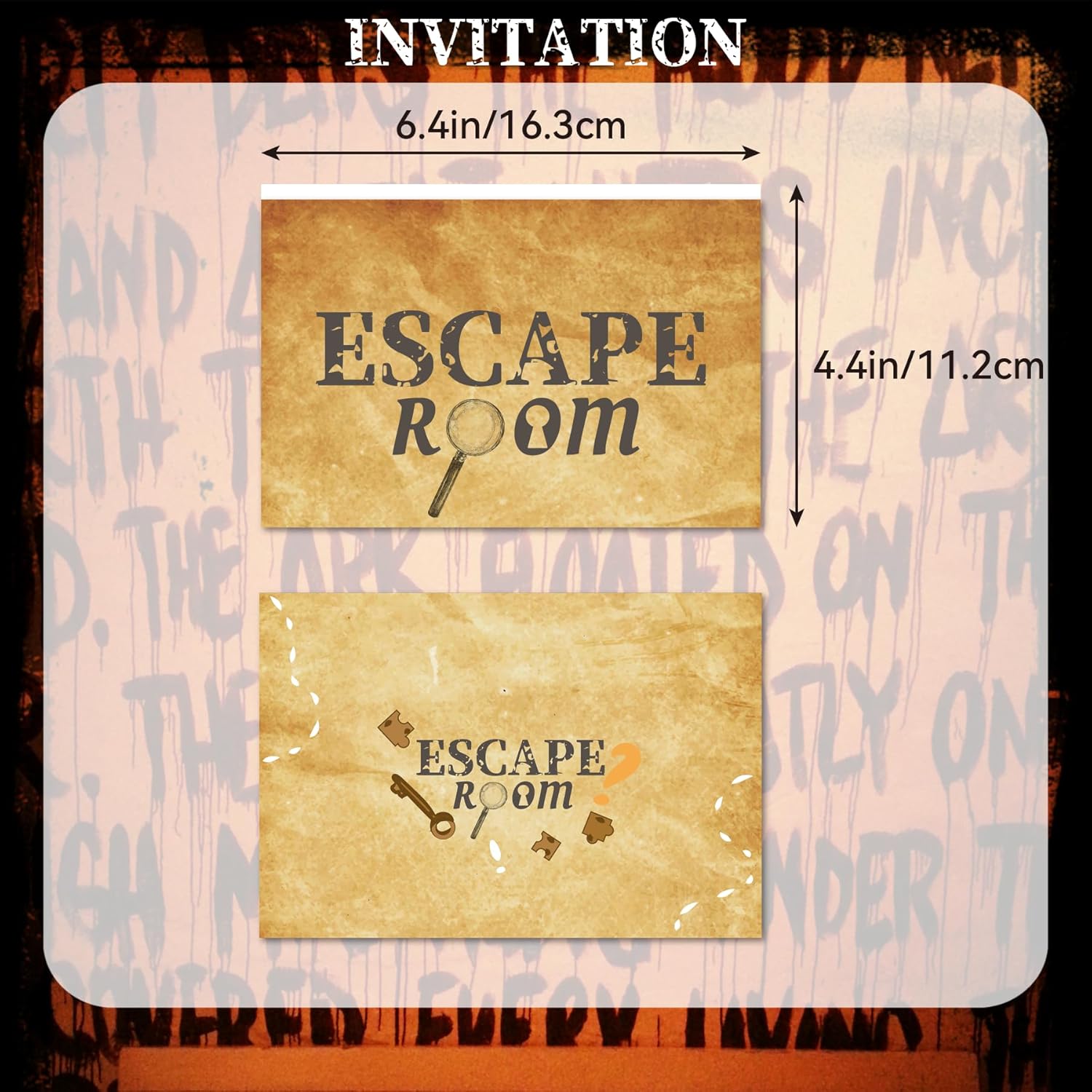 Inviti Escape Room: riceverete 12 inviti Escape Room, 12 buste Escape Room, 12 adesivi Escape Room. Quantità sufficiente per soddisfare le vostre esigenze di decorazione. Invitiamo la famiglia e gli amici a una meravigliosa festa in sala da fuga Design unico: il design della Escape Room è unico, con motivi squisiti e stampa di alta qualità, che rende la decorazione della festa Escape Room facile attirare l'attenzione degli altri e lasciare un ricordo bello e indimenticabile Materiale: gli inviti Escape Room sono realizzati in cartone, adesivi Escape Room in vinile. Tutti i materiali sono sicuri ed ecologici, durevoli, non facili da piegare e strappare, possono essere utilizzati per un periodo più lungo Facile da scrivere: compilare questo biglietto di invito a tema Escape Room è molto semplice. Con una ragionevole disposizione dei contenuti informativi, è possibile inserire rapidamente il tempo, il luogo, l'e-mail e altre informazioni correlate, risparmiando molto tempo di preparazione Decorazione per feste in camera da lettera: la nostra lettera di invito a tema Escape Room è la scelta perfetta per feste di compleanno, feste a tema escape room, feste in fuga, feste per bambini, feste di compleanno, riunioni di amici e altre attività gioiose. L'esclusivo design Escape Room attirerà più attenzione e renderà la vostra assemblea più popolare