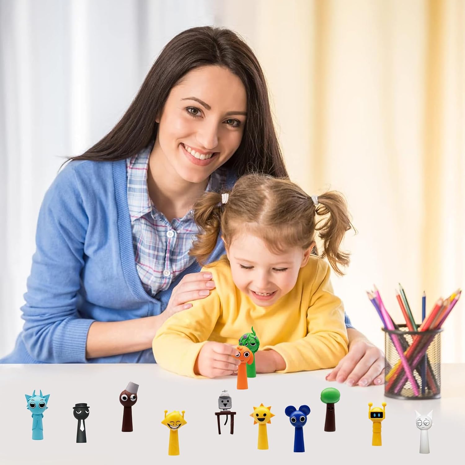 【Materiale Di Qualità】 I Giocattoli Sprunky sono realizzati in PVC di alta qualità, robusti e durevoli, non facili da danneggiare, colori ricchi e texture delicata rendono le figure più realistiche. 【Pacchetto Incluso】Questo set di bambole contiene 12 colorate e diverse forme di bambole dei cartoni animati, circa 6,3-7,9 cm di altezza, piccole e carine, ogni personaggio ha caratteristiche distintive e espressioni vivaci, che portano divertimento infinito ai collezionisti. 【Design Unico】Le figure di Sprunky sono ispirate a personaggi popolari, con design vivaci e fascino visivo, questo set di giocattoli di personaggi fornirà al bambino un intrattenimento senza fine e ore di giochi di ruolo immaginativi. 【Ampio Utilizzo】Le bambole Sprunky sono ottime decorazioni da tavolo per creare un'atmosfera accogliente, possono essere utilizzate per la decorazione della casa, per la decorazione dell'auto, per i giochi di bricolage e per le decorazioni delle torte, non solo puoi decorarle, ma anche usarle per la tua collezione. Grazie alle scanalature rotonde sul fondo, può essere utilizzato anche come coprimatita. 【Regalo Ideale】Queste figure Sprunky sono il regalo perfetto per i fan dei giocattoli e delle action figure di Deadpool, così come per compleanni, vacanze o qualsiasi altra occasione. Con il loro design intelligente e l'attenzione ai dettagli, sono ideali per qualsiasi collezione di giocattoli, soprattutto per i fan dei giochi Sprunky. Possono anche essere utilizzati come riempitivi per i calendari dell'Avvento.
