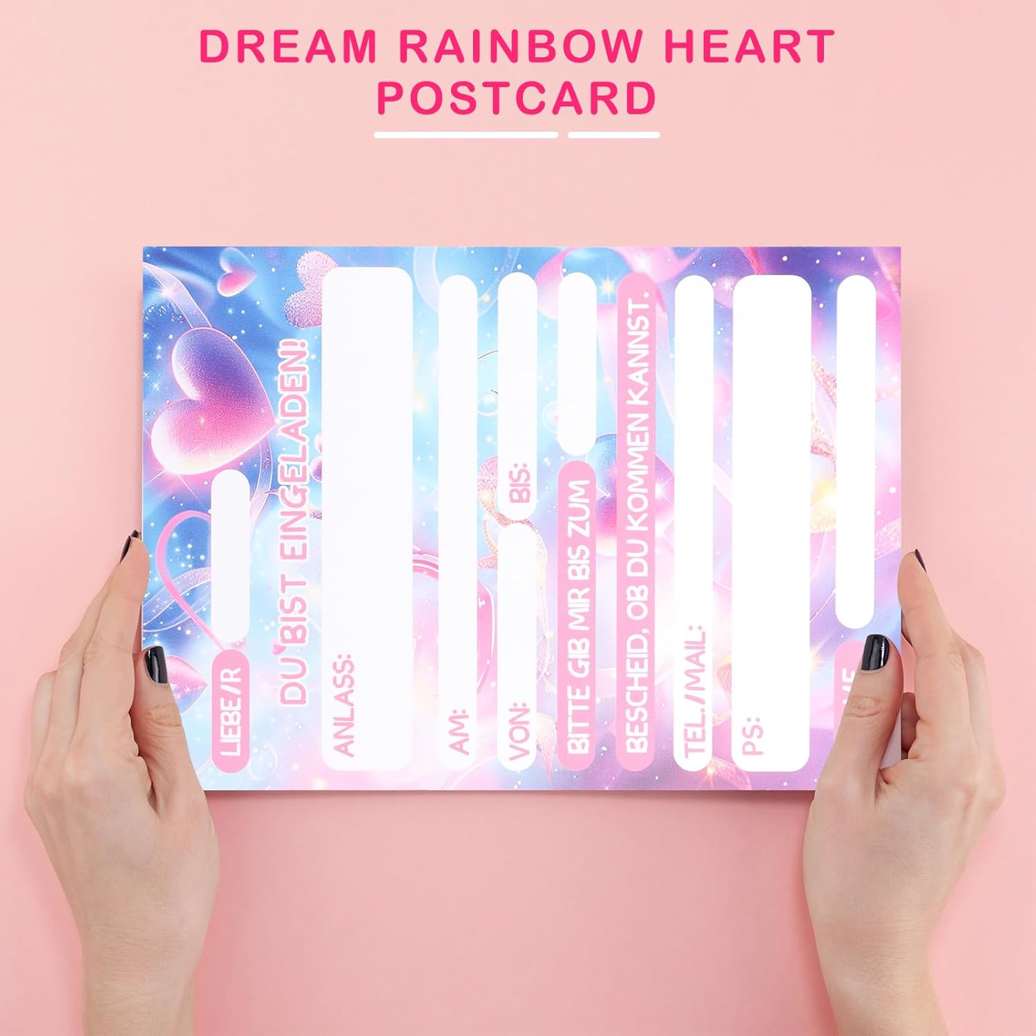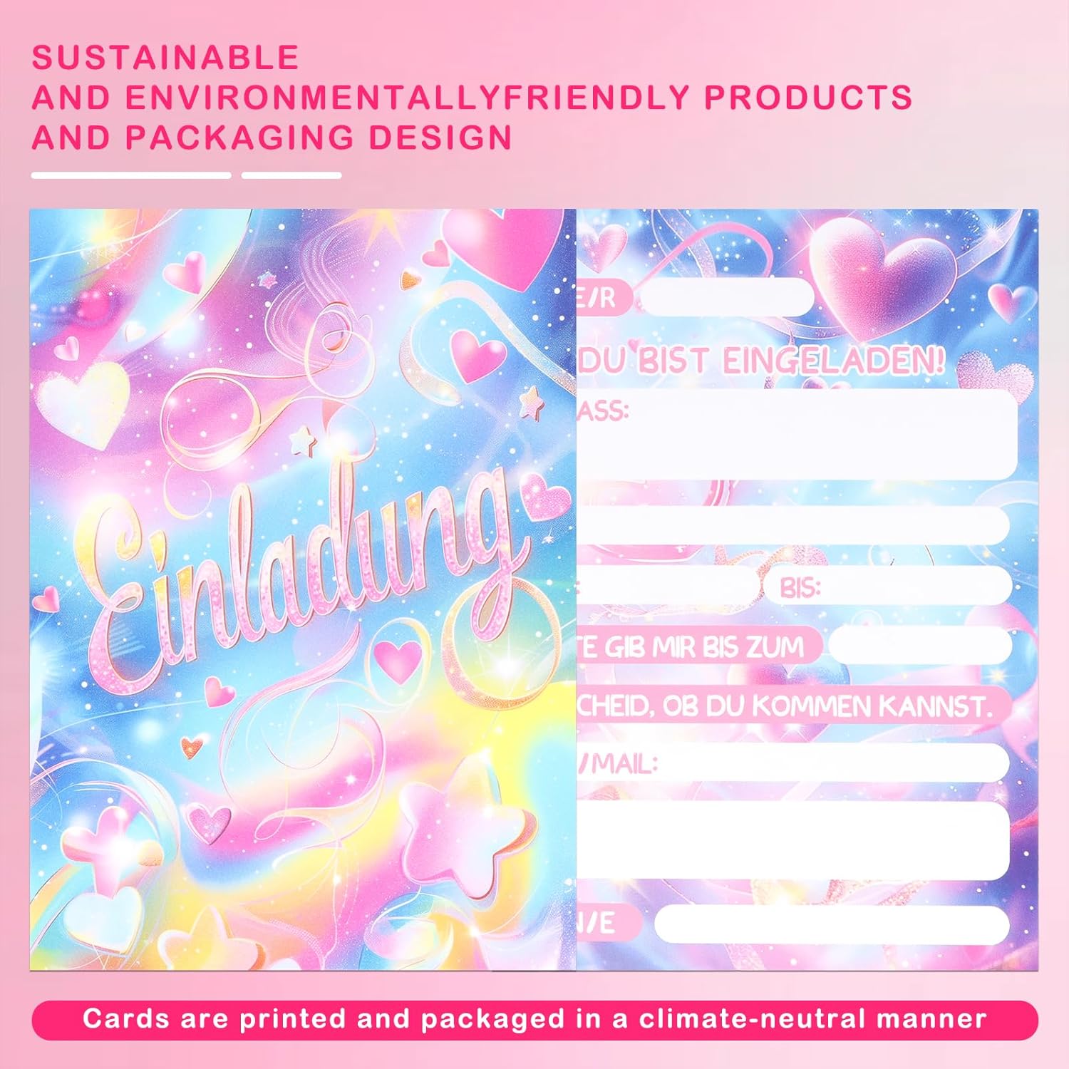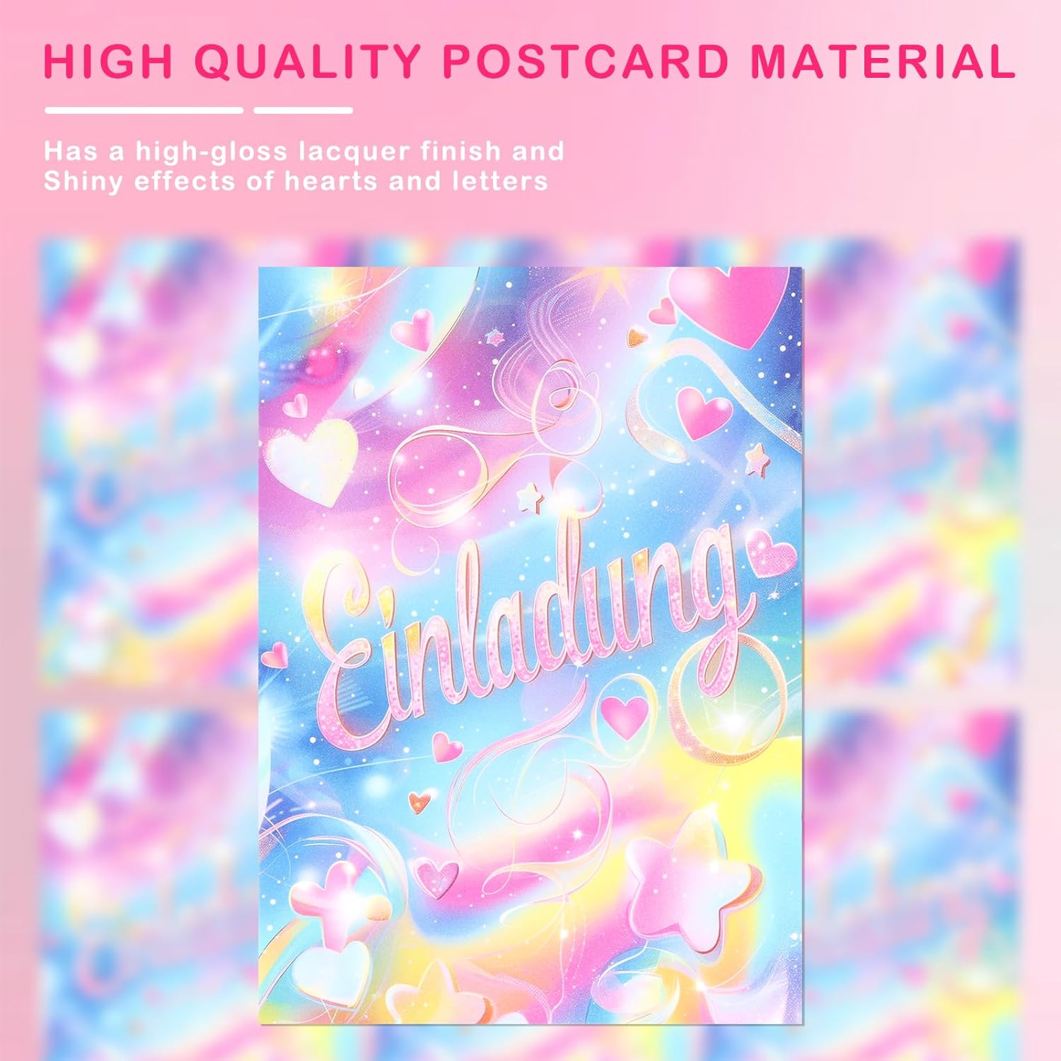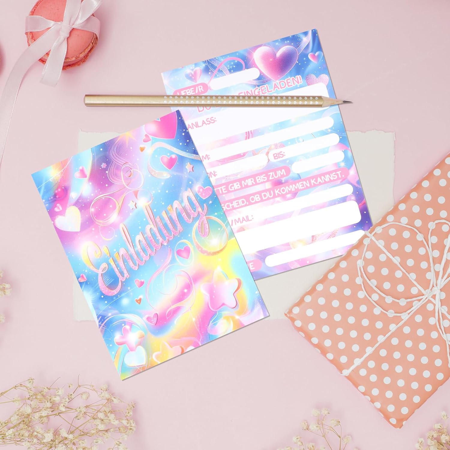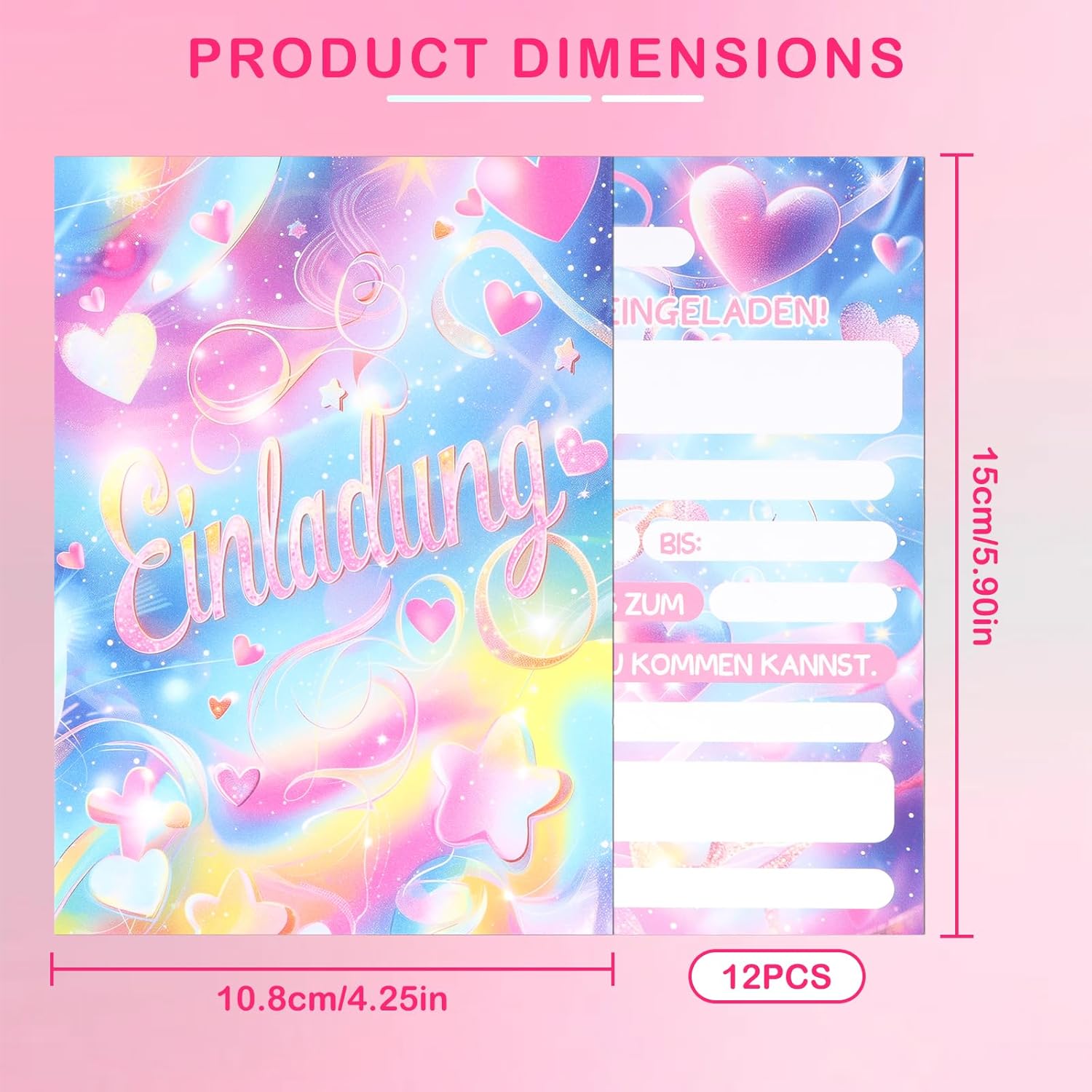 Set squisito: Contiene 12 biglietti d'invito con tema arcobaleno da sogno, realizzati in formato cartolina DIN A6 standard, stampa fronte-retro ad alta precisione, ogni biglietto è rivestito con vernice lucida, brillante e abbagliante, che aggiunge un senso di cerimonia alla festa. Materiale di alta qualità: I nostri biglietti d'invito per il compleanno sono stampati su materiali per cartoline robusti e di alta qualità, resistenti a pieghe e deformazioni, garantendo che i biglietti d'invito rimangano in perfette condizioni dalla spedizione alla ricezione. Stelle glitterate: La parte anteriore è realizzata in vernice glitterata per mettere in risalto l'arcobaleno, le stelle e il testo, creando uno splendido contrasto visivo, con dettagli squisiti e un senso di qualità totale, che farà innamorare i bambini a prima vista! Facile da compilare: Il retro è satinato e non patinato, quindi è possibile scrivere agevolmente con penna stilografica, penna stilografica e pennarello. Campi di compilazione preimpostati in tedesco (ad esempio nome, ora, luogo, ecc.). Risparmia tempo e fatica, compila velocemente. Ampiamente applicabile: Adatto a varie occasioni come feste di compleanno, attività all'asilo, riunioni di classe, feste in giardino, ecc., consentendo ai bambini di socializzare e trasmettere facilmente un'atmosfera felice.