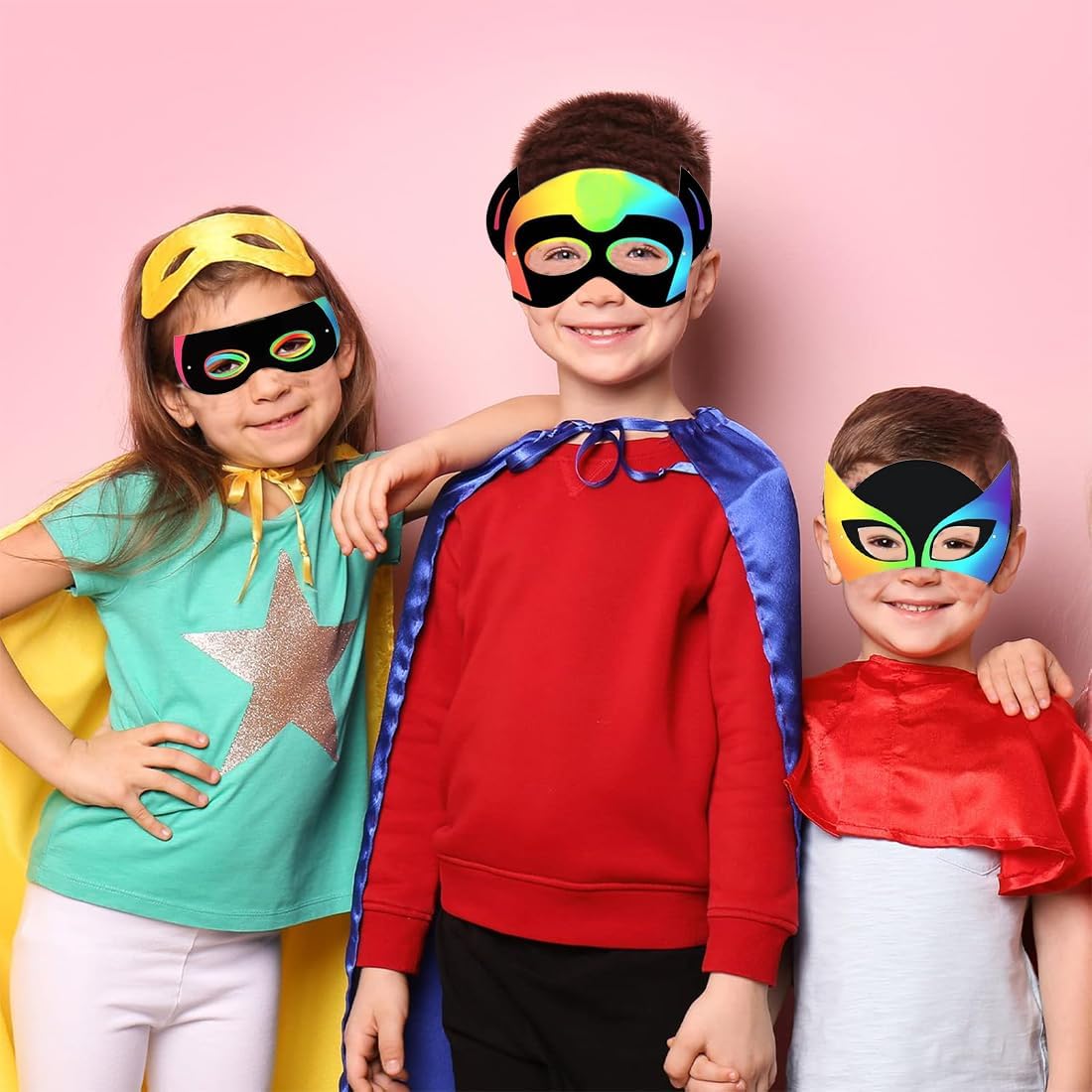 Modelli ricchi: copre una vasta gamma di modelli di eroi e personaggi fantastici, soddisfacendo diverse esigenze di gioco e stimolando l'immaginazione dei bambini. Si adatta facilmente a scene come Halloween e feste, aggiungendo divertimento alle attività. Grattacarte creativo: design unico del gratta e vinci, i bambini possono creare autonomamente motivi colorati, usando le mani e la mente, realizzando maschere personalizzate e godendo del divertimento e del senso di soddisfazione del fai da te. Materiali di alta qualità: realizzati con materiali sicuri ed ecologici, leggeri, morbidi e comodi da indossare, non danneggiano la pelle dei bambini, offrono loro una cura premurosa e danno maggiore tranquillità ai genitori. Adatti a molteplici occasioni: perfetti per Halloween, feste di compleanno o giochi di ruolo quotidiani, aiutano i bambini a trasformarsi nei loro personaggi preferiti e a divertirsi senza sosta. Accessori completi: dotato di bastone di legno, corda, ecc., può essere tenuto in mano o indossato a scelta, è facile da usare e i bambini possono imparare rapidamente a utilizzarlo, iniziando subito a divertirsi con i giochi di ruolo.