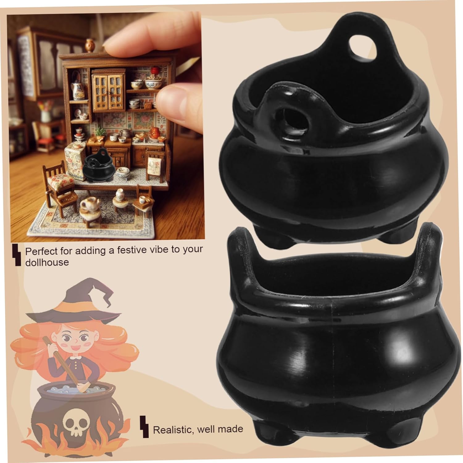 12 pezzi: il pacchetto include 12 pezzi Mini Witch Cauldron, quantità sufficiente per soddisfare le tue esigenze di decorazioni e adattare le scene di Halloween, che possono creare un tempo vivido e memorabile di Halloween. Perfetti per l'arredamento di Halloween: questi mini calderoni sono un'aggiunta ideale alle tue decorazioni di Halloween..Il loro classico design nero e le piccole dimensioni li rendono perfetti per creare un'atmosfera spettrale nella tua casa, una casa delle bambole o una configurazione per feste. Mini dimensione: a 0,8x0,7 pollici, questi mini calderoni sono perfettamente dimensionati per le miniature della casa delle bambole..Usali per creare una scena affollata nella tua casa delle bambole o come accenti divertenti e dettagliati in altri progetti in miniatura. Costruzione in plastica: realizzati in plastica, questi mini calderoni sono robusti e riutilizzabili..Il loro design garantisce che possano essere utilizzati anno dopo anno, rendendoli un ottimo investimento per la tua collezione di decorazioni di Halloween. Facile da appendere: ogni mini calderone è dotato di piccoli fori, consentendo una facile impiccagione..Usali per creare decorazioni sospese, metterle insieme per una ghirlanda spettrale o semplicemente mostrarli come parte della tua configurazione di Halloween.