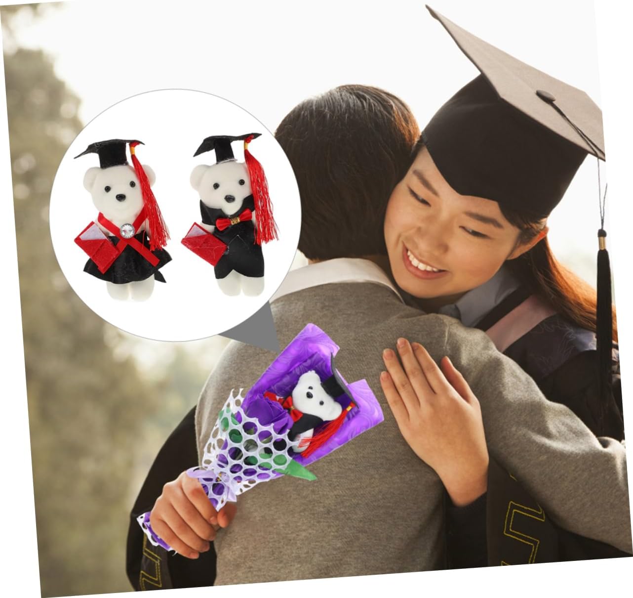Design adorabile: la bambola a forma di orsetto in schiuma con berretto da laurea è un'adorabile aggiunta a qualsiasi cerimonia di laurea Valore ricordo: questo orsetto è un ricordo unico che rende i ricordi della laurea più significativi Decorazione per feste: dona un'atmosfera divertente e festosa alle cerimonie e agli eventi di laurea Uso versatile: ideale per l'uso in cerimonie di laurea, feste e altri ambienti celebrativi Laurea: per laureati che offrono congratulazioni e incoraggiamento