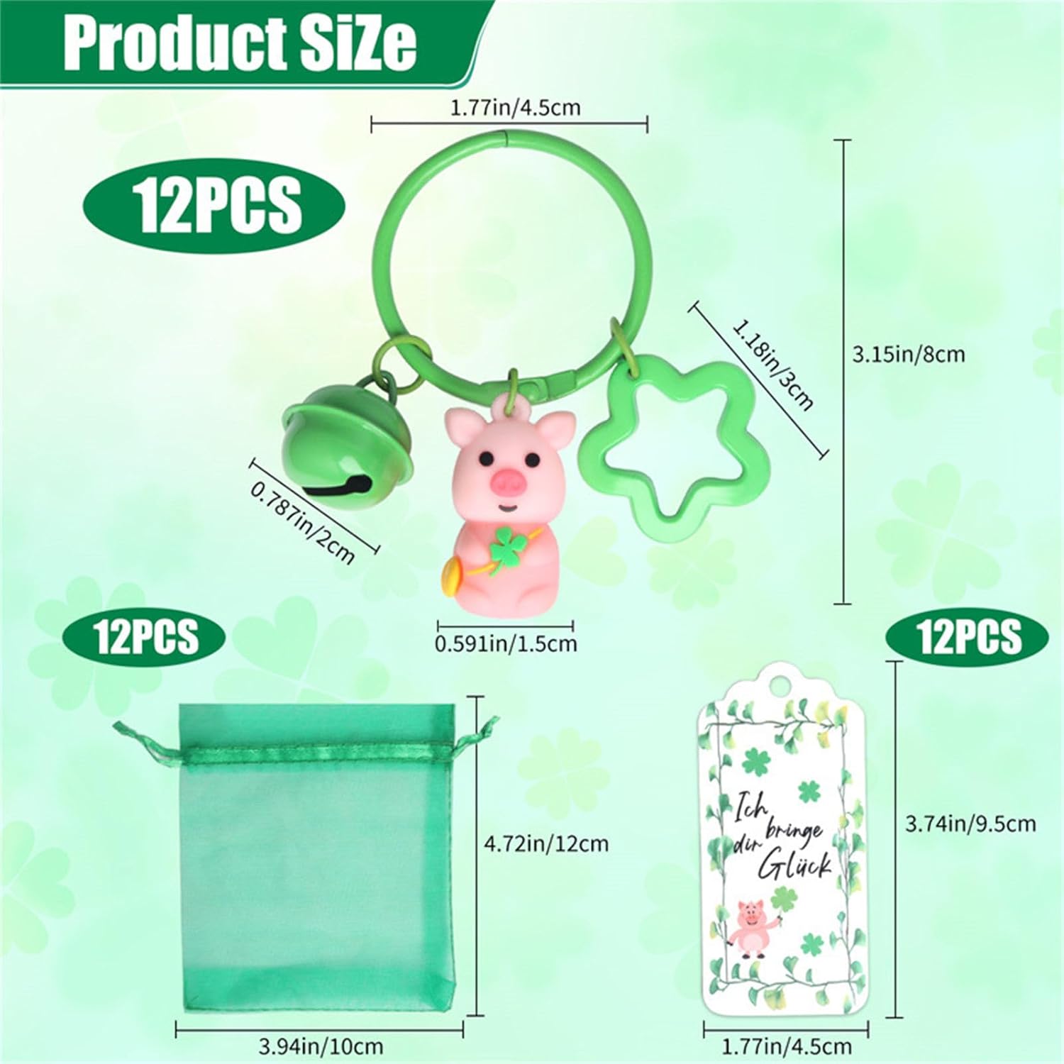Da utilizzare durante le feste dei festival irlandesi, questi portachiavi fungono da souvenir di cui gli ospiti faranno tesoro per molto tempo dopo la fine della celebrazione. Festeggia il Festival irlandese con il nostro set portachiavi Lucky Pig per festeggiare i tuoi ospiti. Adatto per gli host che vogliono donare ai propri ritrovi o eventi un'atmosfera unica e festosa. Realizzato in metallo, resina e carta. Questi portachiavi sono resistenti e aggiungono un tocco di fantasia ad ogni occasione. Illumina la tua festa con questi portachiavi a forma di maialino e sono un'aggiunta essenziale alla tua collezione di decorazioni natalizie e articoli per feste.