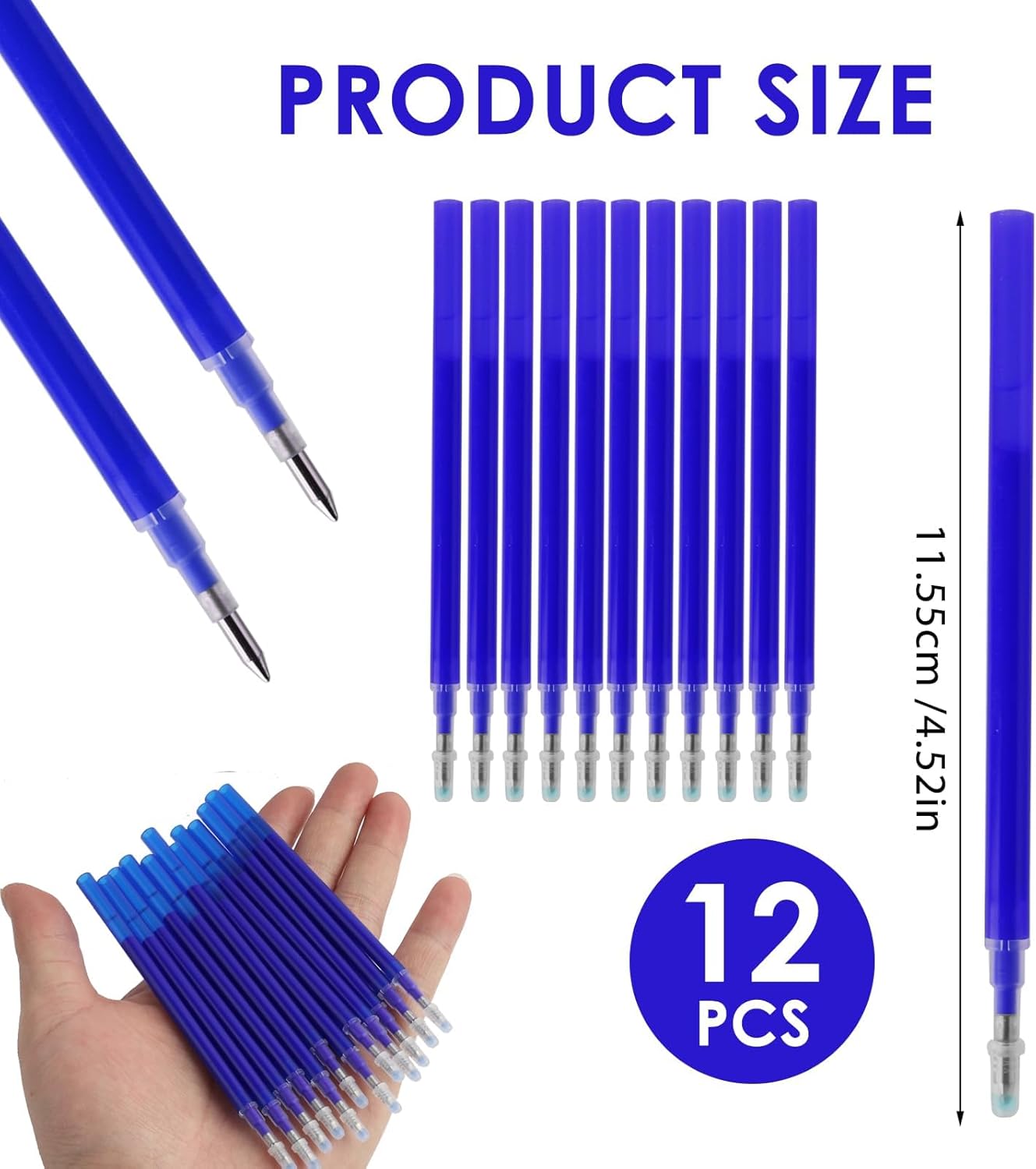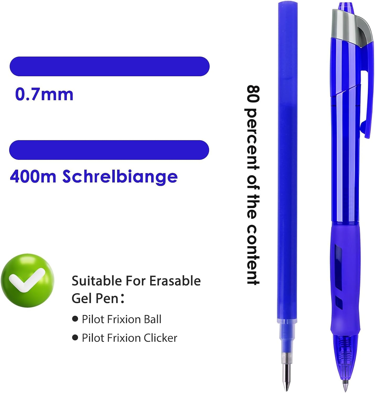 Compatibilità Estesa: Le nostre ricariche sono progettate per essere compatibili con una vasta gamma di penne a sfera cancellabili, permettendoti di continuare a utilizzare i tuoi strumenti di scrittura preferiti senza interruzioni. Correzione Senza Tracce: Grazie all'inchiostro termosensibile, queste ricariche ti permettono di cancellare completamente gli errori senza lasciare residui o danneggiare il foglio. Ideale per studenti e professionisti che necessitano di mantenere i loro documenti puliti e ordinati. Scrittura Fluida e Confortevole: L'inchiostro offre un'esperienza di scrittura eccezionalmente liscia e continua. La punta fine da 0,7 mm garantisce precisione nei dettagli, rendendo la scrittura su qualsiasi tipo di carta un vero piacere. Asciugatura Immediata per Evitare Sbavature: L'inchiostro a base di gel si asciuga rapidamente, prevenendo sbavature e macchie. Questa caratteristica è particolarmente utile per chi scrive velocemente o per i mancini, garantendo risultati sempre nitidi e leggibili. Durata e Affidabilità: Ogni ricarica ha una lunghezza di scrittura di 400 metri, offrendo un uso prolungato e riducendo la frequenza di sostituzione. Il pack da 12 pezzi assicura che avrai sempre una scorta disponibile per le tue esigenze di scrittura quotidiane.