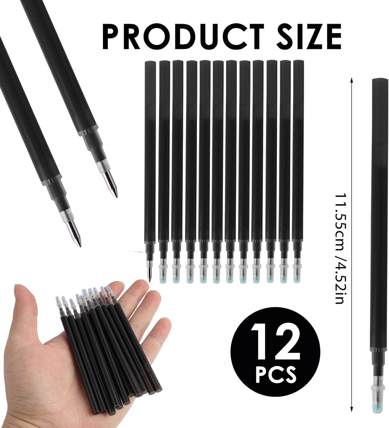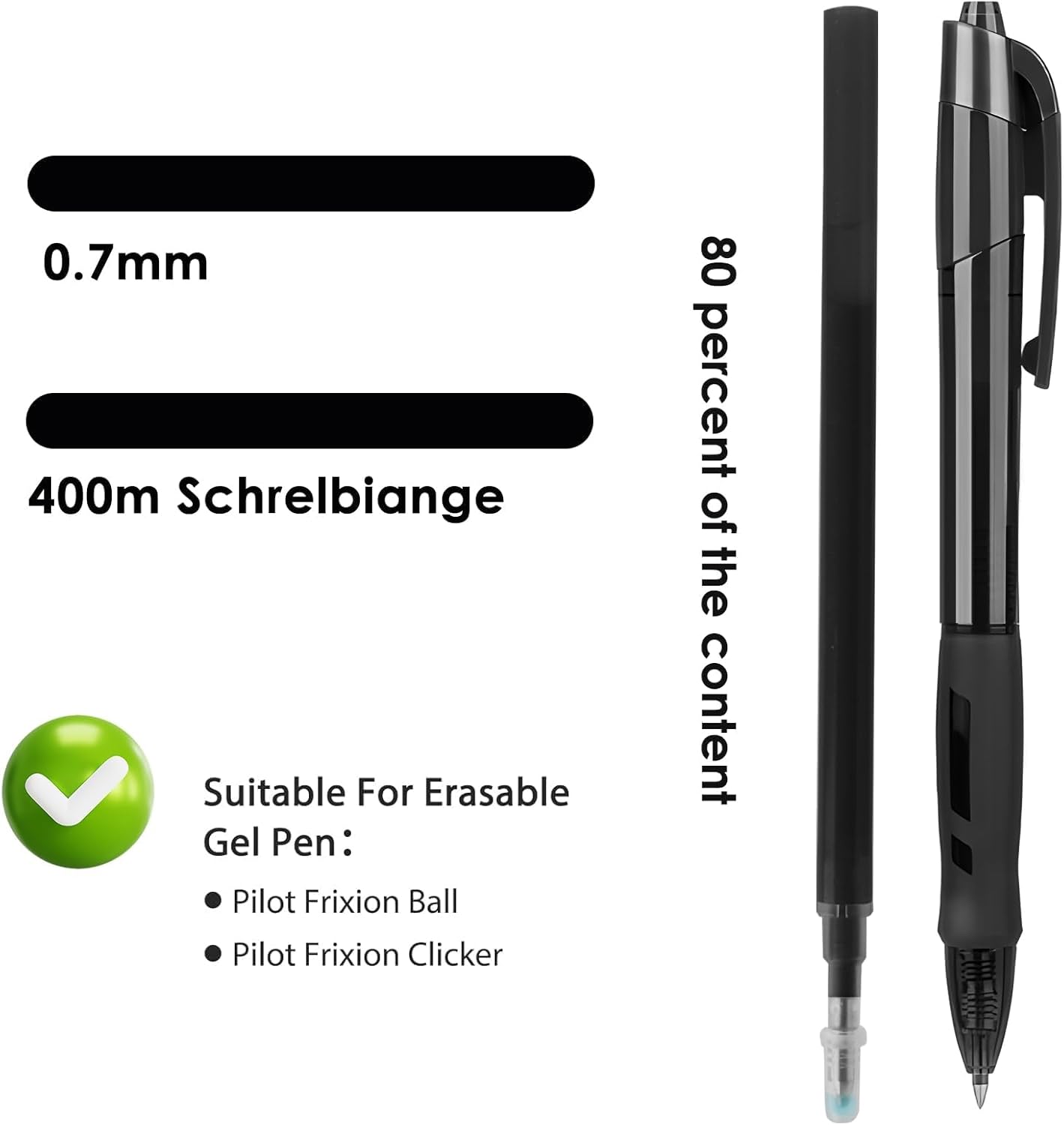 Compatibilità Estesa: Le nostre ricariche sono progettate per essere compatibili con una vasta gamma di penne a sfera cancellabili, permettendoti di continuare a utilizzare i tuoi strumenti di scrittura preferiti senza interruzioni. Correzione Senza Tracce: Grazie all'inchiostro termosensibile, queste ricariche ti permettono di cancellare completamente gli errori senza lasciare residui o danneggiare il foglio. Ideale per studenti e professionisti che necessitano di mantenere i loro documenti puliti e ordinati. Scrittura Fluida e Confortevole: L'inchiostro offre un'esperienza di scrittura eccezionalmente liscia e continua. La punta fine da 0,7 mm garantisce precisione nei dettagli, rendendo la scrittura su qualsiasi tipo di carta un vero piacere. Asciugatura Immediata per Evitare Sbavature: L'inchiostro a base di gel si asciuga rapidamente, prevenendo sbavature e macchie. Questa caratteristica è particolarmente utile per chi scrive velocemente o per i mancini, garantendo risultati sempre nitidi e leggibili. Durata e Affidabilità: Ogni ricarica ha una lunghezza di scrittura di 400 metri, offrendo un uso prolungato e riducendo la frequenza di sostituzione. Il pack da 12 pezzi assicura che avrai sempre una scorta disponibile per le tue esigenze di scrittura quotidiane.