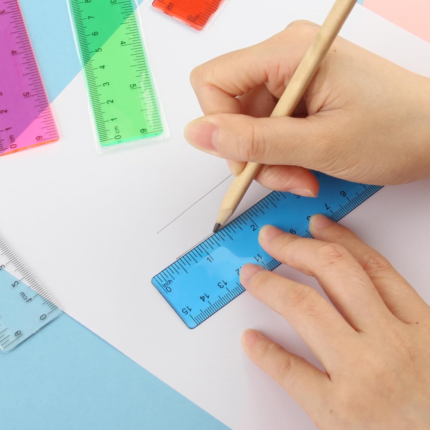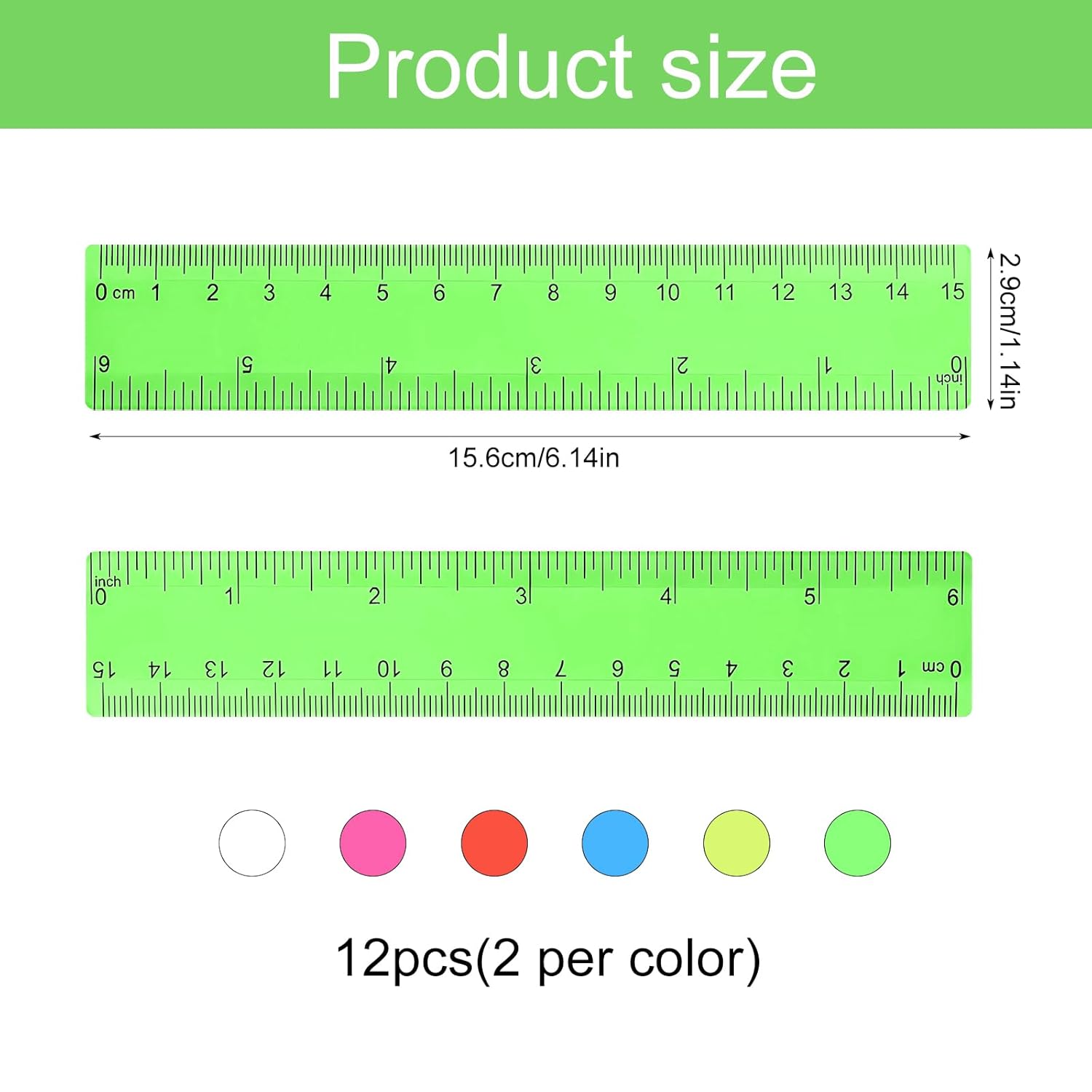 Elenco di imballaggi: Riceverai 12 pezzi di righelli, in sei colori, 2 pezzi di ogni colore, in rosso, giallo, verde, bianco trasparente, blu, rosa trasparente, taglia 6,14x1,18 pollici, e possibile selezionare una varietà di colori, soddisfare le tue esigenze di vita quotidiana Materiale: Righello 15 cm è realizzato in plastica di alta qualità, durevole, non facile da rompere, può essere leggermente piegato, può essere utilizzato per molto tempo nella vita Bellissimo design: Righello adotta un design prospettico, con una scala con centimetri e pollici, due metodi di misurazione, è possibile scegliere l'unità di misurazione di cui hai bisogno. I disegni trasparenti in diversi colori possono vedere chiaramente il contenuto e le scale sottostanti, rendendo il tuo lavoro più veloce ed efficiente Facile da usare: Righello piccolo è leggero, facile da trasportare, risparmia spazio, può essere immagazzinato in zaino e trasportare, rendendo facile trovarli rapidamente. La superficie del righello ha una scala accurata, il passaggio da due misurazioni è semplice e puoi facilmente trovare i numeri per il lavoro di misurazione Scenari applicabili: Righello flessibile è adatto per l'uso in più scenari di misurazione, come a scuola, pittura, lezioni di matematica, uffici, designer, architetti, ingegneri, ecc. È il miglior strumento per gli aiuti di misurazione