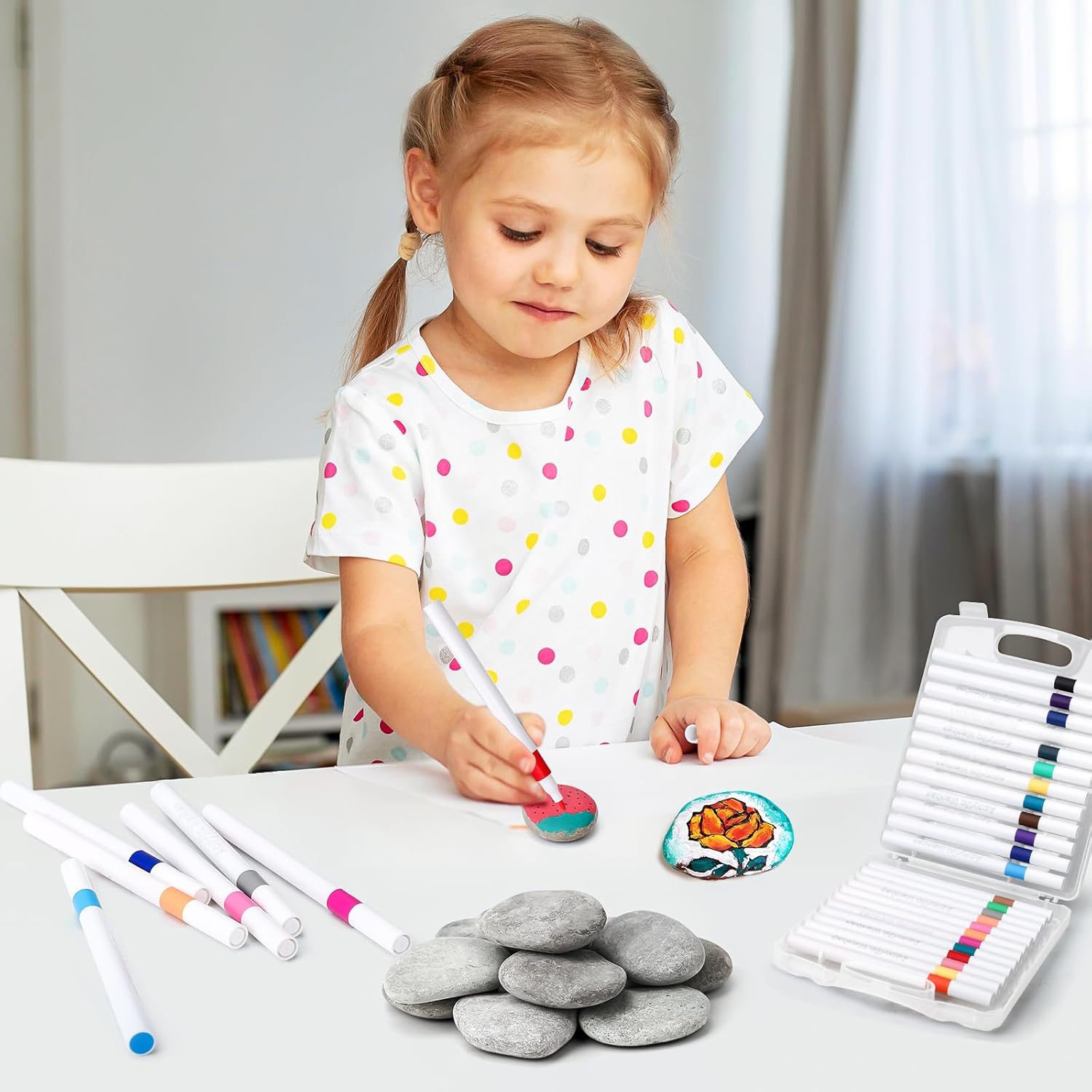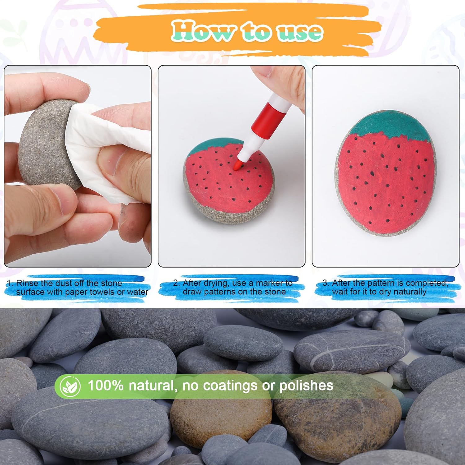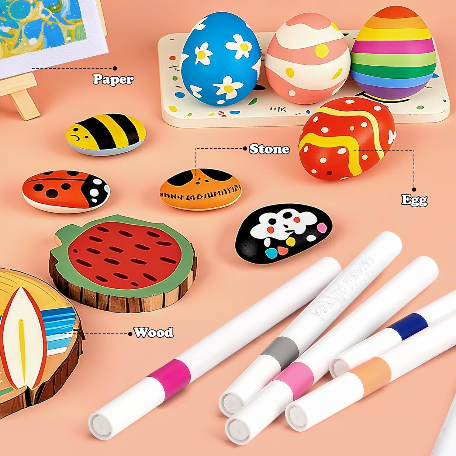 【Contenuto della confezione】: Questo set include 12 pezzi rocce naturali di disegno, da 3 a 5 cm, e 24 pezzi pennarelli acrilici per sassi. Questi pennarelli acrilici sono disponibili in 24 colori, sufficienti per l'uso quotidiano. (Nota: la superficie delle pietre naturali per dipingere potrebbe essere leggermente polverosa. Si consiglia di pulirla con un tovagliolo di carta o di risciacquarla e asciugarla prima dell'uso.) 【Kit fai da te perfetto】: I sassi piatti hanno una dimensione perfetta e sono dotati di 24 pezzi pennarelli per sassi, il che li rende perfetti per principianti ed artisti esperti. Un kit completo lo rende facile da usare. I ciottoli da pittura da 3-5 cm hanno una superficie piatta e liscia senza spigoli vivi, rendendoli ideali per la pittura. 【Facile da usare】: I pennarelli per disegno inclusi sono dotati di una comoda custodia. I pennarelli offrono un'eccellente copertura del colore con tonalità ricche e vivaci. Impermeabili, resistenti alla luce e ad asciugatura rapida, sono perfetti per creare opere d'arte di lunga durata su pietra, legno, ceramica, vetro, plastica, ecc. 【Materiali naturali】: I pietre da dipingere sono realizzati con vere pietre piatte. I pietre piatte per pittura che riceverete sono di forma ovale e hanno una superficie piana. Ogni pietre piatte per la pittura è naturale e unico. Il loro colore, forma e dimensione variano leggermente. Sono ciottoli perfetti per dipingere. 【Regalo ideale】: Che si tratti di una pausa creativa dalla vita quotidiana, di una pittura terapeutica o di un regalo speciale, questo set di dipingere sassi è perfetto. Questo set non solo offre divertimento, ma favorisce anche il relax. Questo set è perfetto come regalo di compleanno, regalo di Natale o come souvenir.