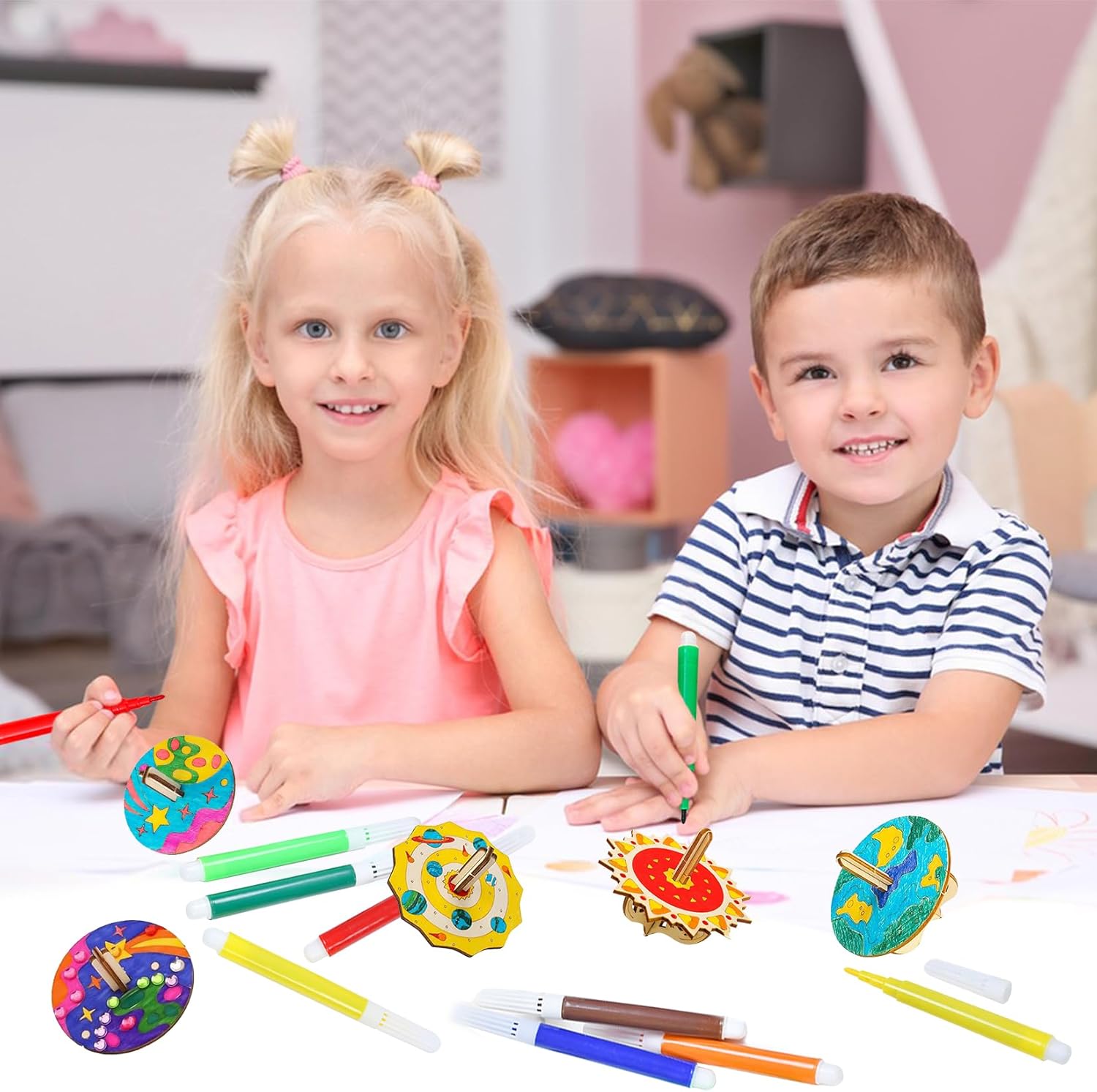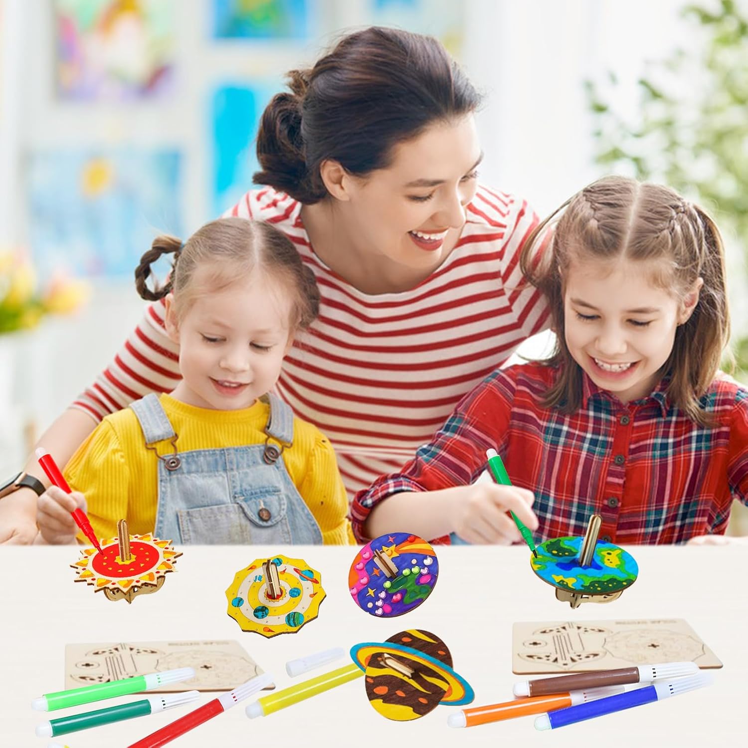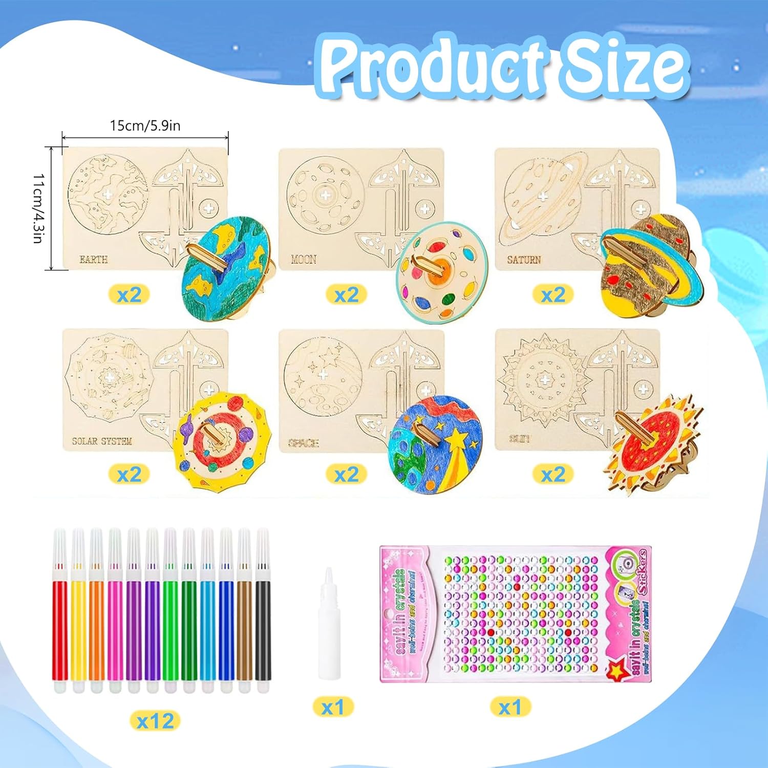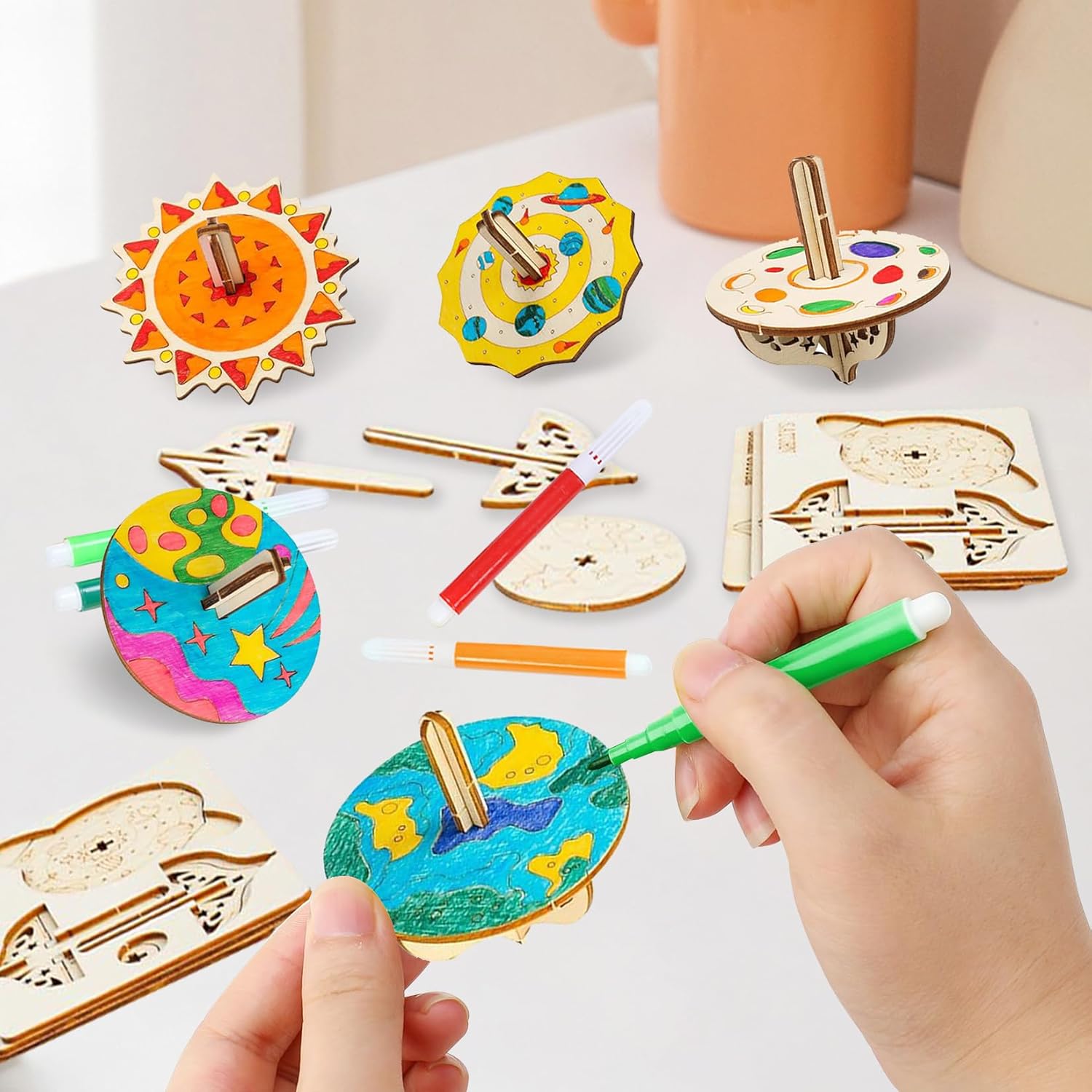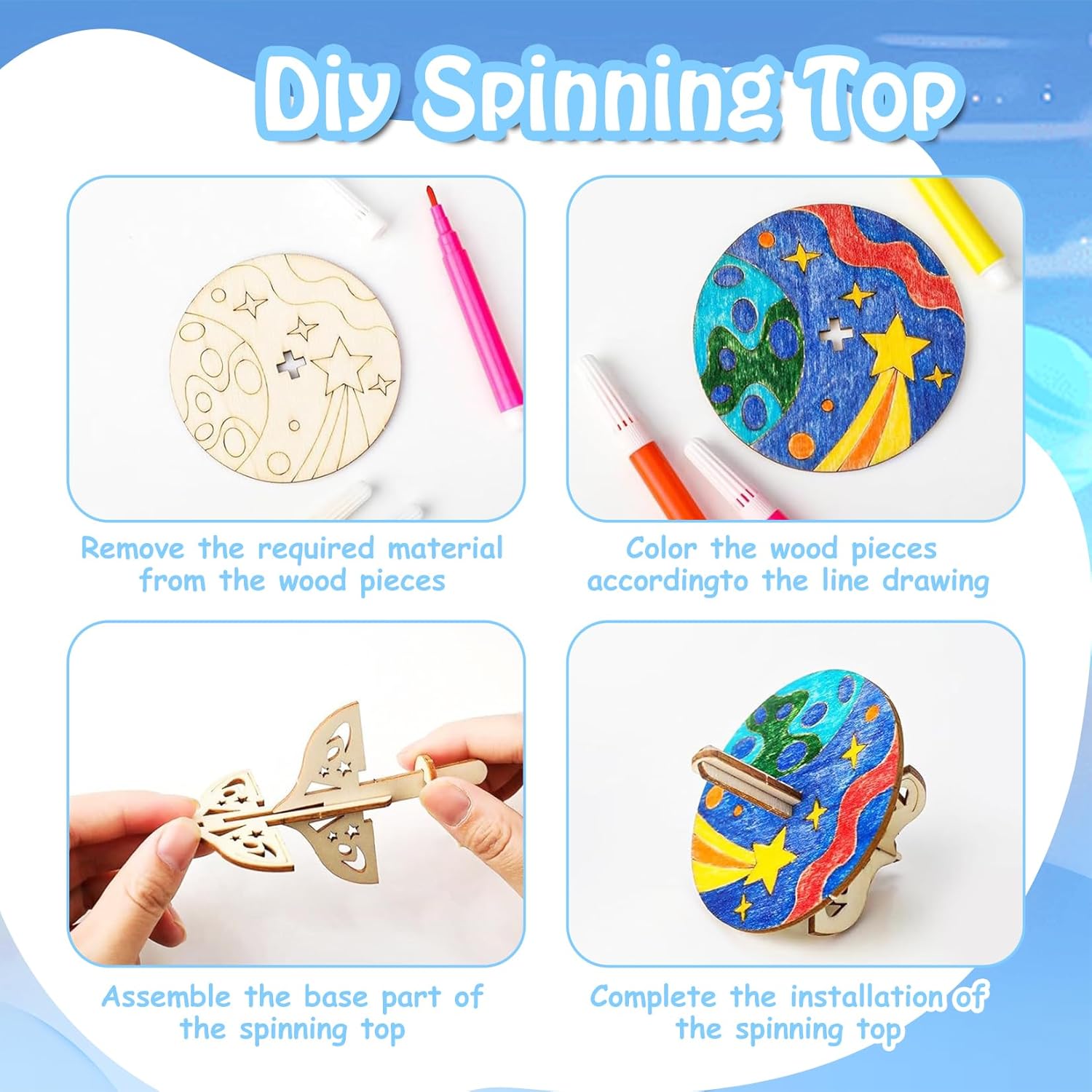 【Contenuto della confezione】La confezione include 12 giroscopio in legno in 6 stili diversi, 2 pezzi per stile, oltre a 12 penne colorate, 1 manuale e 1 adesivo a forma di diamante. I bambini possono non solo assemblare liberamente i giroscopi, ma anche partecipare a divertenti gare e attività mettendosi alla prova con i giroscopi 【Alta qualità】Il kit di bricolage è realizzato in legno di alta qualità, con una struttura solida, superfici lisce e piacevoli al tatto, che lo rendono sufficientemente robusto. Dopo aver completato la verniciatura, il giroscopio può essere utilizzato per giochi di rotazione, offrendo un'esperienza di intrattenimento ancora migliore 【Kit fai da te】Ogni giroscopio è intagliato con delicati motivi a linee, offrendo ai bambini abilità di disegno divertenti e stimolanti. I bambini possono usare la loro immaginazione per dipingere il giroscopio in legno con i loro motivi e colori preferiti, così come altre decorazioni. Così i bambini possono sperimentare infinite sfide e divertimento mentre creano 【Giochi interattivi】Questo giocattolo con trottola in legno offre alle famiglie tempo prezioso per attività condivise. Genitori e figli lavorano insieme per risolvere piccoli problemi di assemblaggio, godersi il divertimento della cooperazione e approfondire lo scambio emotivo tra genitori e figli 【Regalo perfetto】Questo set di lavoretti per bambini è perfetto per lavoretti in classe, spettacoli creativi per famiglie, lavoretti per feste e attività fai da te per bambini, ed è particolarmente adatto per allenare le capacità manuali e la percezione del colore dei bambini