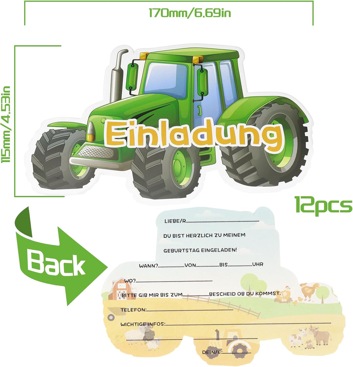 【Cartoline di invito al compleanno dei ragazzi】: Contiene 12 invito compleanno bambino al trattore tedesco, dimensioni del biglietto di invito alla festa: 17,5* 15,3 cm. 【Design a tema trattore】: I biglietti di invito alla festa presentano simpatici trattori come elemento principale del biglietto di invito, aggiungendo un tocco vivace e allegro. 【Materiali di alta qualità】: i nostri bellissimi biglietti d'invito al trattore sono realizzati con carta riciclata di alta qualità e una speciale tecnologia di stampa. La carta è particolarmente resistente, non si sgualcisce facilmente e la stampa è chiara. 【Facili da compilare】: per evitare che i bambini si confondano tra le informazioni sulla festa, i biglietti d'invito per trattori offrono campi adatti a visualizzare le informazioni. In questo modo, le informazioni sulle parti coinvolte possono essere comunicate chiaramente per evitare malintesi. Con questi biglietti d'invito per feste, i giovani ospiti aumenteranno sicuramente le loro aspettative per la festa. 【Diversi】:Che si tratti di biglietti inviti compleanno bambini per bambini, feste in giardino, feste in piscina, feste a tema, feste estive o feste per bambini, i biglietti d'invito per trattori sono la prima scelta per invitare tutti i giovani ospiti alle feste.