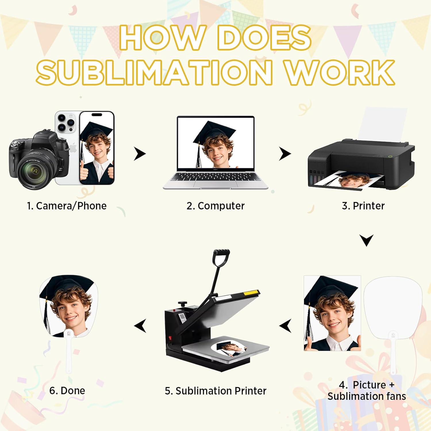 12 scomparti per foto a testa grande, stampabili su entrambi i lati, con manico rimovibile, scomparti personalizzati per matrimoni, compleanni e lauree