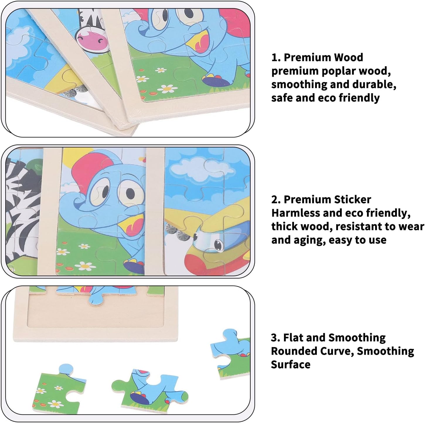 Riconoscimento del colore: questi mattoncini riconoscono il colore e la forma e stimolano la creatività, l'immaginazione e la sensazione di spazio. Perfetto : questi puzzle di animali faranno una grande sorpresa per la tua famiglia e gli amici, piccoli per compleanni, vacanze, Natale. Adattamento della mano e degli occhi: questi puzzle in legno aiutano a sviluppare pazienza e concentrazione, oltre a migliorare l'adattamento e la memoria della mano e degli occhi. Puzzle educativo: questi indovinelli per bambini sono progettati per portare bambini e bambini a riconoscere gli animali e i loro stili di vita mentre ridono e si divertono. Liscio del legno: questi puzzle in legno utilizzano materiali in legno di pioppo di alta qualità, che levigano e sono durevoli, sicuri ed ecologici.