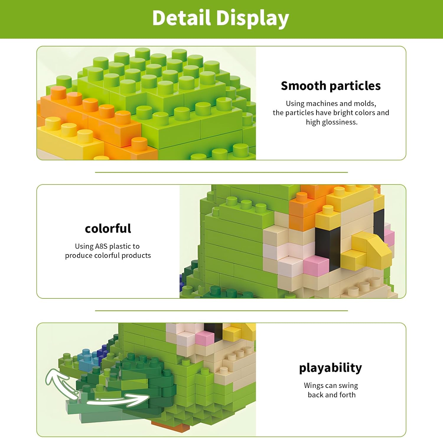 Un vibrante mondo di uccelli, creatività illimitata: benvenuti nel mondo dei nostri mini blocchi di uccelli. Questo set comprende 12 scatole di modelli di uccelli unici, ogni scatola presenta un colore diverso che rappresenta una diversa specie di uccelli. Dai vivaci rossi, gialli e verdi, ai rilassanti blu e viola, marroni naturali, bianchi puri e rosa tenui, ogni colore indica uno stato d'animo e una personalità, consentendo ai bambini di sentire la vivacità e l'energia degli uccelli mentre costruiscono e giocano. Questo set di blocchi non solo stimola l'immaginazione e la creatività dei bambini, ma li aiuta anche a conoscere i colori e gli animali. L'artigianato incontra la sicurezza, accompagnando la crescita gioiosa dei bambini: i nostri mini blocchi per uccelli sono realizzati in plastica colorata di alta qualità, con parti ben adattate che rimangono sicure durante il gioco, garantendo la sicurezza dei bambini. Perfetto per i bambini dai 6 anni in su, questo set di blocchi funge sia da giocattolo per il divertimento della famiglia che da strumento educativo negli asili e nelle scuole, accompagnando i bambini attraverso un'infanzia felice e significativa. Confezione regalo squisita: una confezione regalo squisita può esprimere perfettamente i tuoi sentimenti e le tue benedizioni, sia come regalo di compleanno che come regalo a sorpresa per le vacanze. Il design della confezione regalo è semplice ma elegante, rendendola indimenticabile al primo sguardo e dimostrando pienamente il suo intento. La sfida dei blocchi costitutivi delle microparticelle: questo prodotto adotta il design dei blocchi costitutivi delle microparticelle, con dimensioni delle particelle più piccole rispetto ai normali blocchi costitutivi, il che aumenta la difficoltà di giunzione. È molto adatto per i giocatori che amano le sfide e cercano l'eccitazione. Durante il processo di giunzione, non solo puoi esercitare pazienza e attenzione, ma anche ottenere un senso di completa realizzazione dopo il completamento. Servizio post-vendita soddisfacente: i nostri elementi costitutivi hanno superato sia l'ispezione intelligente della macchina che l'ispezione manuale per garantire il conteggio completo delle particelle degli accessori. Se il tuo set è ancora danneggiato o mancante, contattaci. Ti invieremo le parti smarrite il prima possibile.