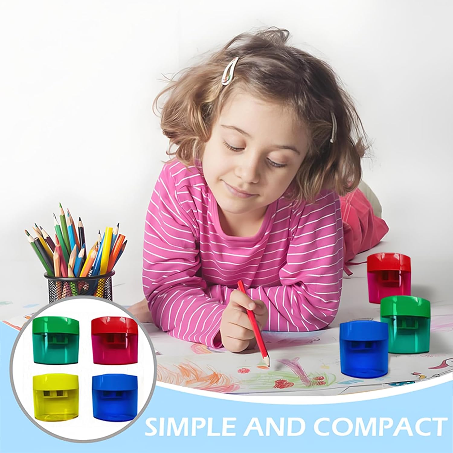 1, materiali premium, durevole: questo temperamatite manuale è realizzato in plastica trasparente di alta qualità e una lama in acciaio ad alto tenore di carbonio per una nitidezza duratura. La sua costruzione robusta garantisce la sua durata, rendendolo una scelta ideale per l'affilatura quotidiana 2, design a doppio foro: questo temperamatite portatile colorato compatto a doppio foro presenta un design a doppio foro per affilare matite di vari spessori. Disponibili in rosa, verde, blu e giallo, questi colori vivaci suscitano interesse e migliorano il comfort di scrittura 3, compatto e portatile: questo temperamatite portatile è compatto e leggero, che lo rende facile da portare in giro in una borsa o in una tasca. È un must per l'aula, i viaggi o le attività all'aperto 4, perfettamente progettato per la conservazione conveniente: questo temperamatite con coperchio è dotato di una custodia per la rasatura trasparente per evitare problemi e facilitare la pulizia. La custodia trasparente consente di monitorare il processo di affilatura senza danneggiare la matita. Questo affila portatile affidabile è ideale per studenti e professionisti, garantendo uno spazio di lavoro pulito e organizzato 5, ampie applicazioni: questo temperamatite colorato è adatto a scuola, ufficio, progetti artistici e casa, rendendolo uno strumento indispensabile per studenti, insegnanti e professionisti
