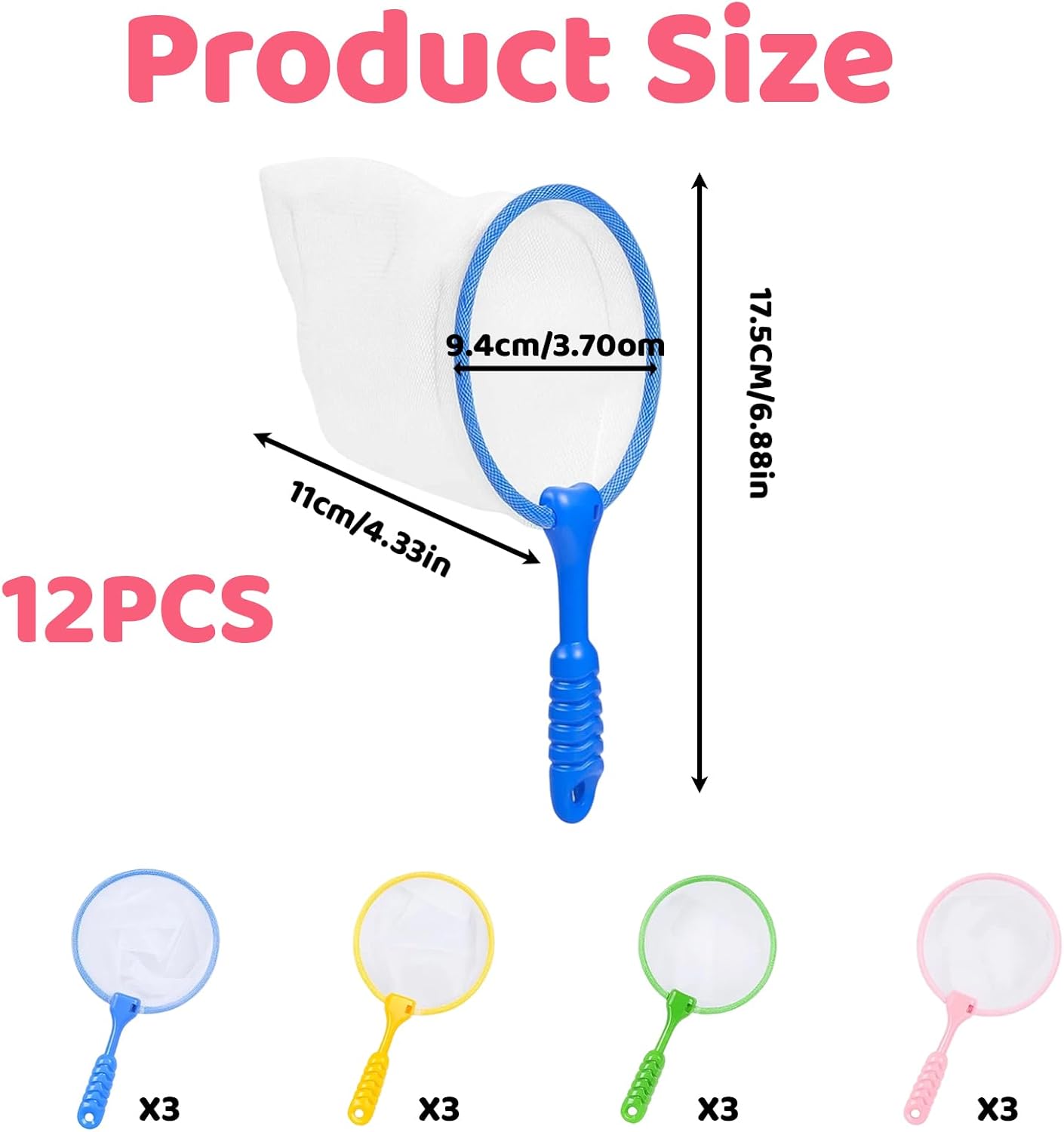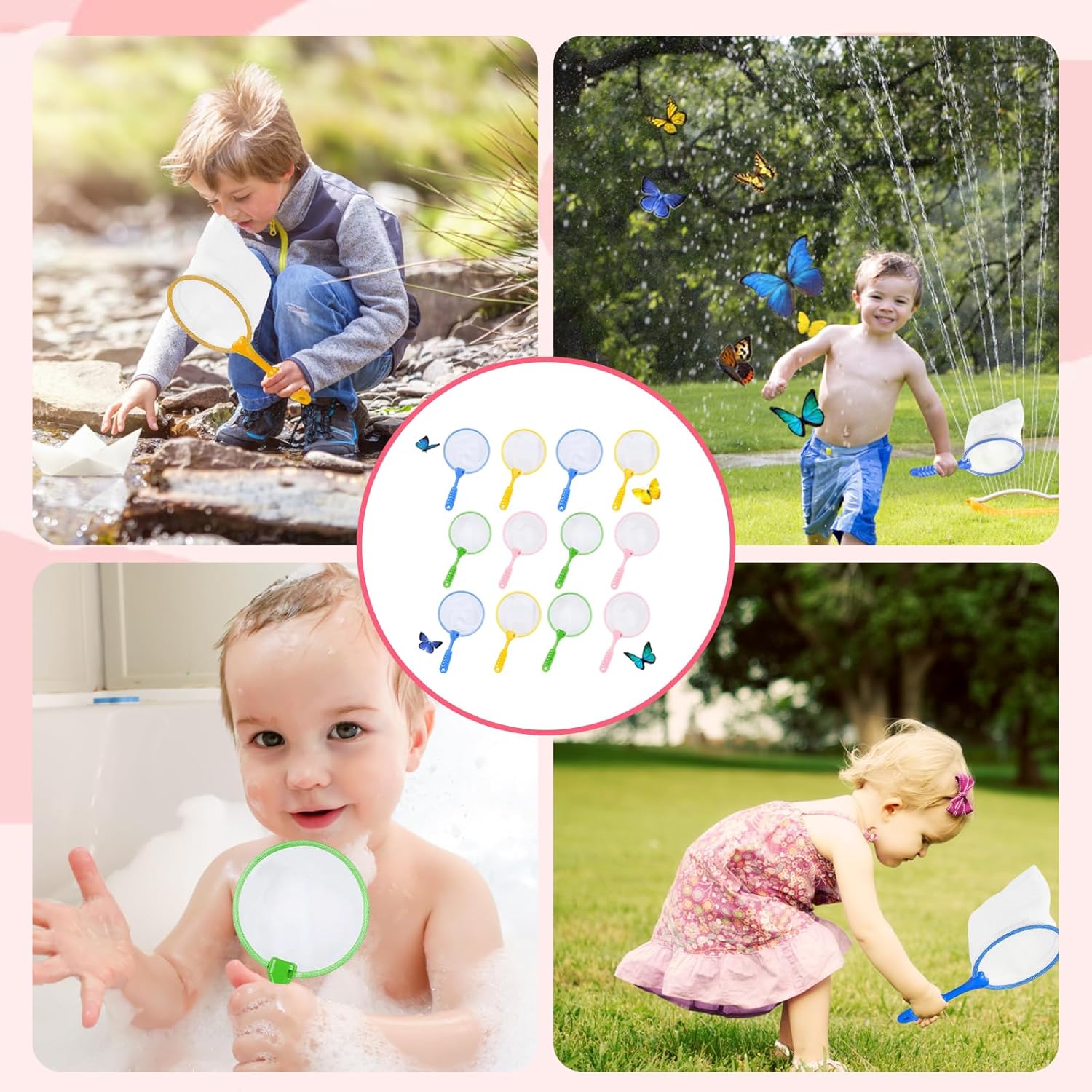 【Retino per bambini】: 12 reti da pesca di alta qualità per bambini, ideali per attività all'aria aperta come la cattura di farfalle e piccoli pesci; i colori vivaci verde, blu, rosa e giallo rendono ogni avventura più emozionante 【Rete a farfalla】: appositamente progettata per le mani dei bambini, leggera e facile da maneggiare; perfetta per giardino, spiaggia o laghetto per esplorare la natura 【Rete da pesca per bambini】: ideale per giochi sensoriali e sviluppo motorio; favorisce la coordinazione occhio-mano e la curiosità nei bambini dai 3 ai 12 anni 【Guadino per bambini】: sicuro e durevole per ore di divertimento; le reti sono realizzate in materiale robusto per resistere all'uso frequente 【Retino acqua per bambini】: versatile per diverse attività come il bagno, giochi in spiaggia o osservazione degli insetti; consente ai bambini di scoprire la natura in modo giocoso