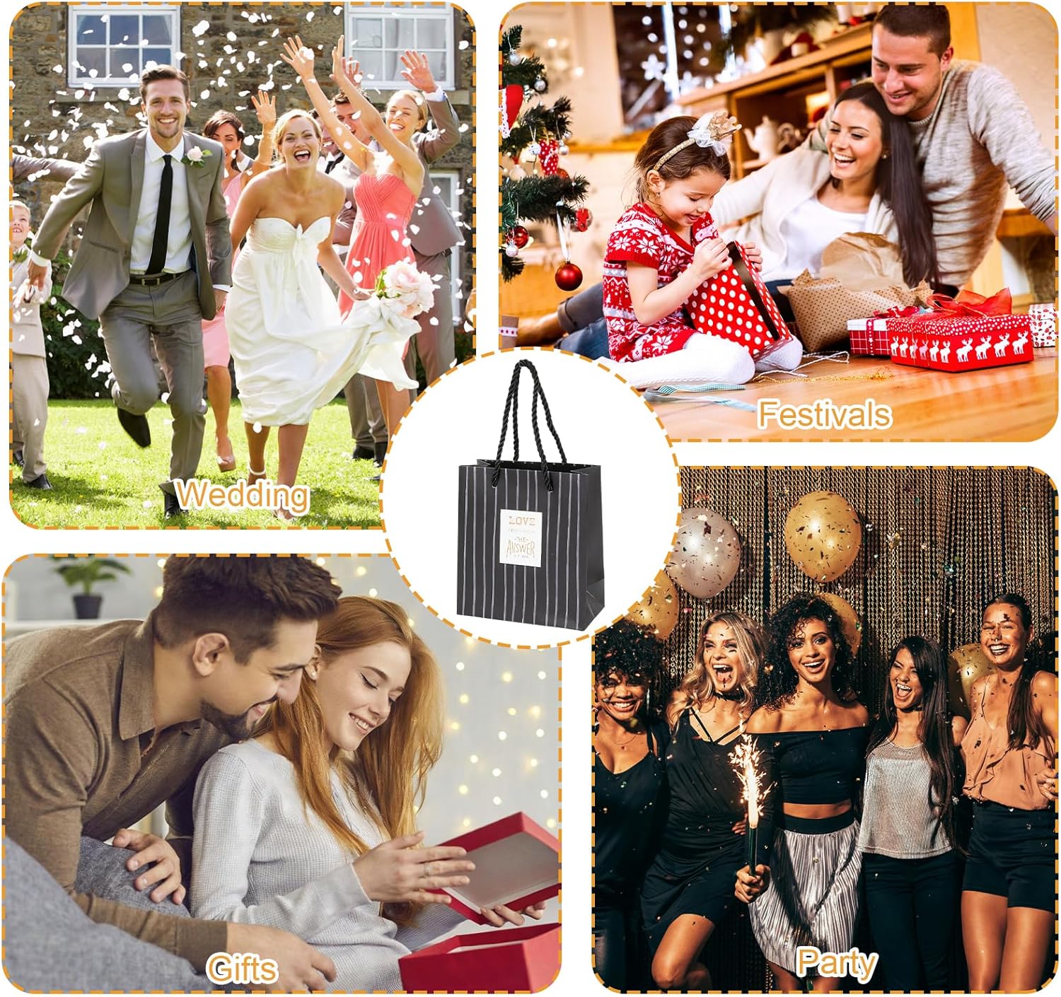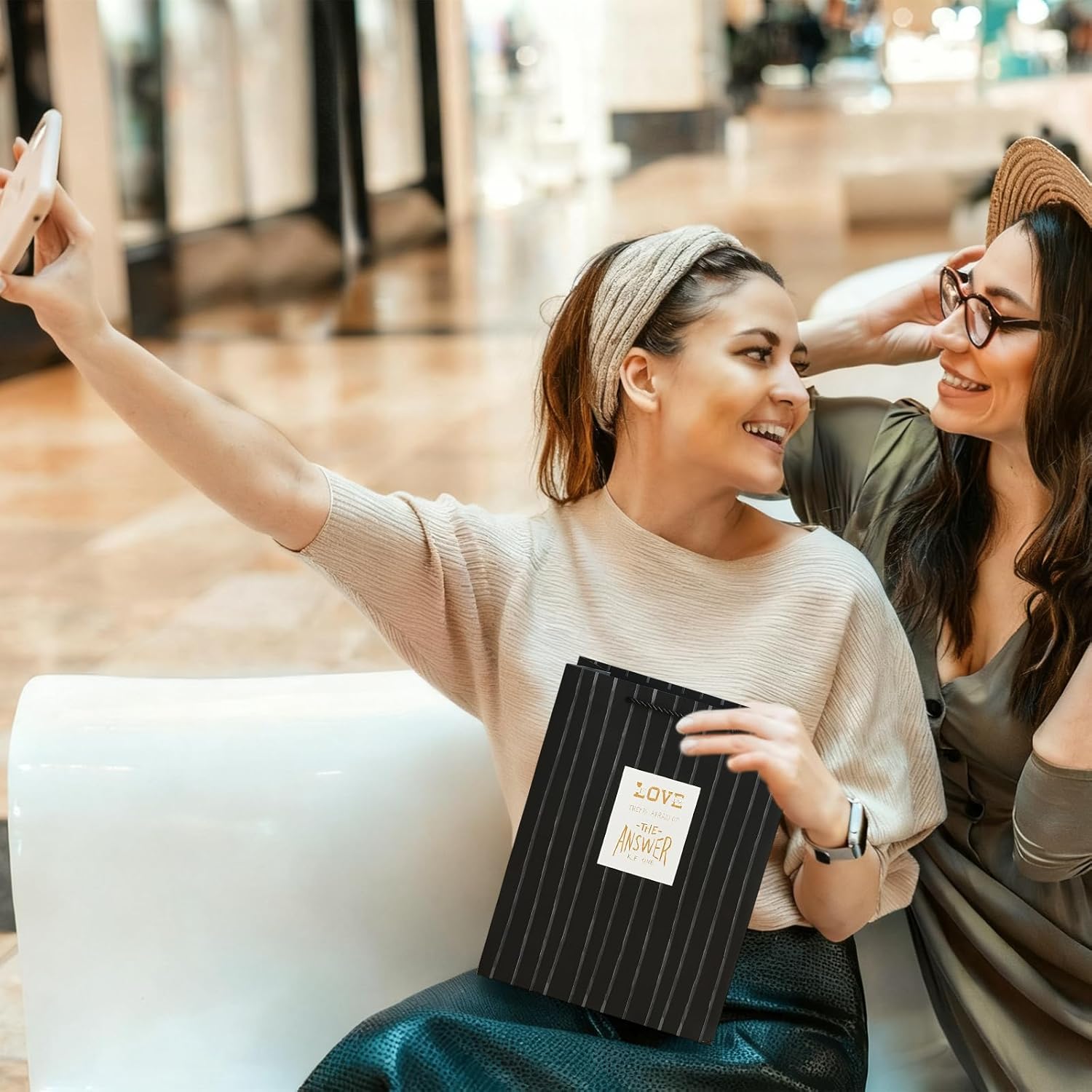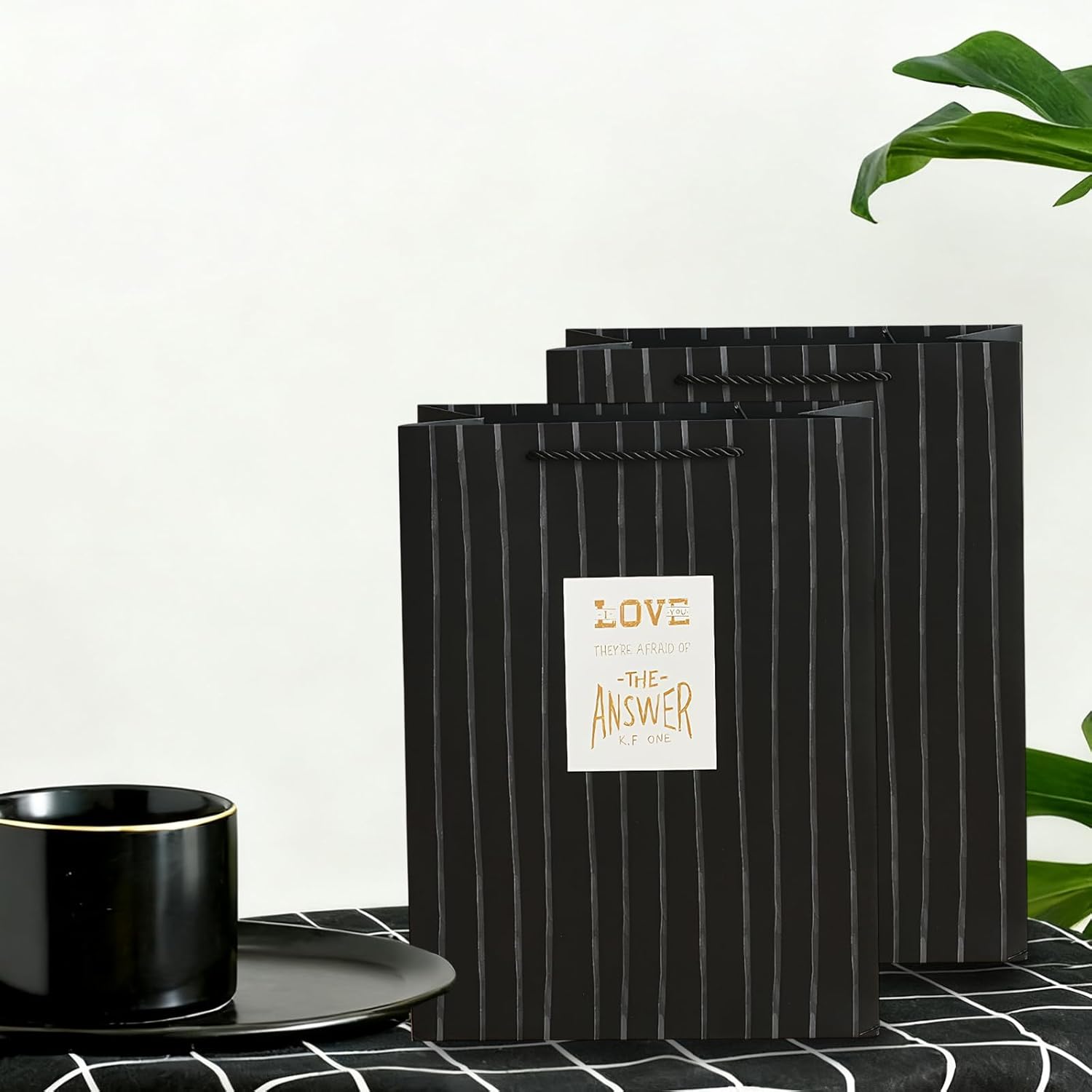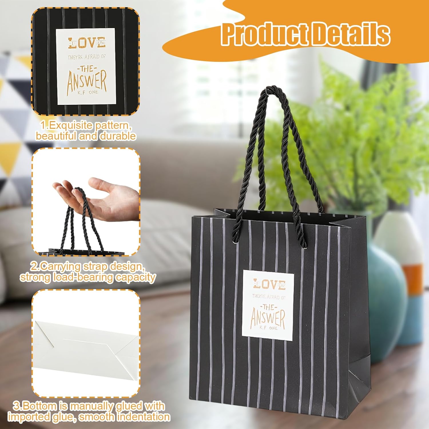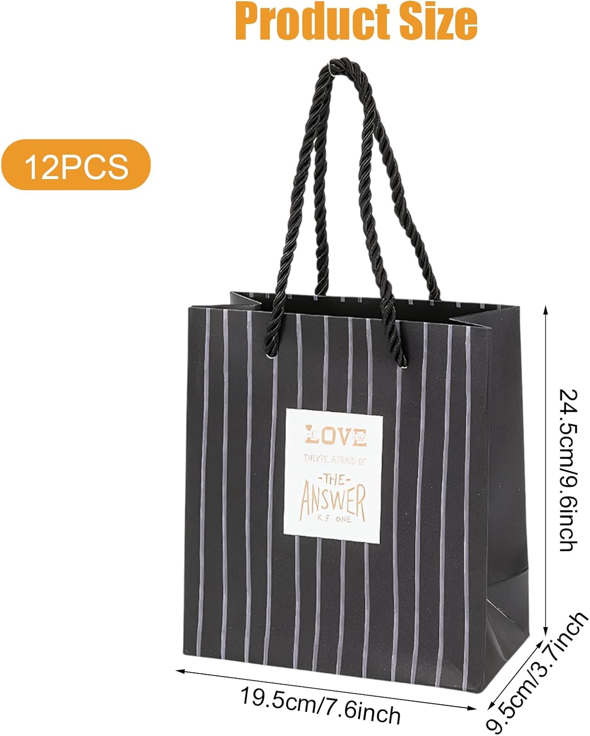 Materiali di alta qualità: la borsa regalo è realizzata con materiali di alta qualità, rispettosi dell'ambiente e realizzata con cura. Questo lo rende non solo bello ma anche eccezionalmente resistente. Anche in ambienti umidi, la borsa regalo conserva la sua stabilità strutturale originale e garantisce che la confezione regalo duri per sempre. Maniglie portatili: ogni borsa regalo di compleanno è dotata di una maniglia robusta e facile da trasportare. Le maniglie ben progettate facilitano il trasporto di regali di peso diverso. Che si tratti di regali leggeri, piccoli o di scatole regalo più pesanti, i sacchetti regalo di compleanno offrono una tenuta stabile. Dimensioni del prodotto: la borsa regalo misura 19,5 x 9,5 x 24,5 cm, rendendola adatta a tutto, dai piccoli lavori manuali ai libri e ai giocattoli. Che si tratti del compleanno di un bambino, del compleanno di un amico o del giorno speciale di un membro della famiglia, la borsa di compleanno è la scelta perfetta. Design raffinato: il design unico e creativo della borsa regalo nera presenta motivi vivaci e artistici che aggiungono un tocco elegante al tuo regalo. Il fondo del sacchetto regalo nero è incollato a mano con colla importata, risultando in rientranze lisce e un design bellissimo e duraturo! Versatile: i sacchetti regalo sono adatti per diverse occasioni, sia nella vita di tutti i giorni, durante lo shopping o per confezionare regali. A casa, in ufficio o al centro commerciale, la confezione regalo di compleanno bella e resistente mostra la vostra attenzione e il vostro gusto.
