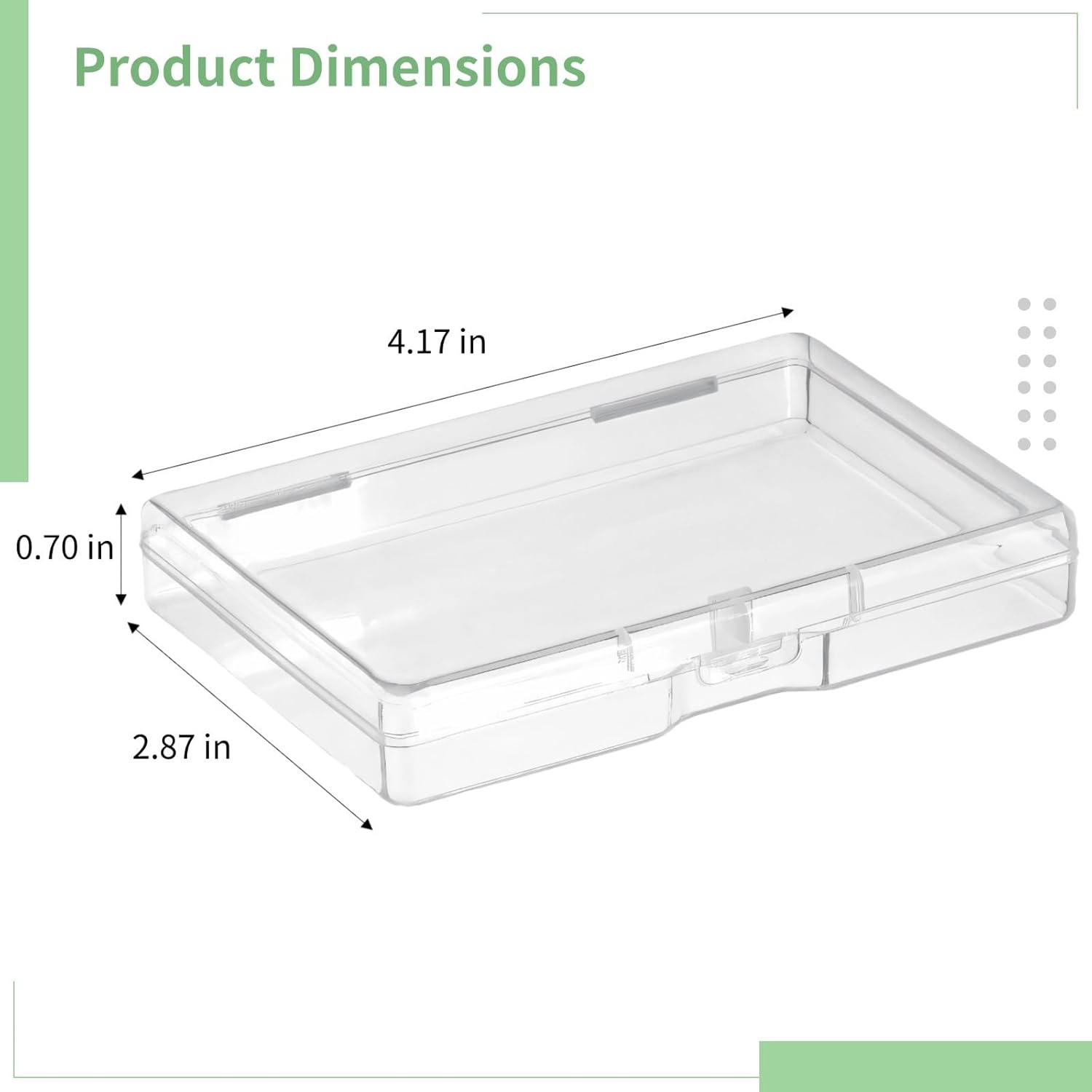Grandi dimensioni per carte standard: ogni scatola misura 10,7 x 7,4 x 1,8 cm, realizzata appositamente per contenere saldamente carte da gioco standard, carte collezionabili o biglietti da visita, ideale per gli amanti dei giochi di carte e professionisti Design sicuro con chiusura a scatto: con una funzione di chiusura a scatto, queste scatole garantiscono che le tue carte o piccoli oggetti rimangano al sicuro, garantendo sicurezza durante il trasporto o la conservazione Materiali trasparenti di qualità: realizzate in resistente plastica PP, queste scatole sono trasparenti e durevoli, consentendo una facile visibilità del contenuto fornendo una robusta protezione contro l'usura Compatto e impilabile: il design sottile consente un impilamento senza problemi e una conservazione efficiente in cassetti o scaffali, mantenendo la tua area di gioco o ufficio pulita senza occupare troppo spazio Conservazione multifunzionale: queste scatole trasparenti non sono solo per carte; possono anche riporre efficacemente gioielli, forniture per ufficio come graffette o note adesive e altri piccoli oggetti, fornendo una soluzione organizzativa versatile per varie impostazioni