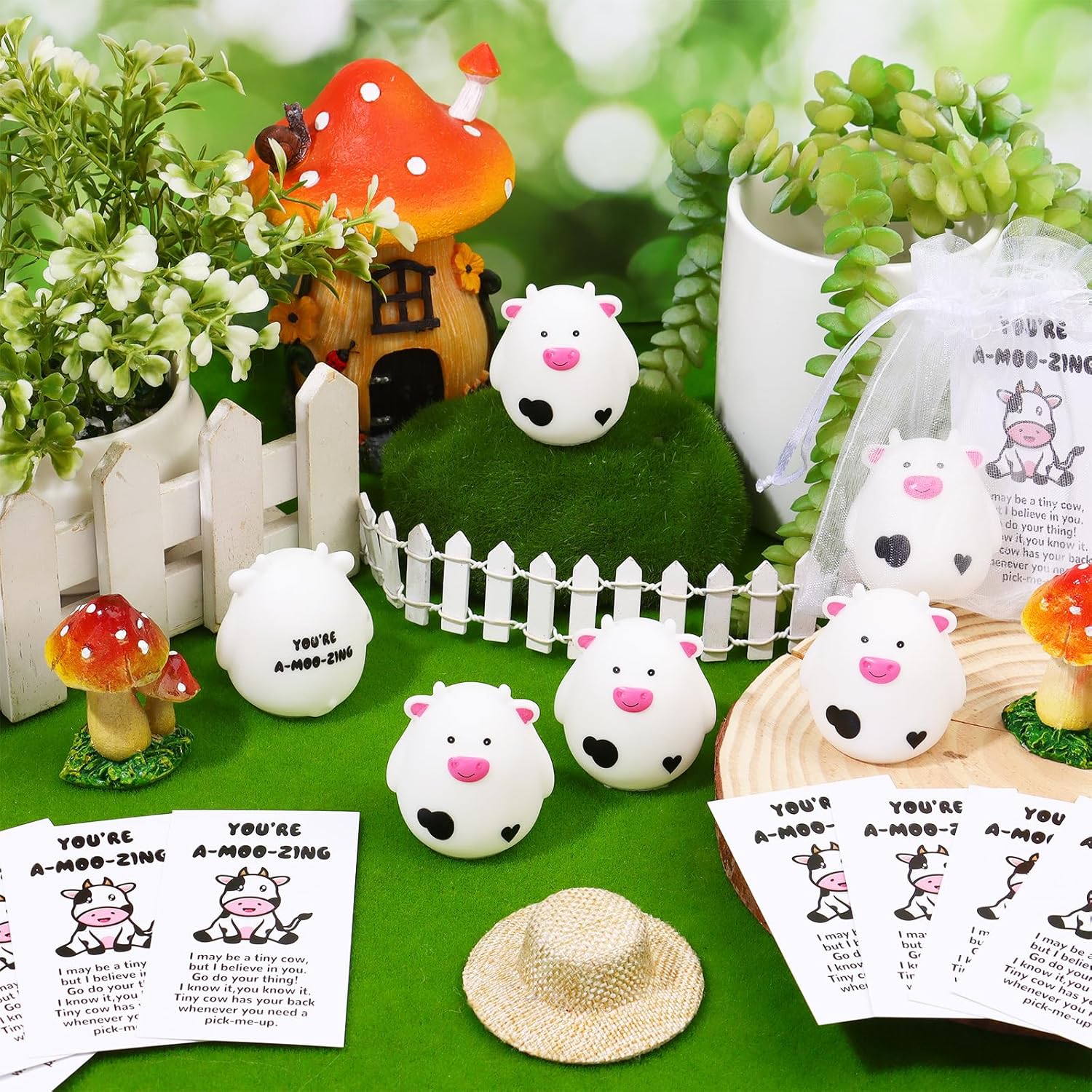 La confezione include: Riceverai 30 set di regali di apprezzamento per i dipendenti che includono 12 mucche di gomma, 12 biglietti di ispirazione Youre A-moo-zing e 12 sacchetti di organza. Combinazione squisita, collocazione attenta, è la scelta perfetta per regali per bambini, attività di festa.,Materiale sicuro e durevole: queste mini mucche sono realizzate in materiale di resina di alta qualità, ideale per neonati e bambini. Le mucche di gomma sono materiali ecologici che possono resistere alla compressione, al galleggiamento e all'uso ripetuto senza usurarsi. Design unico: ogni giocattolo cigolante per il bagno della mucca galleggiante emette un leggero cigolio quando viene schiacciato per deliziare i bambini! I loro corpi cavi li mantengono galleggianti e trasformano il momento del bagno in un'avventura divertente, come una mucca che galleggia sull'acqua - ideale per stimolare l'immaginazione e le capacità motorie. Regali multifunzionali: oltre al bagno, queste mucche possono essere regalate a familiari, amici, colleghi, insegnanti, studenti, volontari, servono anche come regalo per la festa degli insegnanti, il giorno del ringraziamento, la laurea, la settimana degli infermieri, la fine dell'anno scolastico, i compleanni o i giocattoli sensoriali ecc. Il set regalo si rivolge ai genitori che cercano un giocattolo per piatto doccia che sia unisce sicurezza, educazione e risate, garantendoti di ricevere recensioni perfette! Porta preferenze per feste a tema divertenti e senza fine: ogni bomboniera per mucca è sigillata e confezionata in modo indipendente, che può essere utilizzata come regalo per una festa di compleanno o come supporto didattico per la prima educazione per creare attività genitore-figlio carine e felici con un tema felice