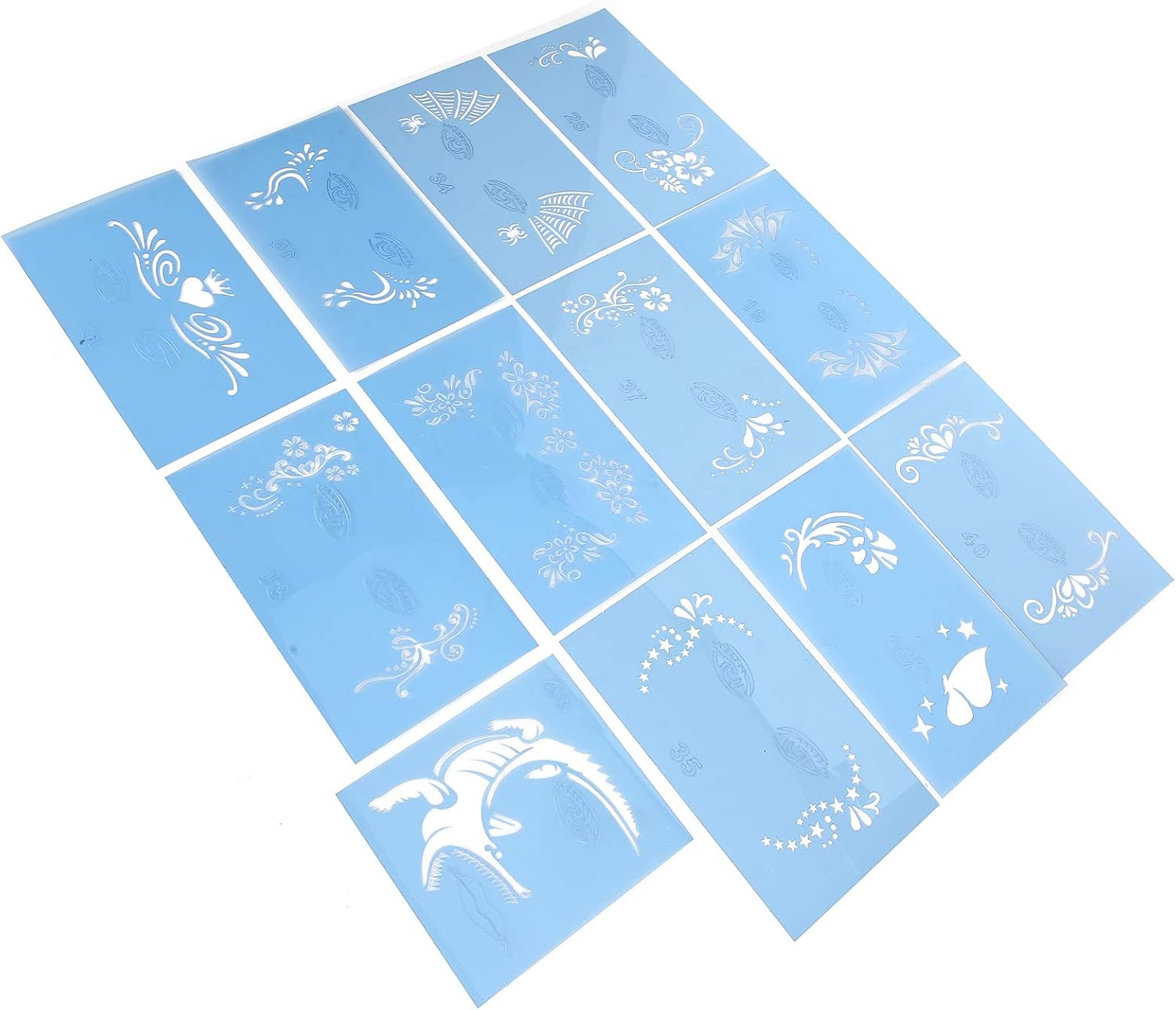 VERNICI PER IL CORPO PER ADULTI - DAI PIENO GIOCO ALL'IMMAGINAZIONE: Ogni modello ha un modello specifico, quindi può essere utilizzato da solo o in combinazione con altri modelli di pittura per il viso per creare un design di trucco unico. Può stimolare l'immaginazione e la creatività dei bambini. Può soddisfare le tue esigenze per creare modelli diversi sul tuo viso o corpo. MODELLI PER TATUAGGIO TRUCCO VISO - ADATTI A TUTTI I TIPI DI PELLE: realizzati in materiale PET di alta qualità, sicuro ed ecologico, stabile e durevole. Ipoallergenico, adatto per corpo e viso, adatto a bambini e adulti con pelle sensibile, naturale e non irrita la pelle. STENCIL PER LA PITTURA DEL VISO E DEL CORPO - UN MUST PER I PRINCIPIANTI: sono disponibili 12 fogli di stencil per la pittura del viso, sufficienti per soddisfare le tue esigenze di trucco del viso fai-da-te. Un kit per il trucco del viso per principianti, molto adatto a bambini e adulti. Anche se non hai alcuna esperienza con la pittura del viso, scegli semplicemente un modello, dipingi con il tuo colore preferito e otterrai un eccellente dipinto del viso che ti piace soprattutto. STENCIL PER VERNICE PER IL VISO - FACILE DA PULIRE: è completamente a base d'acqua. Non preoccuparti di macchiarti le mani o i vestiti durante l'uso. Lavare la superficie con acqua calda e sapone per rendere la pasta superficiale, quindi applicarla uniformemente sulla superficie della pelle. È facile da pulire e non macchia la pelle dopo l'uso. Lo stencil per il trucco è completamente riutilizzabile. Puoi utilizzare gli stencil su VERNICE PER IL VISO DI HALLOWEEN PER BAMBINI - AMPIA GAMMA DI APPLICAZIONI: Utilizzato per disegnare modelli di pittura per il viso con vari motivi, fiori, farfalle, ecc., donando disegni unici e belli a viso e corpo. È adatto per giochi di ruolo. Feste in costume, ecc. Può essere utilizzato per Natale e Halloween, Pasqua, Ringraziamento e feste di compleanno per bambini. Giochi più felice e ti trucchi tutto il giorno senza irritazioni