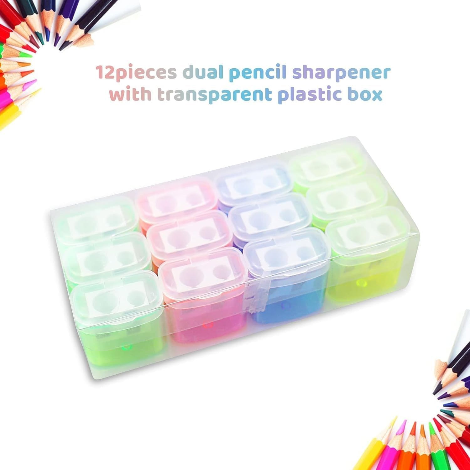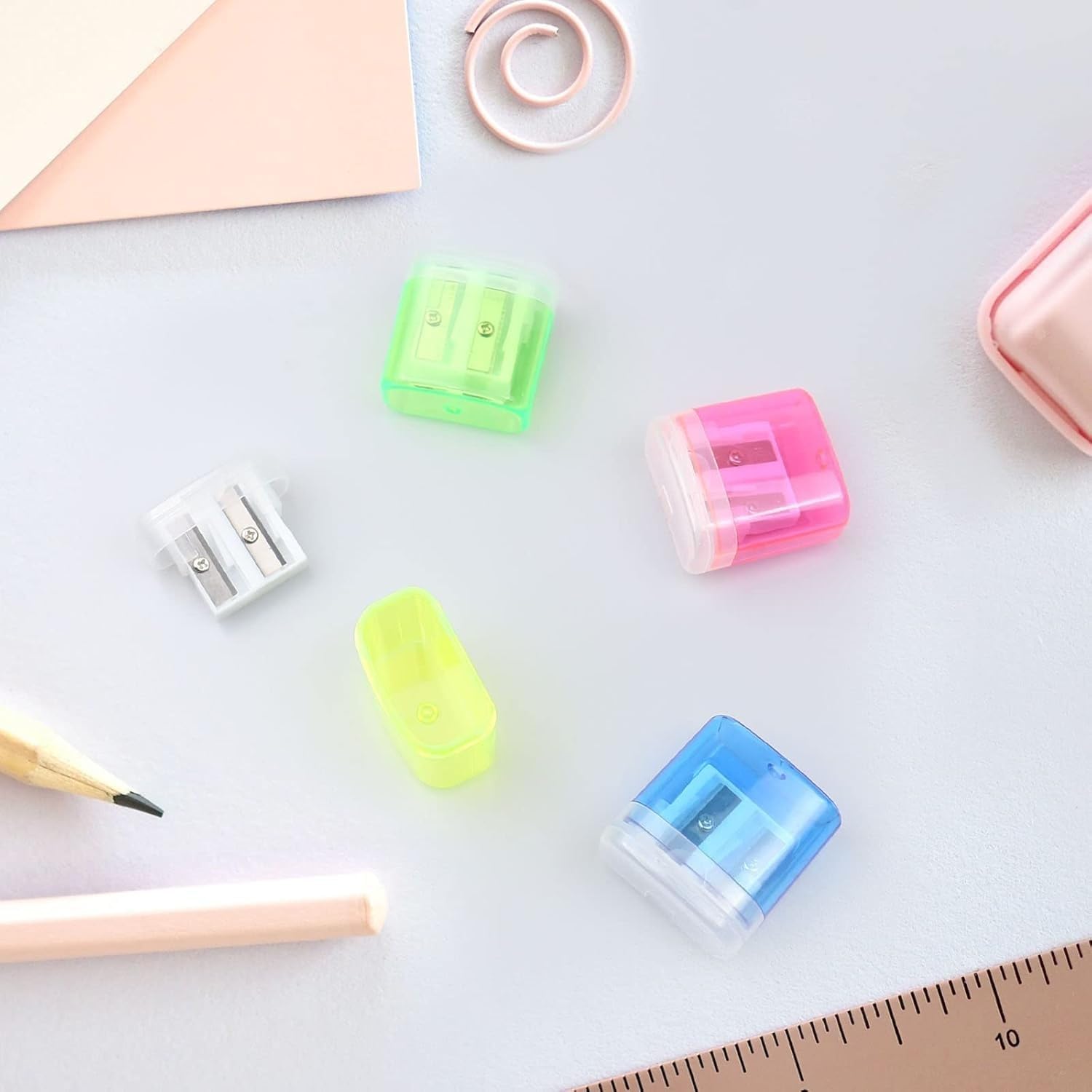 Doppia affilatura: ogni temperamatite compatto è dotato di due fori per affilare entrambi i lati delle matite fino a una punta fine. Collezione colorata: ottieni un set assortito di 8 temperamatite in una varietà di 4 colori per abbinarsi a qualsiasi arredamento di aula o ufficio. Comodo da Trasportare: i piccoli affilatoi portatili sono dotati di coperchi per raccogliere facilmente i trucioli e consentire un trasporto senza disordine. Costruiti per durare: costruiti in plastica resistente, questi affilatori sono progettati per l'affilatura di grandi volumi in ambienti scolastici e lavorativi affollati. Pacchetto valore: con questa confezione da 8, c'è un temperino per ogni studente o collega pur rimanendo nel budget.