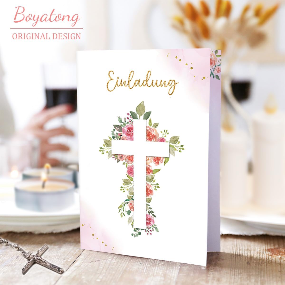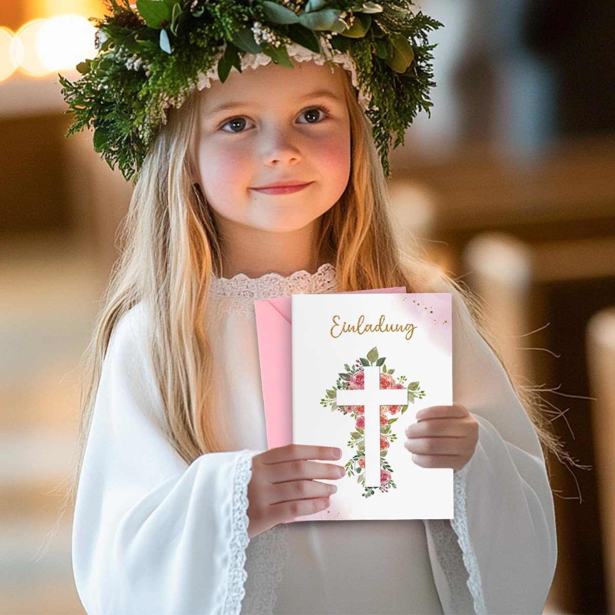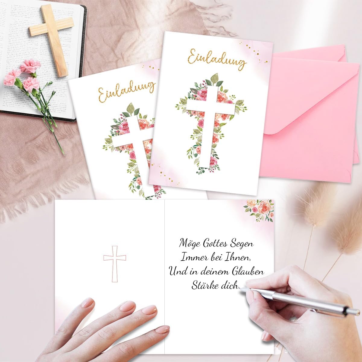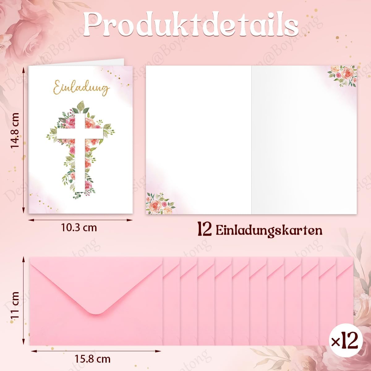 Contenuto della confezione: 12 biglietti d'invito eleganti e sacri, 12 buste rosa, adatte per battesimo, comunione, cresima, un set per soddisfare le esigenze di diverse scene Design intelligente: un biglietto d'invito semplice ed elegante con un bel motivo e una stampa chiara, con un design all'interno e molto spazio per scrivere Alta qualità: realizzata in cartone di alta qualità, la carta è liscia, spessa e pesante, e siamo anche dotati di buste, un ottimo set di biglietti d'invito che attira l'attenzione su di sé Dimensioni: 14,8 x 10,3 cm Ampio utilizzo: design semplice e intelligente, che invita a battesimo, comunione, cresima