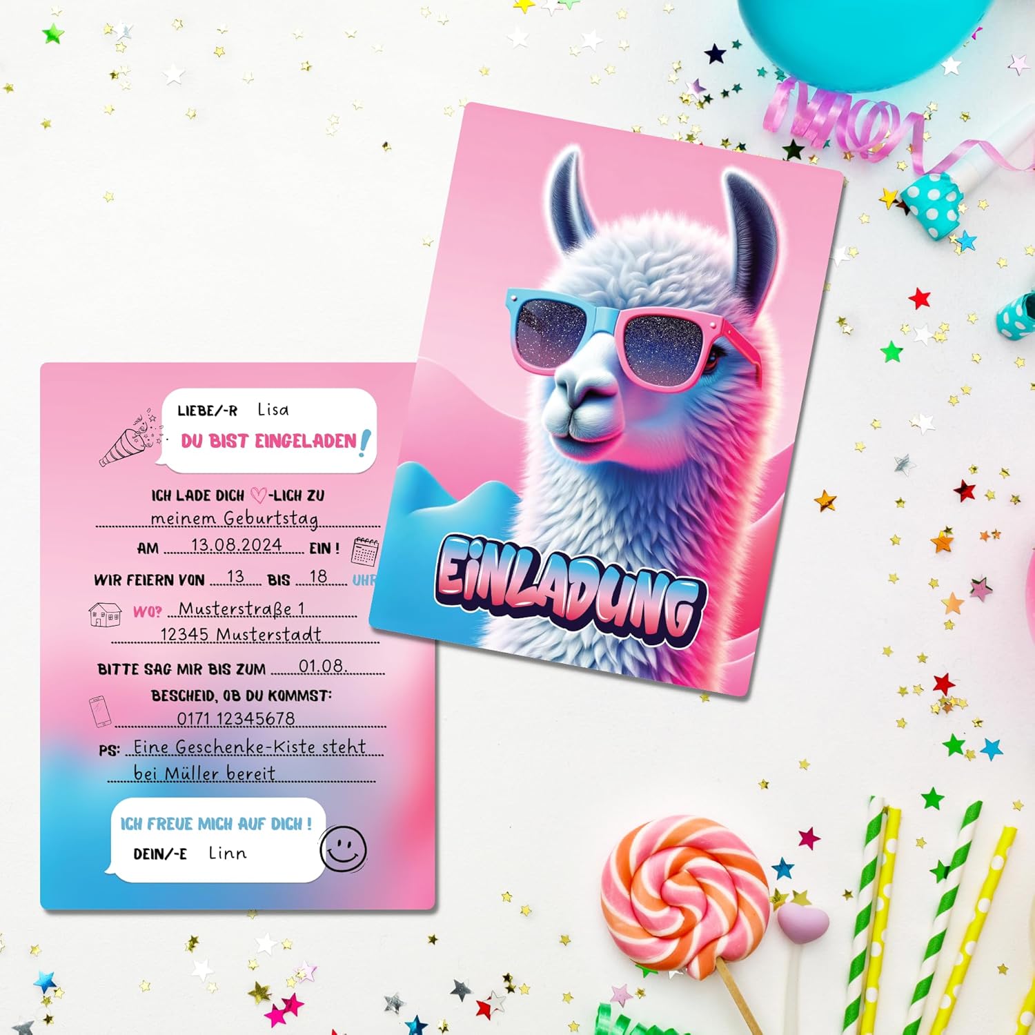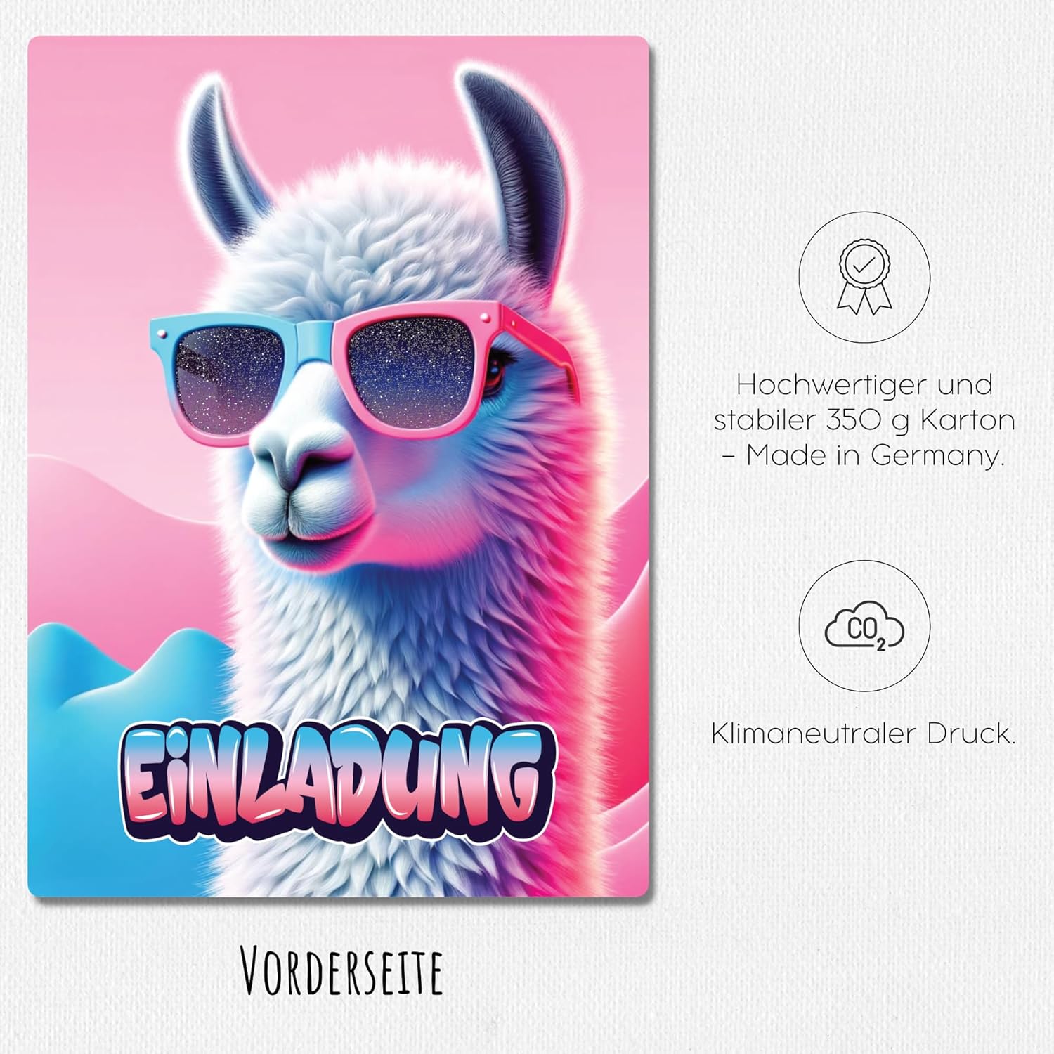 COMPILAZIONE VELOCE E INTUITIVA attraverso campi prefabbricati per tutte le informazioni pertinenti. Un campo aggiuntivo offre anche spazio per importanti informazioni aggiuntive come auguri o simili. Occhi dei bambini brillanti: i biglietti d'invito con angoli arrotondati e motivo lama sono una vera attrazione, con i quali farete piacere al vostro bambino Stampa a clima di alta qualità: i biglietti sono realizzati in Germania e sono realizzati in cartone extra forte da 350 g. Le parti posteriori sono opache e meglio scrivibili con una penna a sfera. Il formato perfetto: gli inviti in formato DIN A6 (14,8 x 10,5 cm) offrono spazio per tutte le informazioni importanti. Riceverai buste bianche, così le tue carte rimangono protette e possono anche essere spedite. Versatile: ovviamente, oltre ai compleanni dei bambini, i biglietti possono essere utilizzati anche per altre occasioni, come ad esempio battesimi, baby shower, feste per bambini, inizio della scuola, ecc.