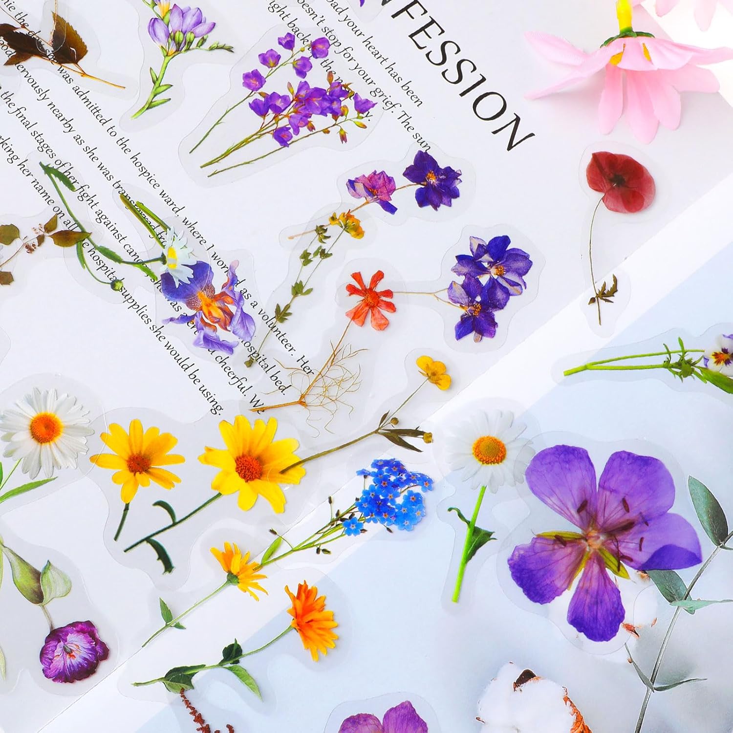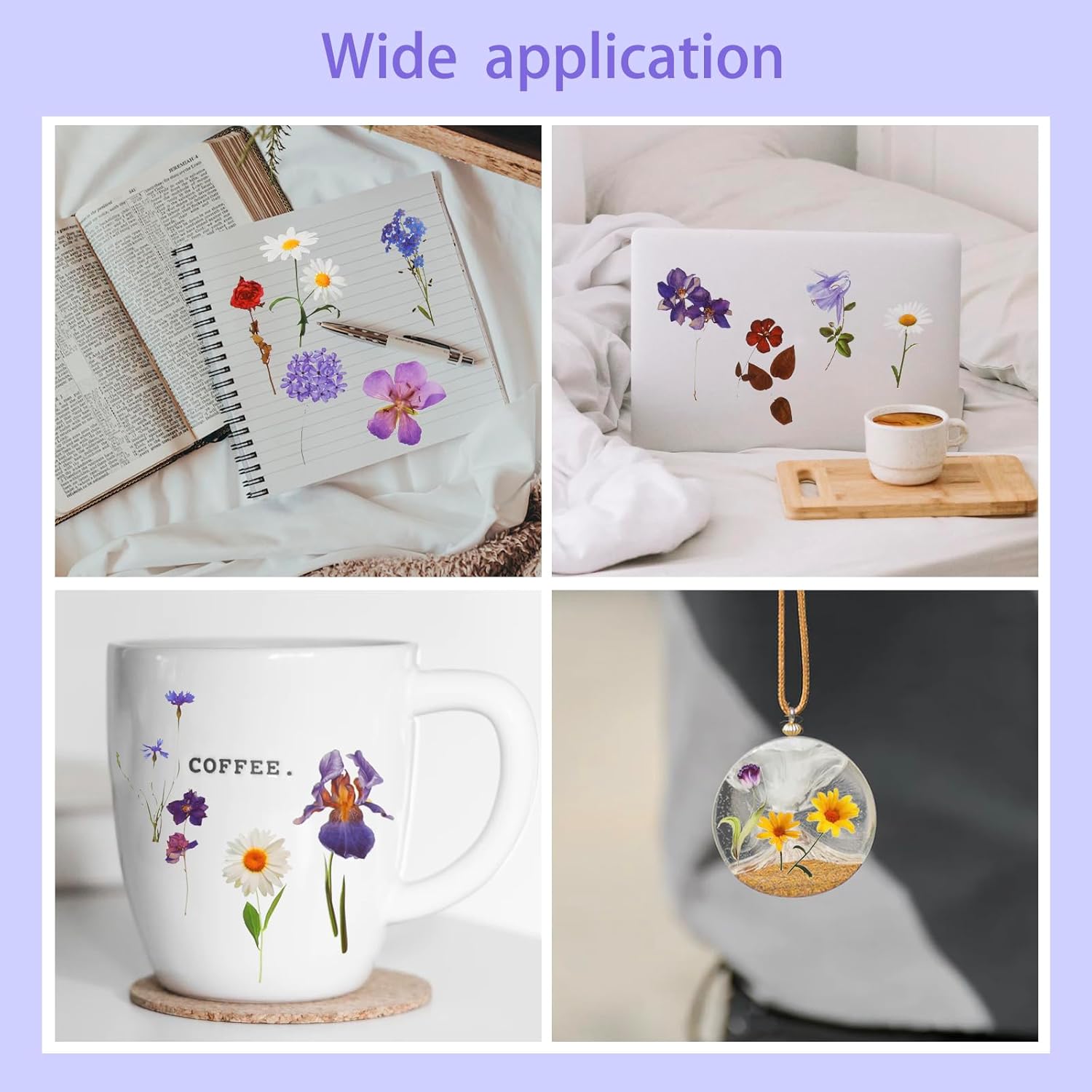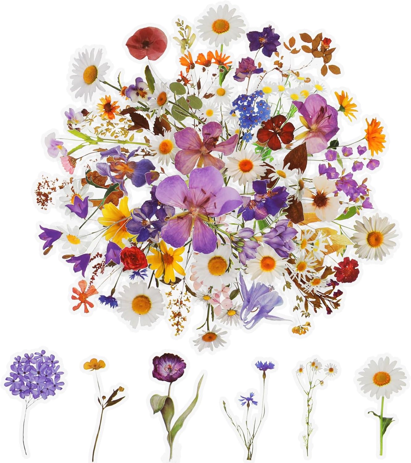 Si attacca ovunque: perfetto per decorare bottiglie d'acqua, tazze, laptop, zaini, skateboard, valigie, automobili, paraurti, biciclette, custodie per telefoni, borse da viaggio, bici, moto, snowboard. Personalizza le tue cose personali e sottolinea il tuo carattere. REGALO IDEALE: Questo set di fiori selvatici pressati è l'aggiunta perfetta ai tuoi oggetti personali e anche un regalo premuroso per gli amanti del diario, hobbisti, studenti, anniversari, compleanni e festività ecc. Il pacchetto include: adesivi da 120 pezzi (60 stili) con vari bellissimi fiori e piante per artigianato, scrapbooking, laptop, parete, finestra, cartoline. Materiale: PET. Dimensioni: da 3 a 9 cm. Include 3 confezioni di adesivi con fiori pressati come margherita, lavanda, lilla. FANTASTICI ADESIVI DECORATIVI PER BAMBINI: i migliori adesivi floreali trasparenti per adulti, donne, adolescenti, bambini, amici e familiari da realizzare fai-da-te. La migliore decorazione su scatole regalo. Pulisci la superficie, attacca gli adesivi e lascia correre la fantasia con le opere d'arte. Adesivi trasparenti per album: stampati su plastica trasparente (PET) di alta qualità con finitura opaca e bordo trasparente. Questi adesivi autoadesivi botanici aderiscono bene a qualsiasi superficie liscia e asciutta come carta, mobili, laptop, custodie per telefoni, finestre e bottiglie d'acqua. Sono durevoli, impermeabili, resistenti al colore e non si rompono.