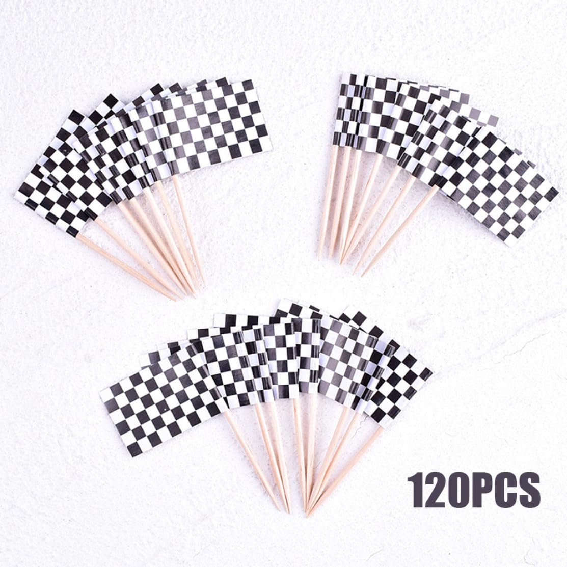 Abbastanza quantità: un totale di 5 pacchetti, ogni pacchetto contiene 24 bastoncini a scacchi con colore bianco e nero, adatto come feste e decorazioni per la cena Mini bandiere da corsa: la dimensione della bandiera è 3,5 x 2,5 cm/ 1,38 x 0,98 pollici e la bandiera delle corse è montata su uno stecchino di 6,5 cm/ 2,56 pollici Design speciale: composto da bandiera di carta e stecchino in legno, le bandiere sono stampate su entrambi i lati con motivo a scacchi in bianco e nero, carino come toppers di Cupcake Attenzione: queste scelte di bandiera da corsa sono solo a scopo decorativo, non commestibili e per favore non posizionare in forno Utilizzo ampio: buono per decorare cupcakes, mini dessert, feste da corsa, festa di compleanno, festa per bambini, matrimonio, torta fai -da -te e altre occasioni festive