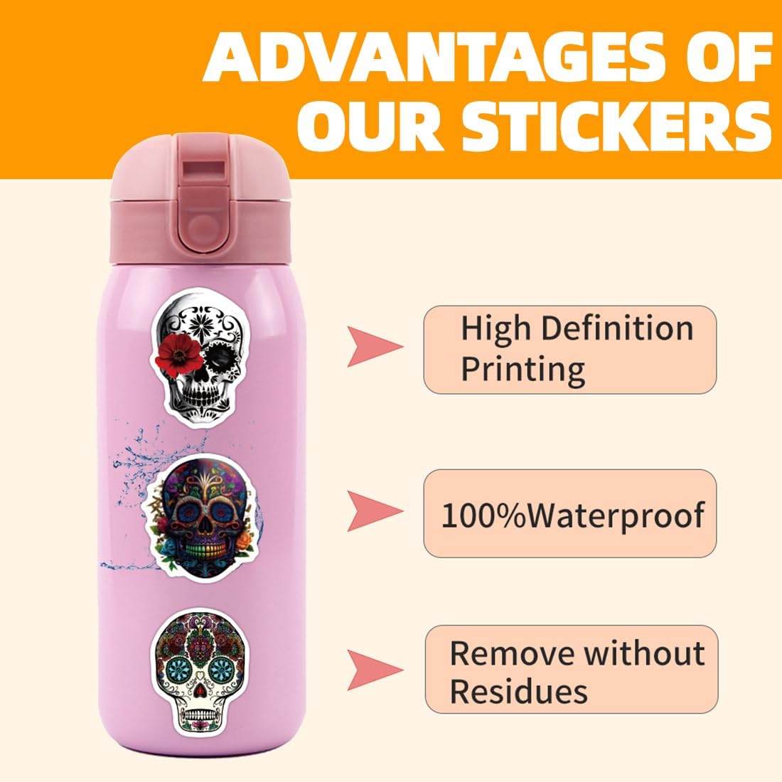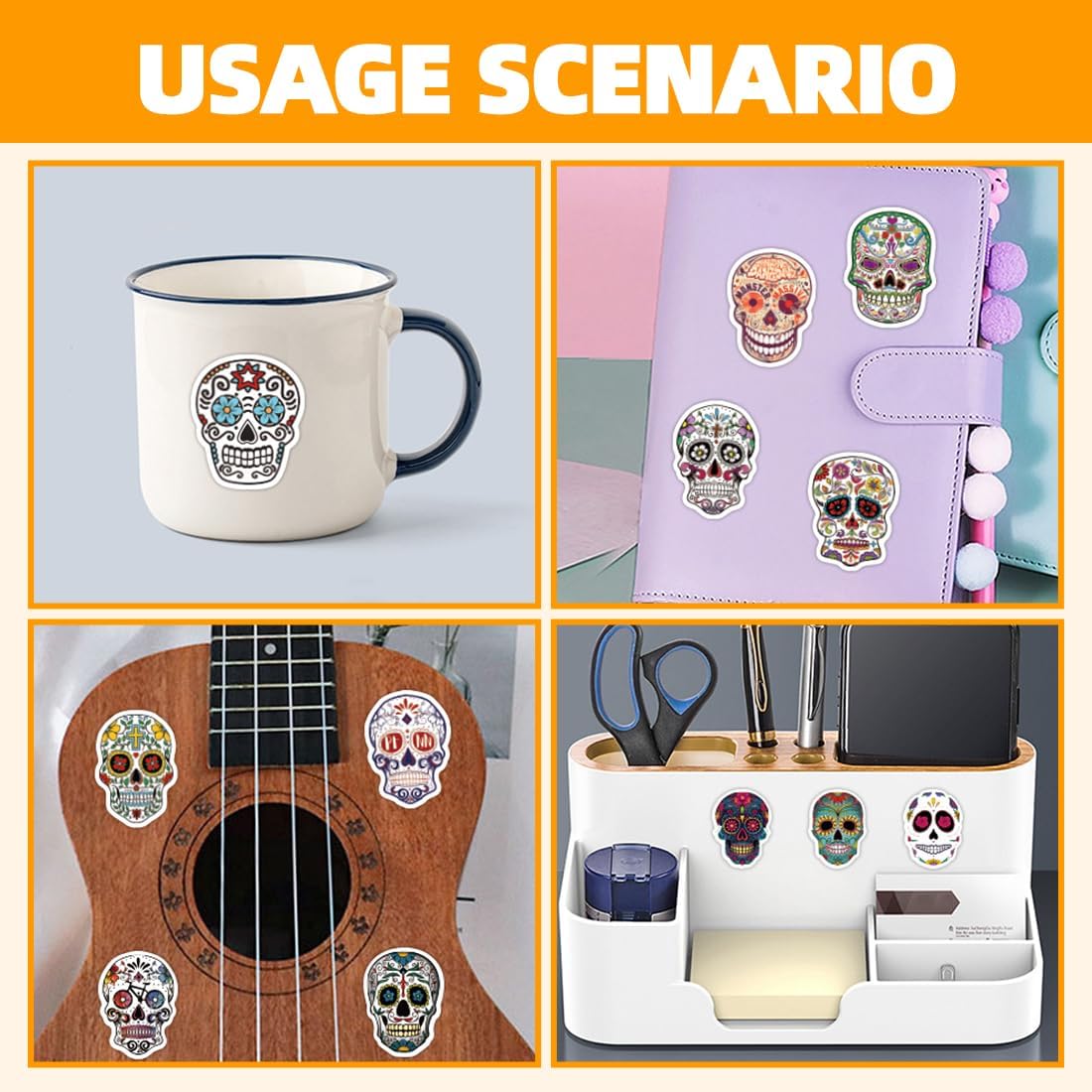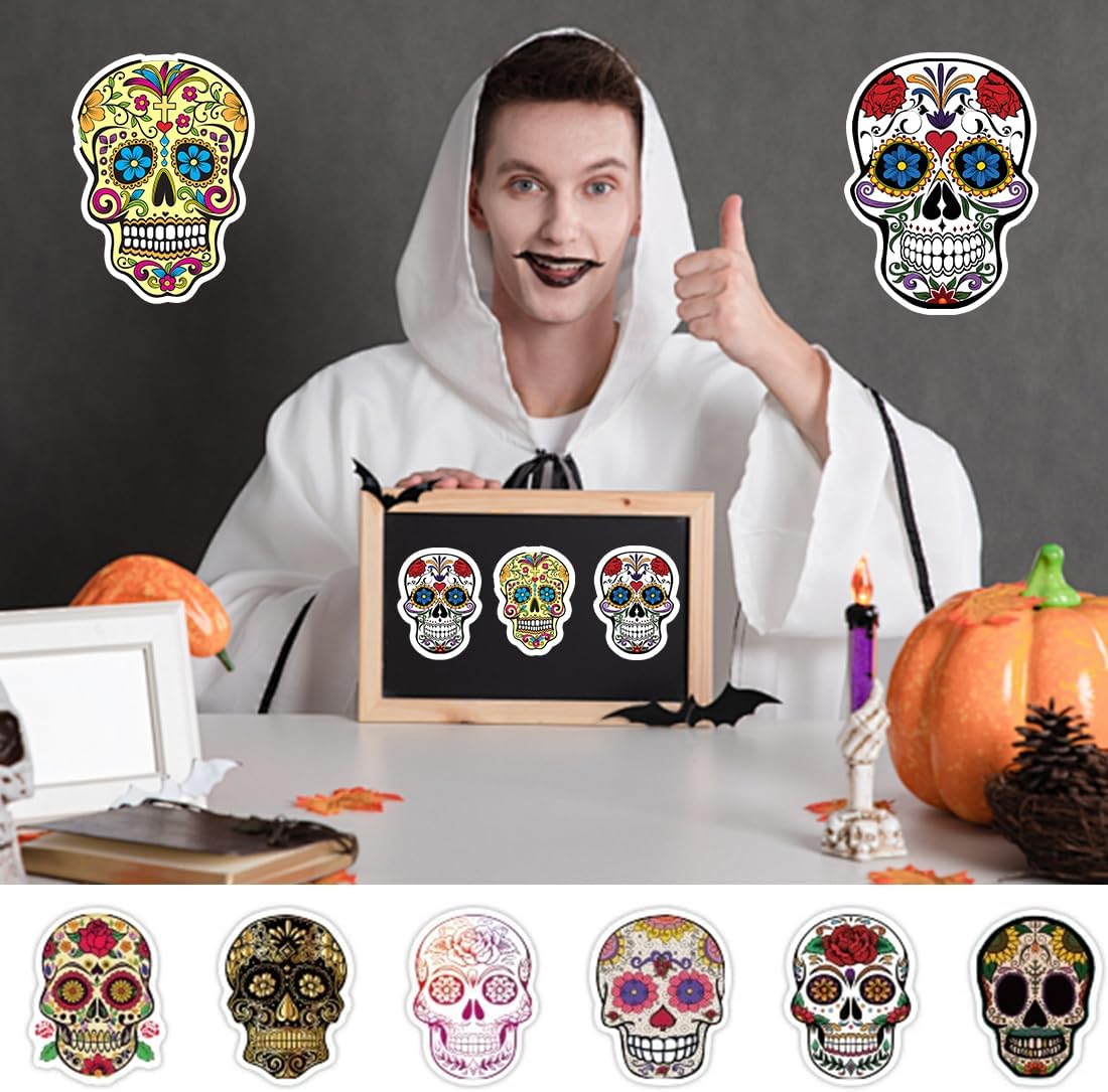 💀【120 Adesivi Teschio Floreale】Set completo di 120 adesivi unici con teschi e motivi floreali in stile Dia de los Muertos (5-7cm). Ogni design combina elementi gotici e fiori colorati per un look originale e artistico. 🎨【Stampa Professionale a Colori Vivaci】Realizzati in vinile di alta qualità con stampa HD che mantiene i colori brillanti nel tempo. Resistente all'acqua e ai raggi UV, perfetto per uso sia interno che esterno. 🚗【Multiuso Creativo】Ideali per personalizzare auto, borse, laptop, bottiglie d'acqua e molto altro. La colla forte ma removibile non lascia residui appiccicosi dopo la rimozione. 🌺【Design Unico Ispirato alla Cultura Messicana】Ogni adesivo presenta motivi tradizionali del Giorno dei Morti con un tocco moderno. Perfetti per aggiungere stile a oggetti personali o creare atmosfera per feste a tema. 🎭【Facile Applicazione】Gli adesivi si staccano facilmente dal foglio di supporto e si applicano in pochi secondi su qualsiasi superficie liscia. Un modo semplice per trasformare oggetti ordinari in pezzi unici.