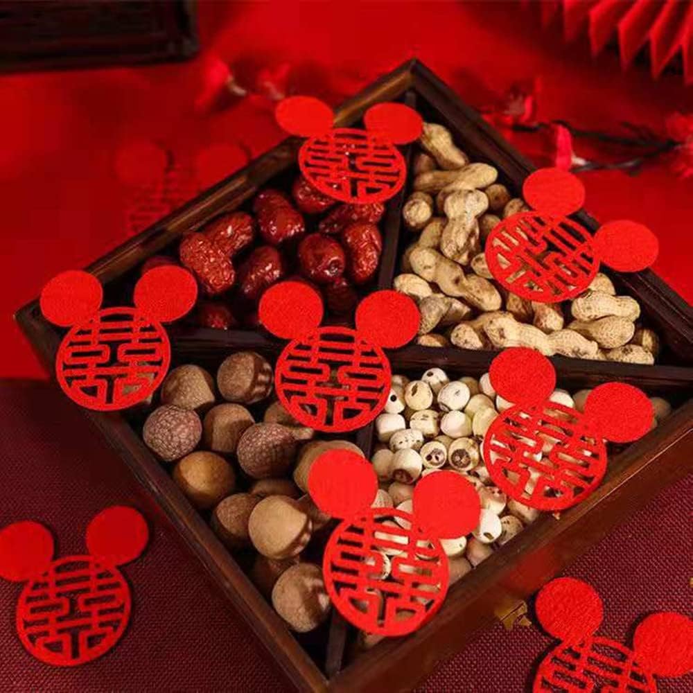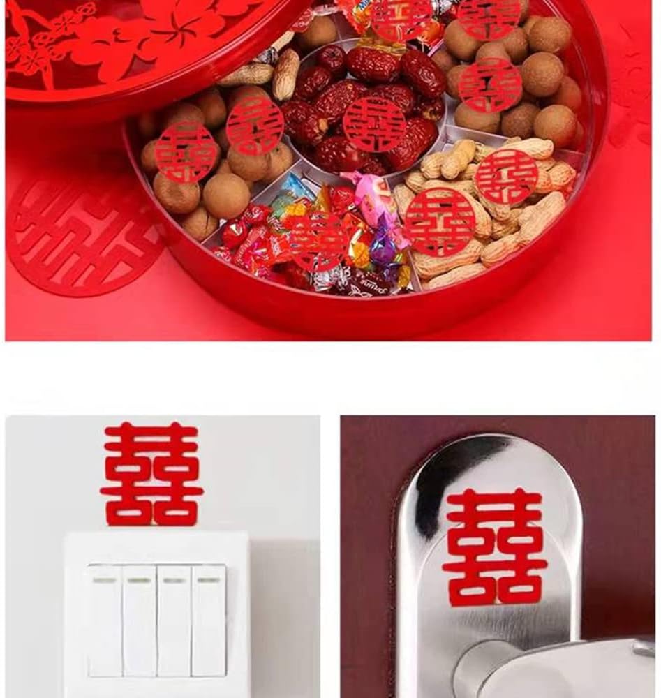 Contenuto: 120 parole di decorazione nuziale Taglio carta cinese: decorazione tradizionale cinese per matrimonio Materiale: tessuto non tessuto Dimensioni: 5 cm Doppia felicità: tradizionali motivi felici della nazionalità Han su una figura di due cime. La doppia fortuna è un simbolo speciale dell'istituzione Usi: utilizzati nei matrimoni, nelle feste, nelle feste di compleanno, nella vita quotidiana, i piccoli personaggi nuziali rossi in tessuto non tessuto gettati o cosparsi sul letto nuziale sono molto festosi e possono anche essere posizionati all'interno del piatto di frutta.
