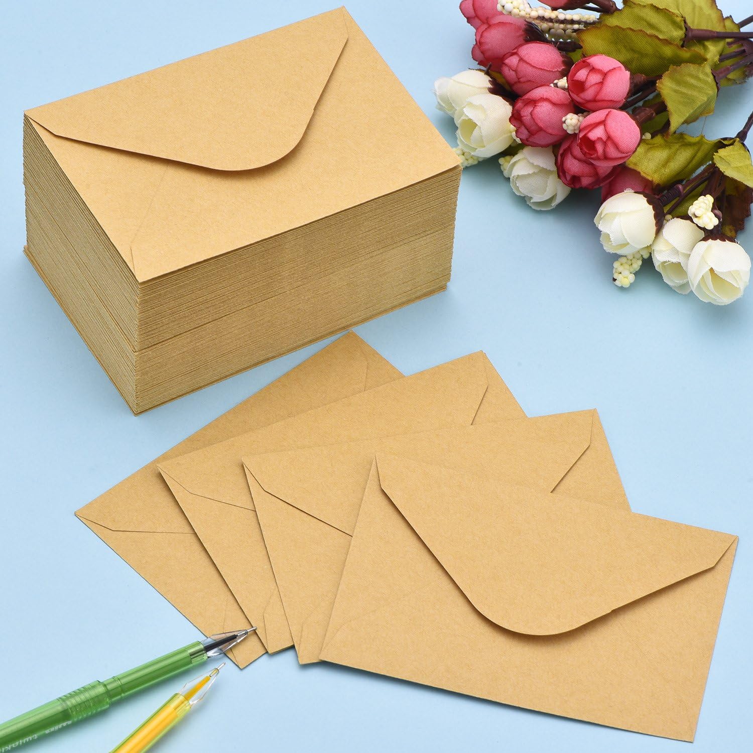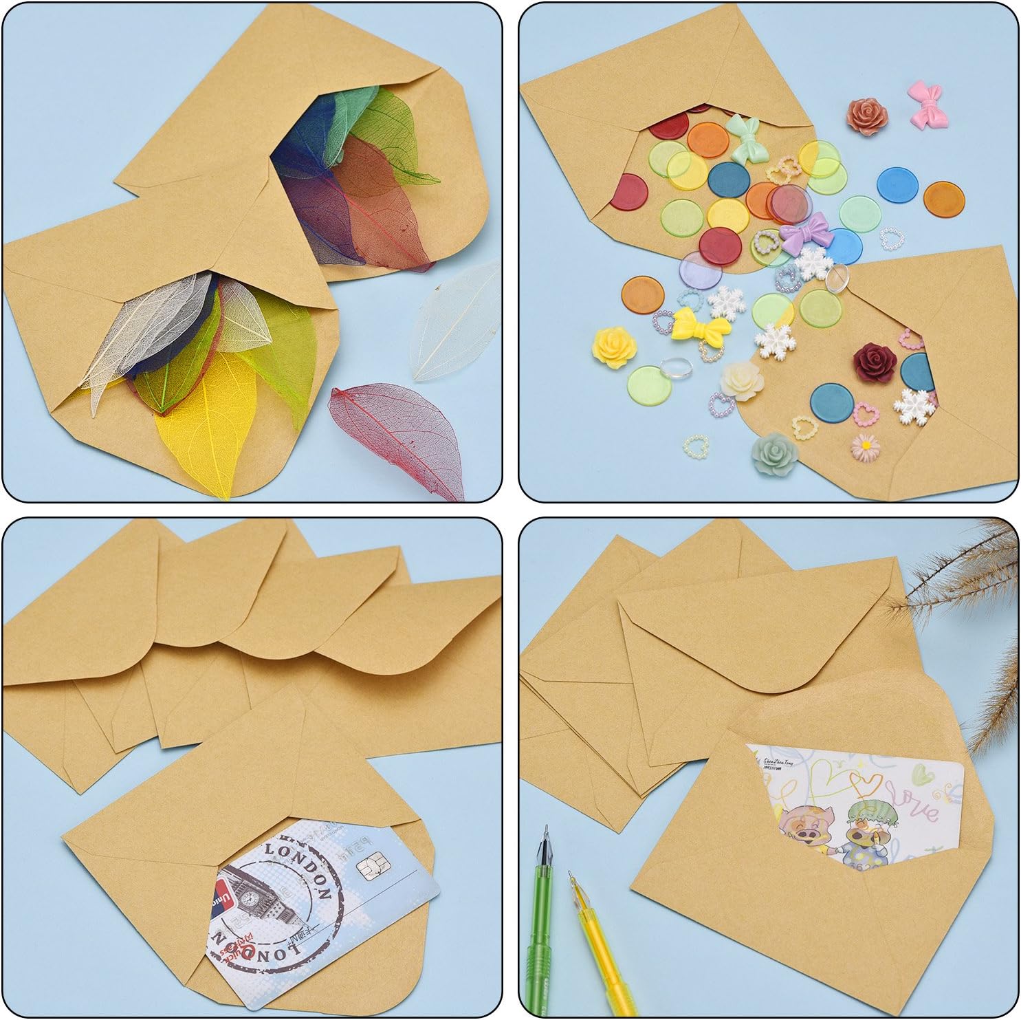 Mini buste: adatte per contenere piccoli oggetti come mini carte, bomboniere, biglietti regalo, biglietti con nome, biglietti per feste di nozze, gioielli e così via Busta classica: queste buste per piccoli oggetti sono realizzate in carta, di buona qualità e sembrano classiche Buste fai da te: le copertine di queste buste sono vuote, ideali per forniture fai da te e creare il tuo stile personale; puoi disegnare qualsiasi immagine o scrivere tutto ciò che desideri Adesivo a base d'acqua: facile da sigillare con l'adesivo a base d'acqua, basta applicare acqua ai bordi e incollare, quindi sigillare la busta Dimensioni mini e vuoto: misura circa 11,2 x 7,6 cm, facile da tenere e mantenere; superficie vuota e scrivibile per scrivere o dipingere motivi