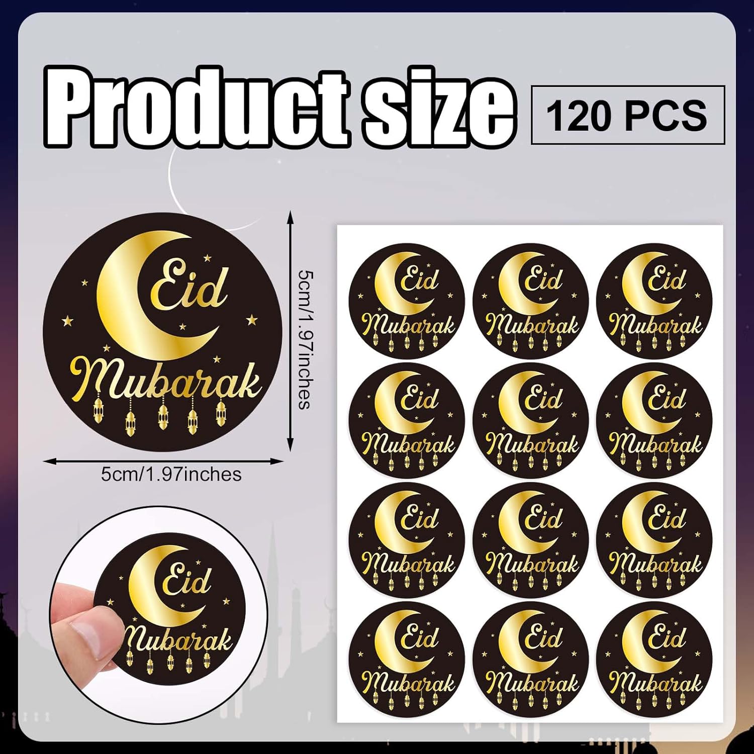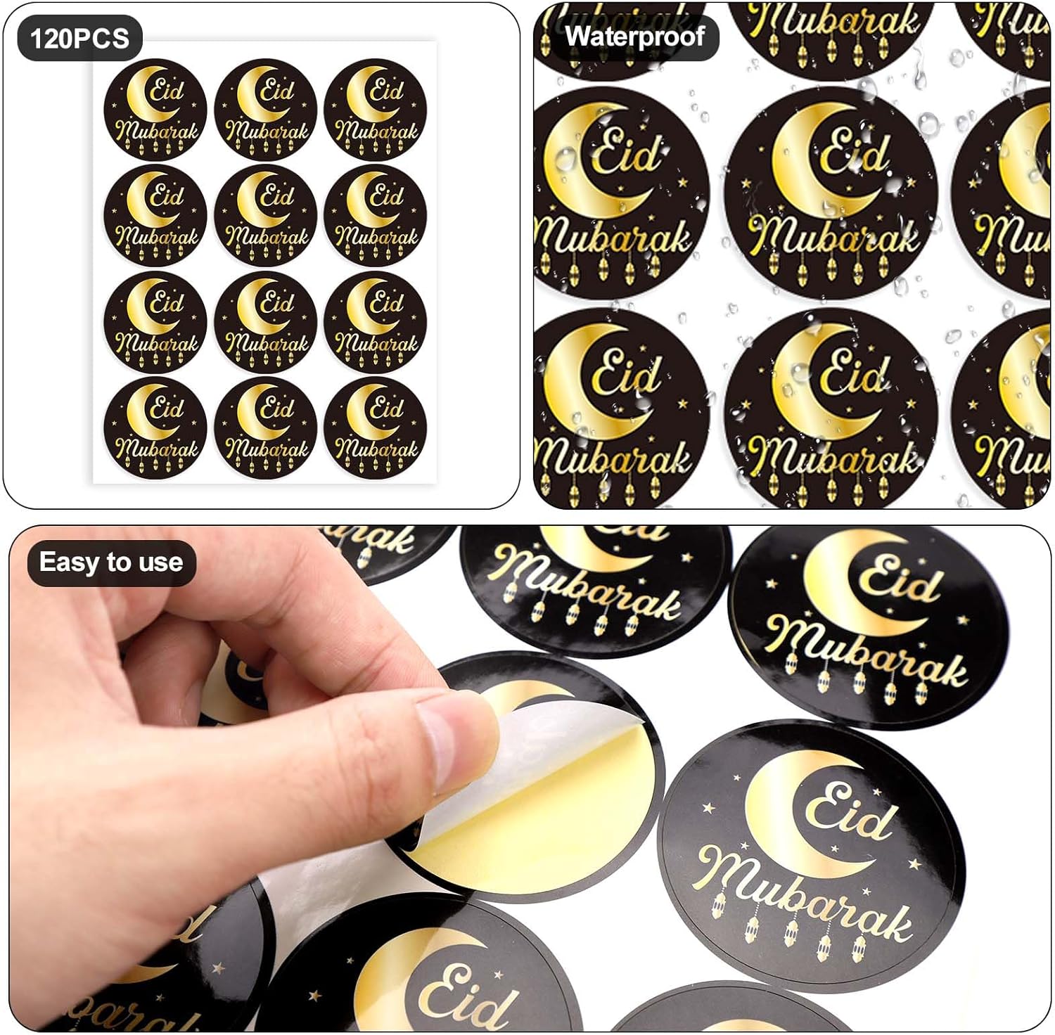 Ampie offerte: il pacchetto include 120 adesivi a tema Ramadan, che forniscono molta quantità per soddisfare tutte le tue esigenze di decorazione festive durante la stagione. Materiale di ottima qualità: realizzati con carta autoadesiva premium, questi adesivi sono facili da applicare e staccarsi in modo pulito, lasciando indietro alcun residuo.Accettano perfettamente a superfici lisce e asciutte. Dimensioni versatili: con un diametro di 5 cm, questi adesivi sono ideali per varie applicazioni, dai pacchetti di tenuta all'aggiunta di talento al tuo arredamento festivo. Elegante estetica: caratterizzato da un'elegante combinazione di colori oro e neri con intricati motivi di luna, stella e lanterna, questi adesivi portano un'atmosfera raffinata e celebrativa ai tuoi festeggiamenti Ramadan ed Eid. Uso multiuso: questi adesivi sono perfetti per abbellire regali, bomboniere e imballaggi alimentari come cassette e borse per biscotti.Servono anche come eleganti sigilli per inviti, carte di ringraziamento e altri oggetti celebrativi.