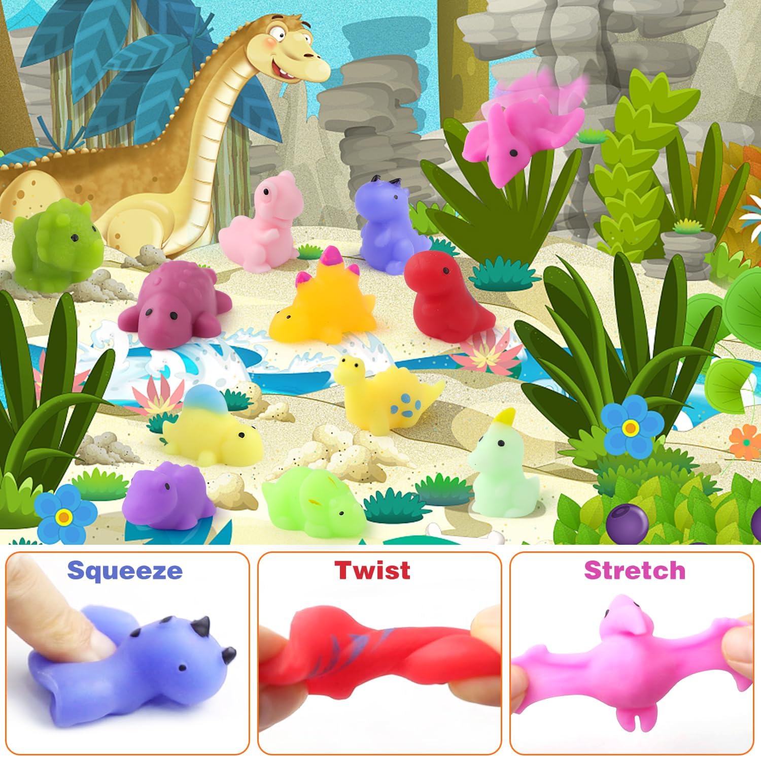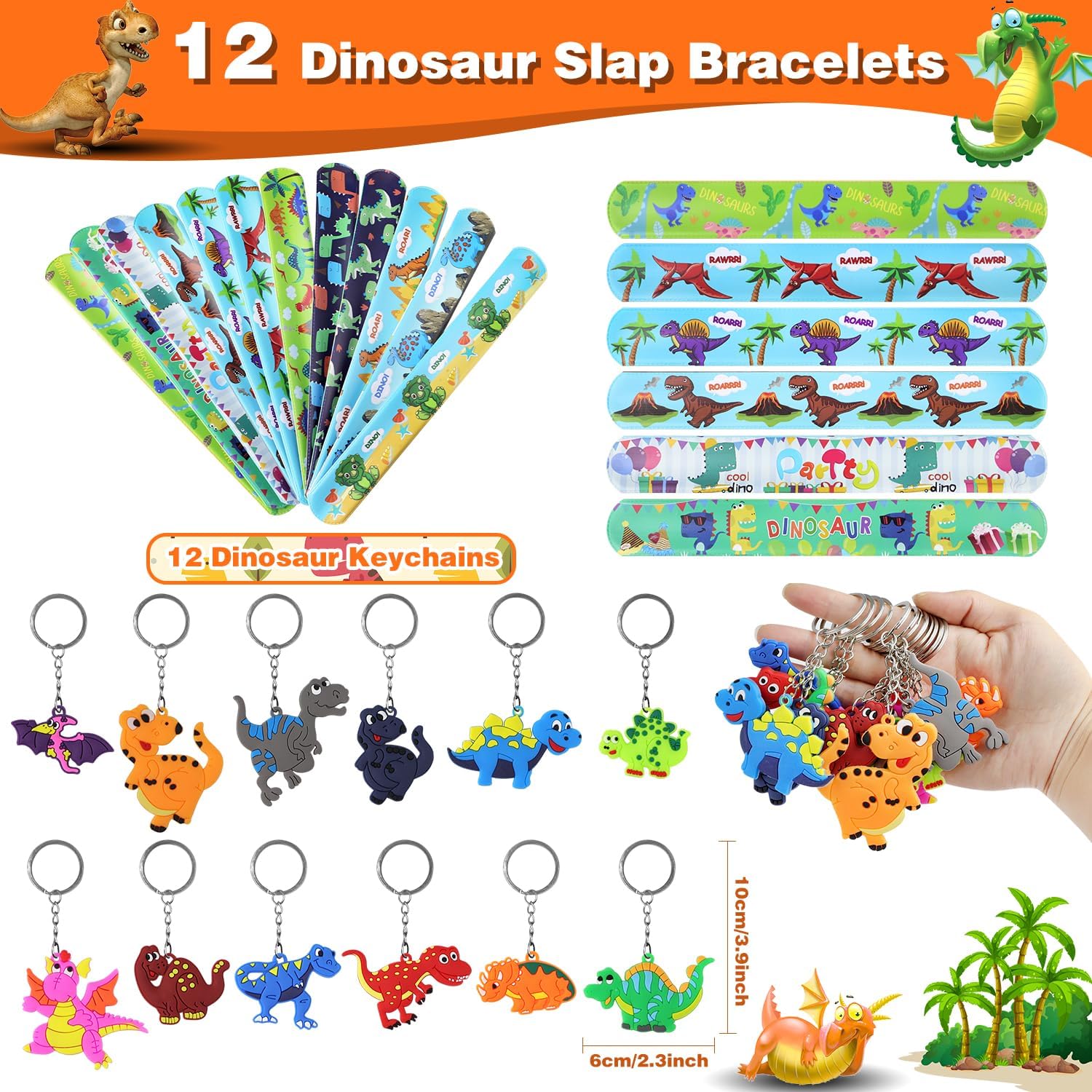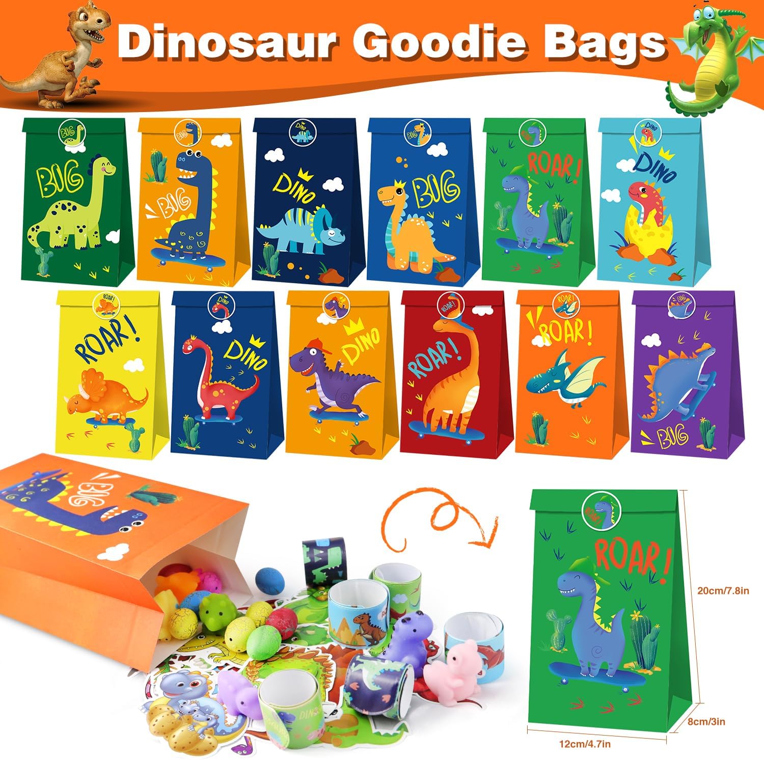 【REGALI PER FESTE CON DINOSAURI PIÙ POPOLARI】 Questo set per feste di compleanno di dinosauri è un fantastico regalo per gli amanti dei dinosauri. È sufficiente per immergere i tuoi ospiti in un'esperienza indimenticabile e può sicuramente diventare parte dei meravigliosi ricordi d'infanzia di tuo figlio.,REGALO PERFETTO PER UNA FESTA CON DINOSAURI: qui c'è qualcosa per tutti. Questi includono 12 sacchetti per feste con dinosauri con adesivi, 12 uova di dinosauro che si schiudono, 12 set di segnalibri da grattare, 12 braccialetti pieghevoli con dinosauri, 12 set morbidi, 12 portachiavi e 50 adesivi con dinosauri. Rendi la tua festa una festa indimenticabile., ADATTO A TUTTE LE OCCASIONI: Forniture perfette per feste di compleanno di dinosauri per bambini di tutte le età (ragazzi e ragazze). Sono perfetti per sacchetti regalo a tema dinosauri, riempitivi per sacchetti regalo, riempitivi per pignatte, riempitivi per uova di Pasqua, premi per cacce al tesoro, premi in classe e regali promozionali.,Materiale di qualità premium: forniture per decorazioni per feste di compleanno di dinosauri per gli amanti dei dinosauri! Tutti i giocattoli nella confezione regalo sono realizzati con materiali atossici ed ecologici e sono completamente sicuri. Divertiti a giocare senza preoccupazioni. Forme carine e colori vivaci sono così attraenti che tutti i bambini rimarranno impressionati e ne vorranno di più. 【SODDISFAZIONE AL 100%】 Poiché tutti gli articoli sono imballati a mano, se hai parti mancanti o danneggiate, non esitare a contattarci e ti rimborseremo o sostituiremo entro 24 ore. Grazie per il tuo interesse per il nostro set di bomboniere per feste con dinosauri!