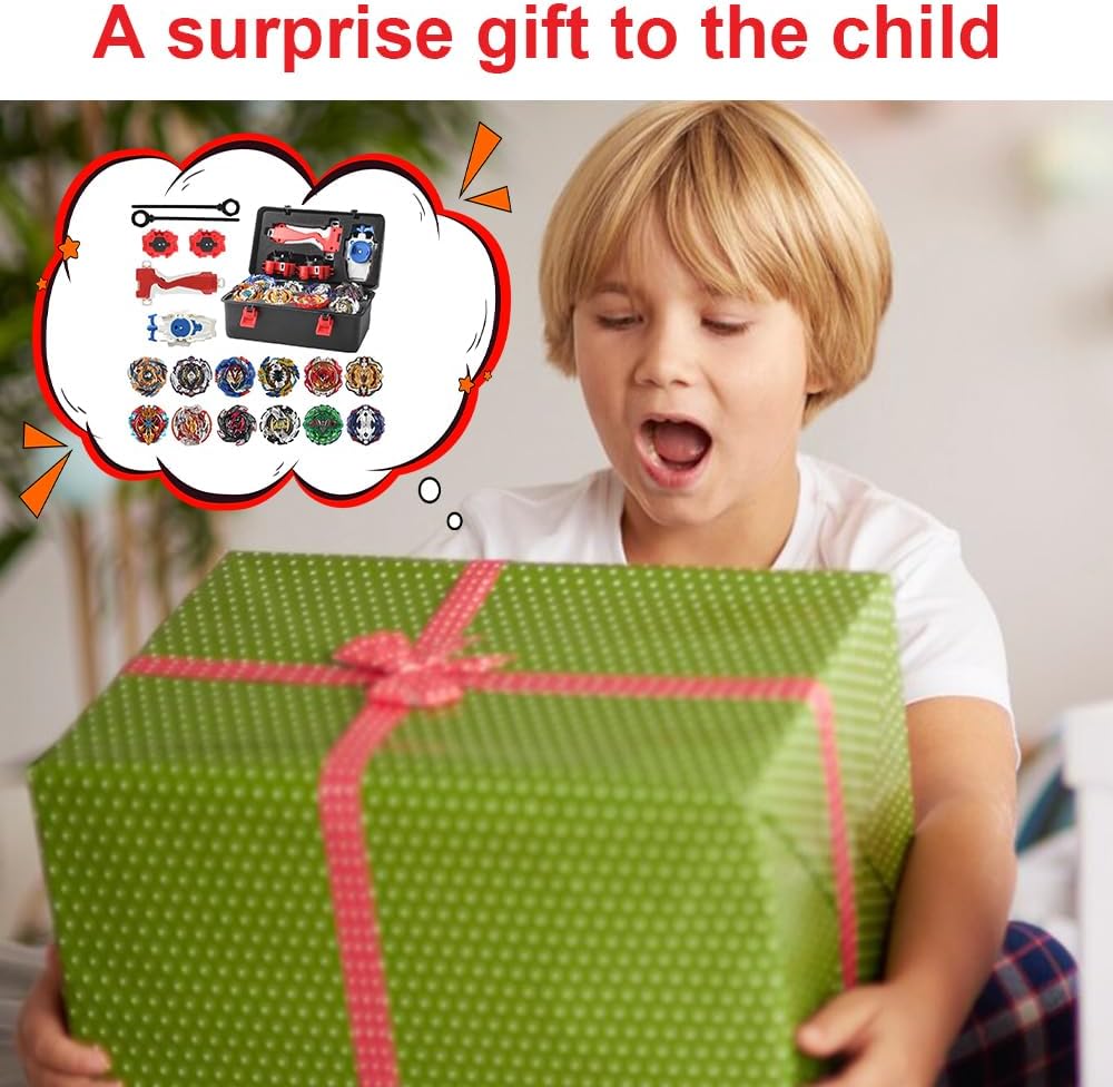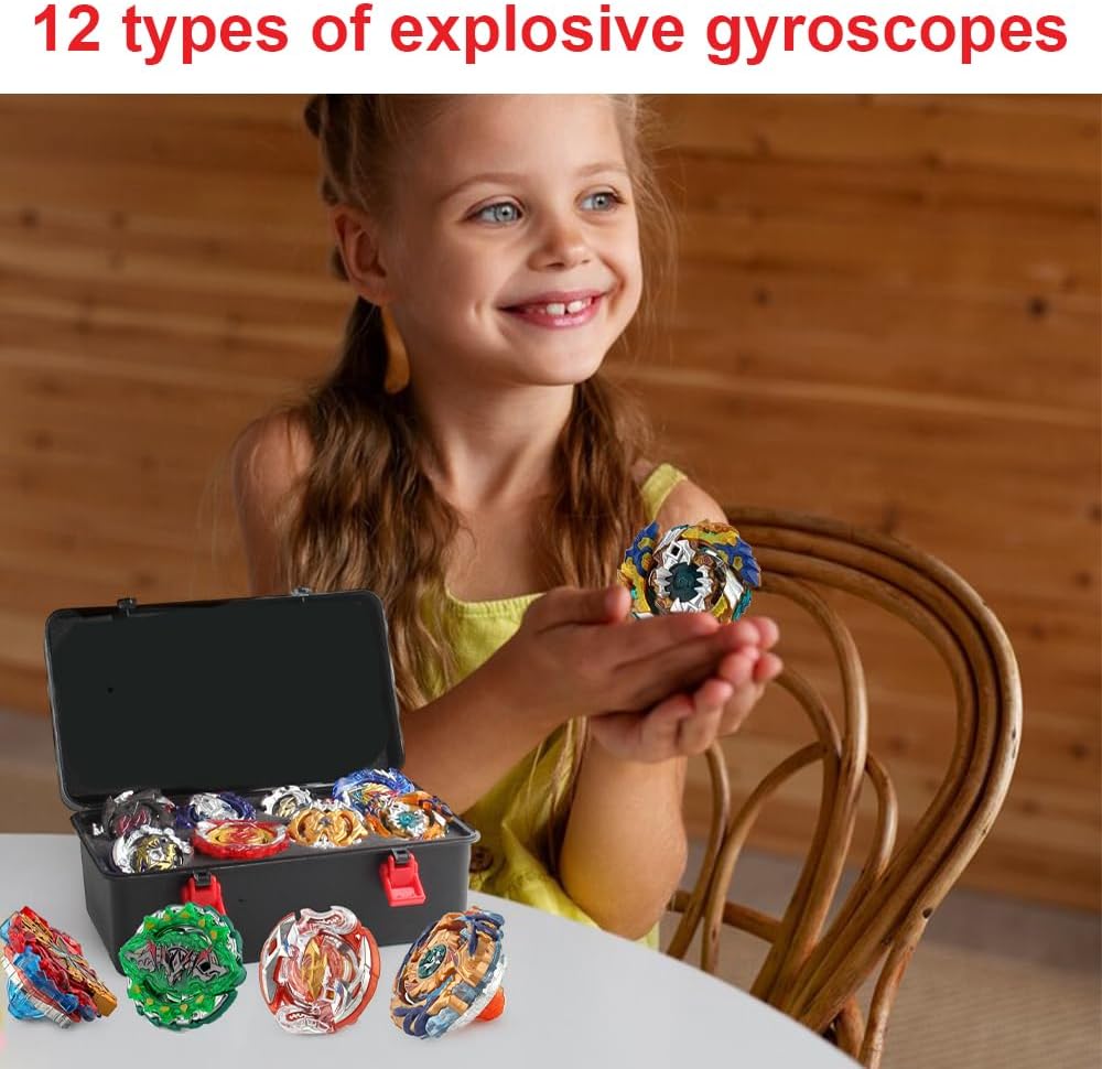 【Set di lame Burst Turbo】Gyro ha un'eccellente durata e un ottimo equilibrio, è molto potente, ha una resistenza incredibile e un aspetto accattivante. Gira a lungo e ottiene attacco, difesa e resistenza. Il set 12in1 burst trottole può anche aiutare i bambini a rimuovere i dispositivi elettronici e i videogiochi per evitare danni alla vista. 【Lanciatore diverso】Questo set di 12in1 burst trottole aggiunge un lanciatore diverso rispetto a prima, evita i problemi comuni che il cavo non funziona e la maniglia si rompe, è facile da installare, aumenta la velocità di rotazione iniziale della parte superiore e aumenta l'intensità del gioco. 【Nuova esperienza di duello】Il set da 12in1 burst trottole con 2 trasmettitori, supporta duelli a due giocatori e ti consente di vivere intense competizioni con amici o familiari. Divertiti con i duelli e vivi emozionanti scontri con i tuoi avversari! 【Materiale di alta qualità e combattimento potente】Il nostro set di 12in1 burst trottole è realizzato in materiale ABS ecologico e atossico, sicuro, resistente all'usura e durevole, adatto al combattimento ad alte prestazioni. Puoi sentire il divertimento del combattimento nel gioco. 【Regalo per bambini】Questo set di trottole 12in1 è perfetto per diverse occasioni, come feste di compleanno, riunioni di famiglia, vacanze e persino divertenti attività del fine settimana. il set professionale 12in1 burst trottole ti offre la migliore esperienza di intrattenimento, a scuola, al parco o durante le attività all'aperto. È anche un regalo ideale per i bambini che amano partecipare a divertenti giochi competitivi.