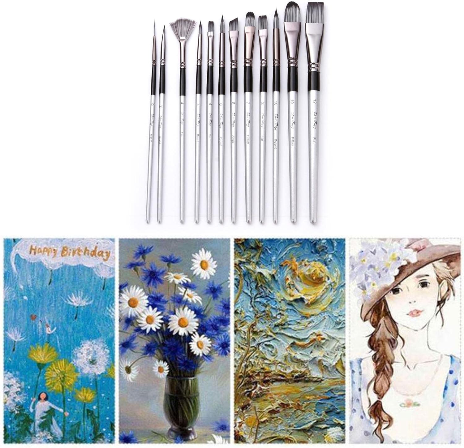 Facile da usare. Legni di alta qualità e setole di nylon e grande assorbimento d'acqua, morbidi e facili da colorare. Puntali in lega antiruggine sigillati estremamente saldamente che non fuoriescono o si allentano facilmente PENNELLO PROFESSIONALE. I pennelli multifunzionali per pittura sono adatti per principianti, studenti, bambini e hobbisti. Ogni pennello ha le sue dimensioni contrassegnate sul manico, facile da differenziare e utilizzare Meraviglioso regalo. Per principianti, studenti, lavoratori artistici e artigiani e artisti professionisti. Facile da lavare con acqua corrente e acqua calda. Consigli: prima dell'uso, si prega di immergere in acqua a bassa temperatura per alcuni minuti Ampia gamma di applicazioni. Set di pennelli professionali per la maggior parte dei tipi di pittura come pittura su viso e corpo, arte murale, pittura a olio/acquerello/acrilico/guazzo, pittura con stencil, pittura su modellini in scala, arte roccia/ceramica/pittura su pietra VERSATILITÀ, PRATICITÀ. 12 tipi di pennelli ad acquerello per varie esigenze di pittura e colorazione. Manico in legno antiscivolo, offre una presa comoda. Soddisfa facilmente varie esigenze di dettaglio, illustrazione, rivestimento, miscelazione