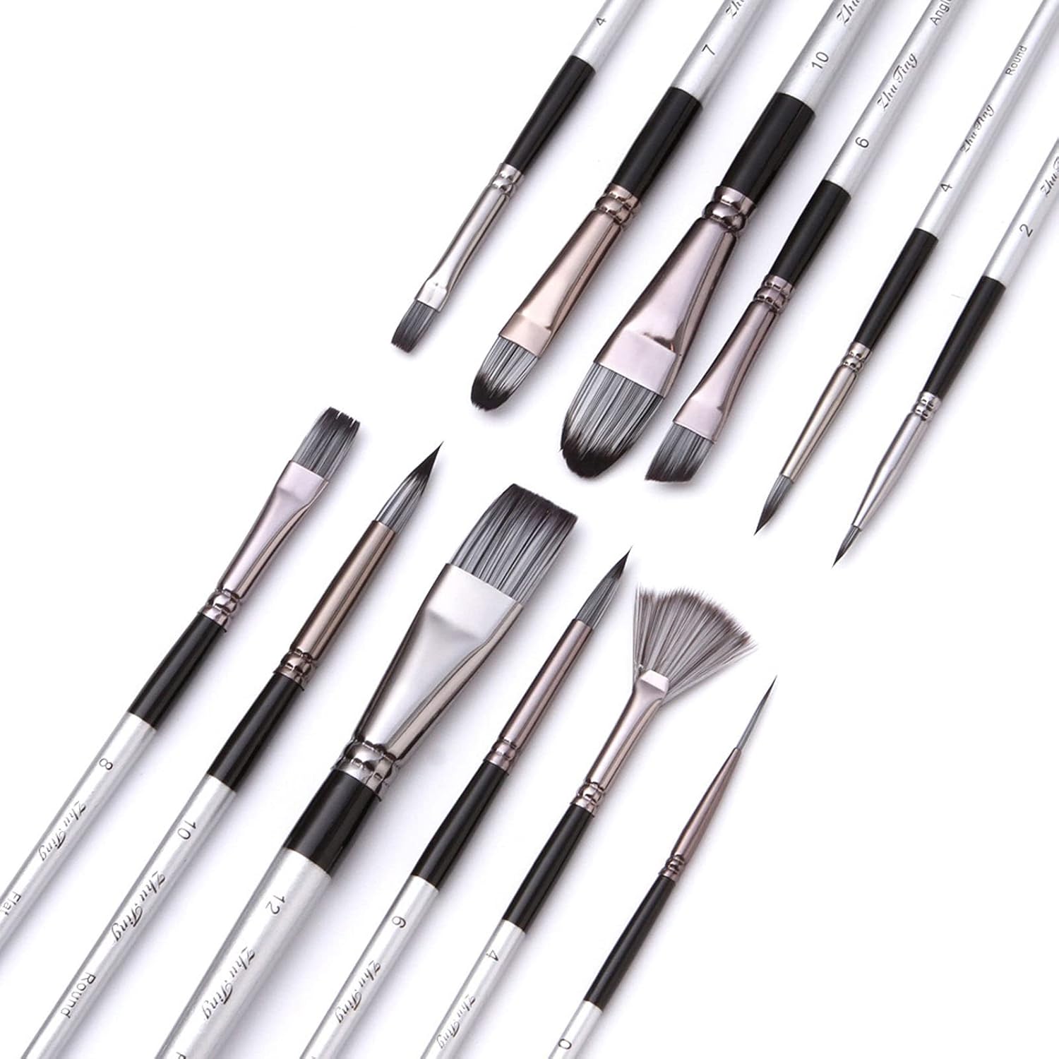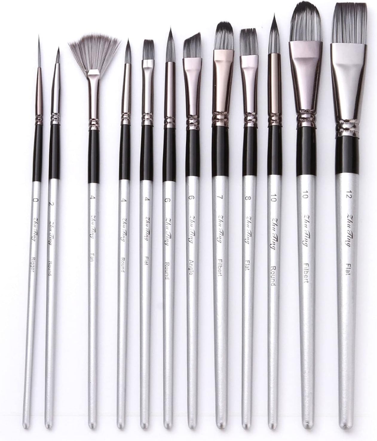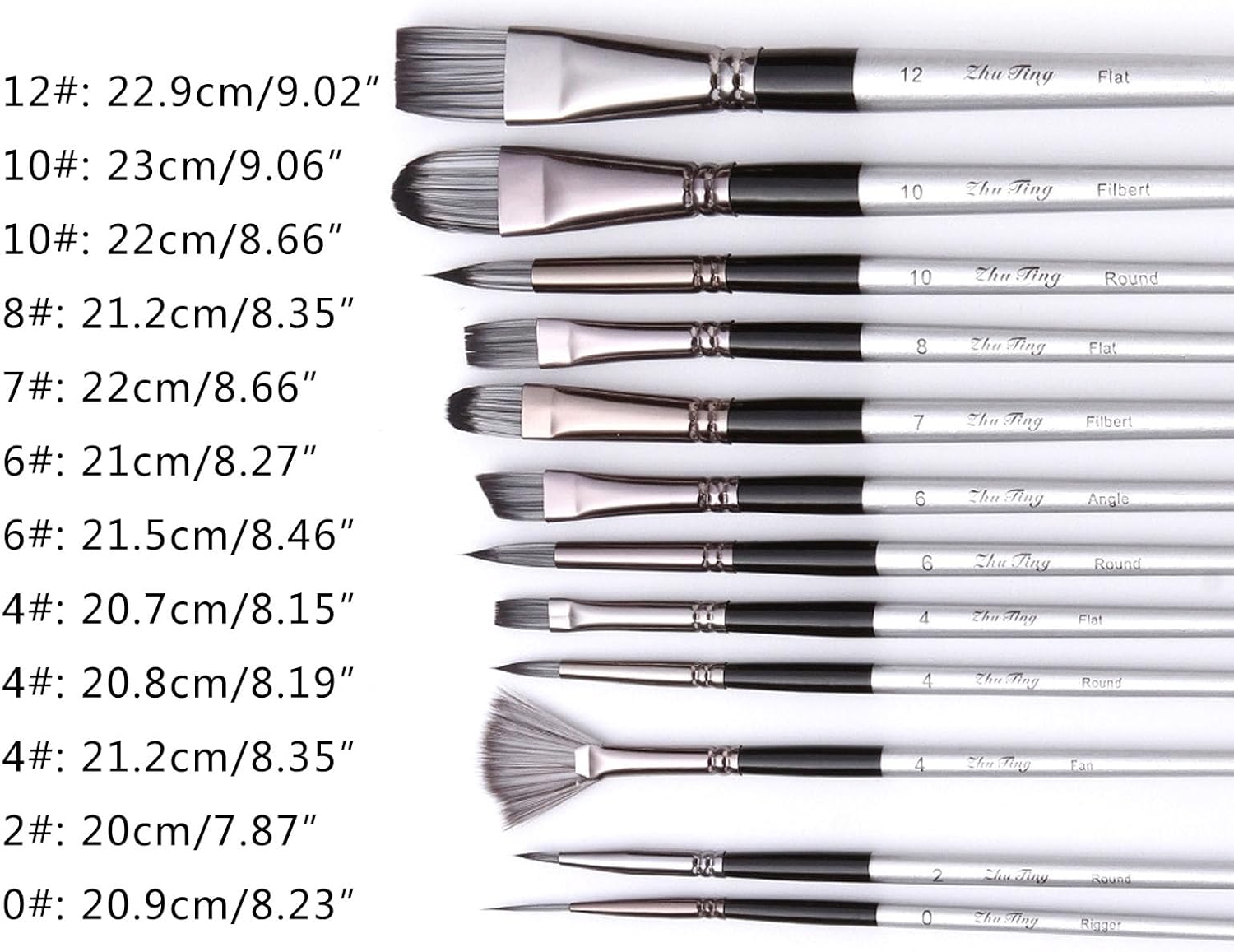 VERSATILITÀ, PRATICITÀ. 12 tipi di pennelli ad acquerello per varie esigenze di pittura e colorazione. Manico in legno antiscivolo, offre una presa comoda. Soddisfa facilmente varie esigenze di dettaglio, illustrazione, rivestimento, miscelazione, PENNELLO PROFESSIONALE. I pennelli multifunzionali per pittura sono adatti per principianti, studenti, bambini e hobbisti. Ogni pennello ha le sue dimensioni contrassegnate sul manico, facile da differenziare e utilizzare Facile da usare. Legni di alta qualità e setole di nylon e grande assorbimento d'acqua, morbidi e facili da colorare. Puntali in lega antiruggine sigillati estremamente saldamente che non fuoriescono o si allentano facilmente Meraviglioso per principianti, studenti, artigiani e artisti professionisti. Facile da lavare con acqua corrente e acqua calda. Consigli: prima dell'uso, si prega di immergere in acqua a bassa temperatura per alcuni minuti Ampia gamma di applicazioni. Set di pennelli professionali per la maggior parte dei tipi di pittura come pittura su viso e corpo, arte murale, pittura a olio/acquerello/acrilico/guazzo, pittura con stencil, pittura di modellismo in scala, arte roccia/ceramica/pittura su pietra