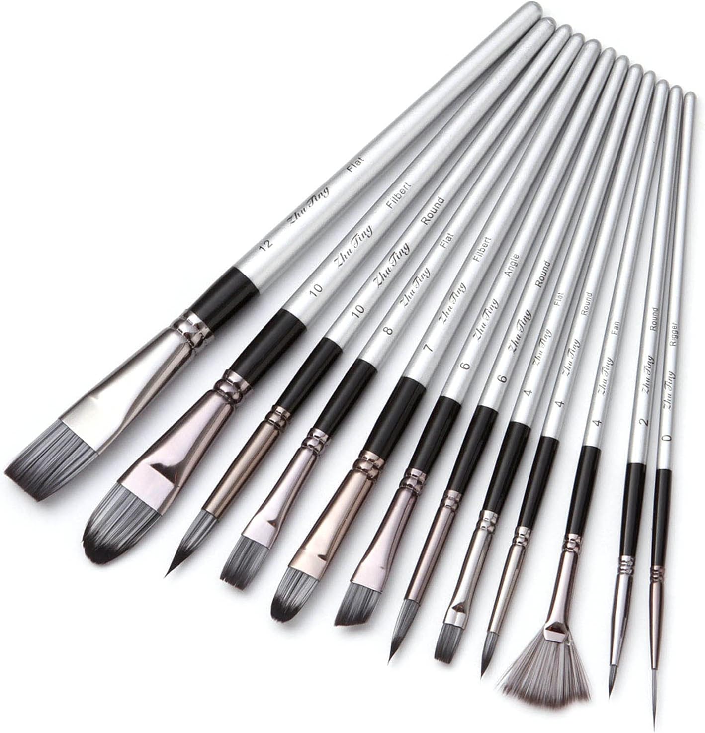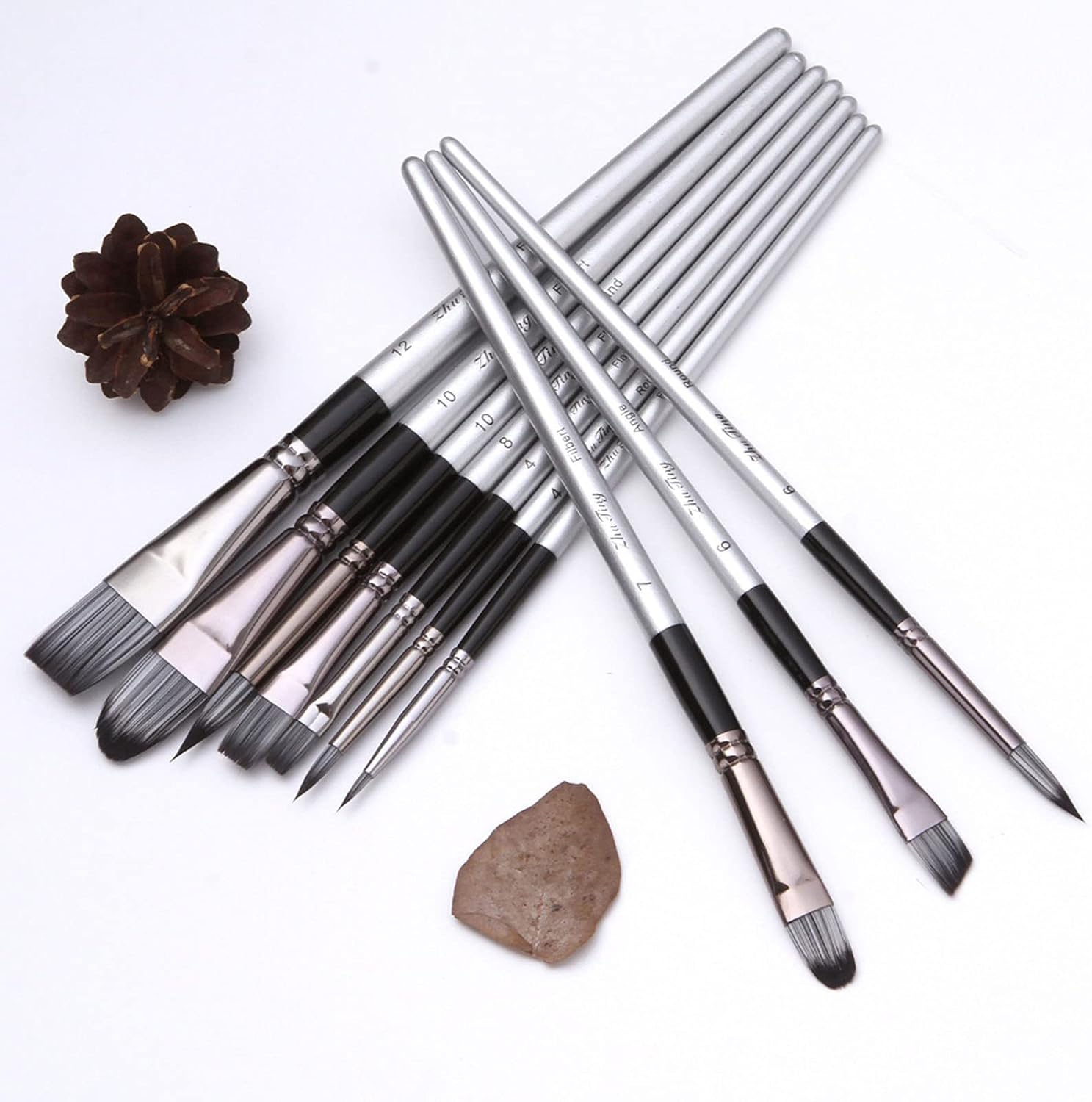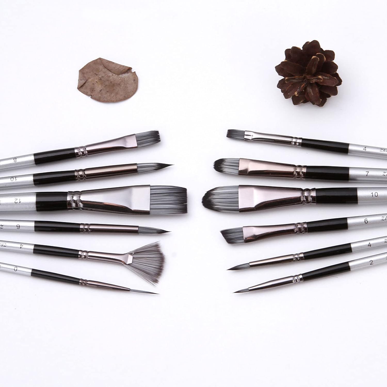Facile da usare. Legni di alta qualità e setole di nylon e grande assorbimento d'acqua, morbidi e facili da colorare. Puntali in lega antiruggine sigillati estremamente saldamente che non fuoriescono o si allentano facilmente VERSATILITÀ, PRATICITÀ. 12 tipi di pennelli ad acquerello per varie esigenze di pittura e colorazione. Manico in legno antiscivolo, offre una presa comoda. Soddisfa facilmente varie esigenze di dettaglio, illustrazione, rivestimento, miscelazione Ampia gamma di applicazioni. Set di pennelli professionali per la maggior parte dei tipi di pittura come pittura su viso e corpo, arte murale, pittura a olio/acquerello/acrilico/guazzo, pittura con stencil, pittura su modellini in scala, arte roccia/ceramica/pittura su pietra Meraviglioso regalo. Per principianti, studenti, lavoratori artistici e artigiani e artisti professionisti. Facile da lavare con acqua corrente e acqua calda. Consigli: prima dell'uso, si prega di immergere in acqua a bassa temperatura per alcuni minuti PENNELLO PROFESSIONALE. I pennelli multifunzionali per pittura sono adatti per principianti, studenti, bambini e hobbisti. Ogni pennello ha le sue dimensioni contrassegnate sul manico, facile da differenziare e utilizzare