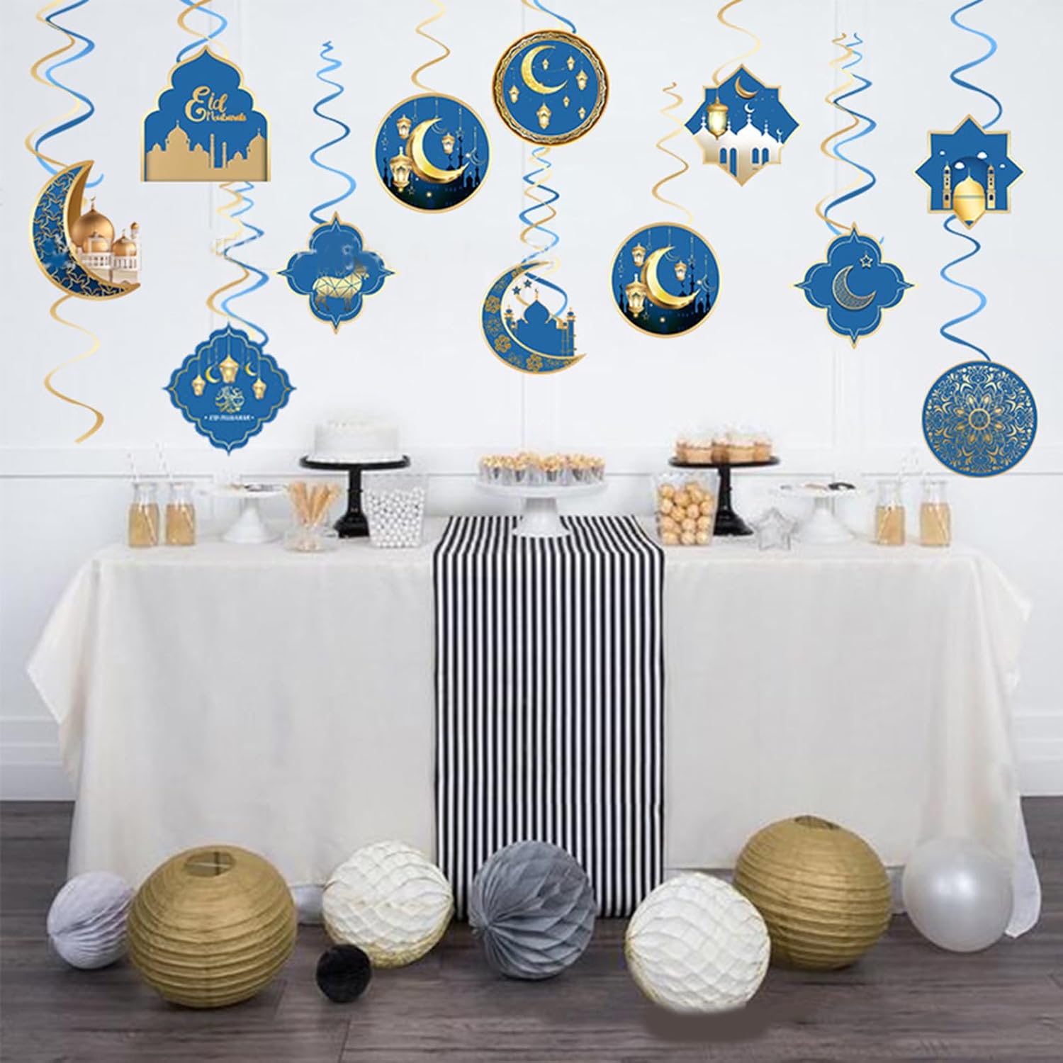 Migliora la tua celebrazione eid con le nostre decorazioni a spirale con castelli lunari, un set progettato per aggiungere un'atmosfera festiva a qualsiasi riunione per chi celebra eid, in particolare famiglie e organizzatori di eventi comunitari che cercano di creare un'occasione memorabile Realizzate in carta, queste decorazioni sono facili da appendere e presentano colori vivaci che resistono allo sbiadimento, garantendo un uso duraturo Adatto per la decorazione di interni in case, moschee, scuole e altri luoghi, queste decorazioni a spirale aiutano a creare un'atmosfera da festival Trasforma qualsiasi spazio in un paradiso delle celebrazioni con questi accattivanti accessori per feste, dando vita all'aria di eid con facilità ed eleganza
